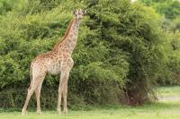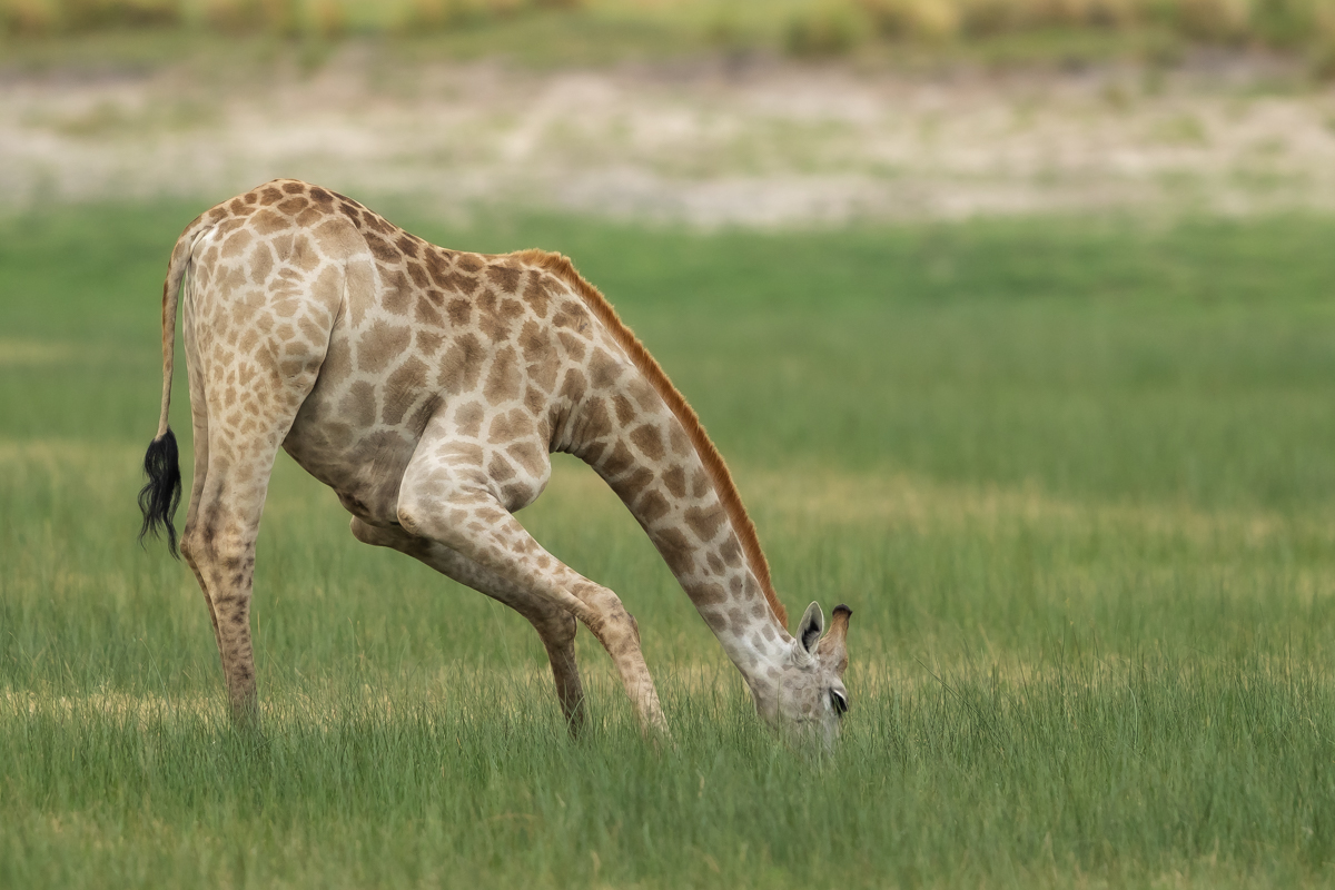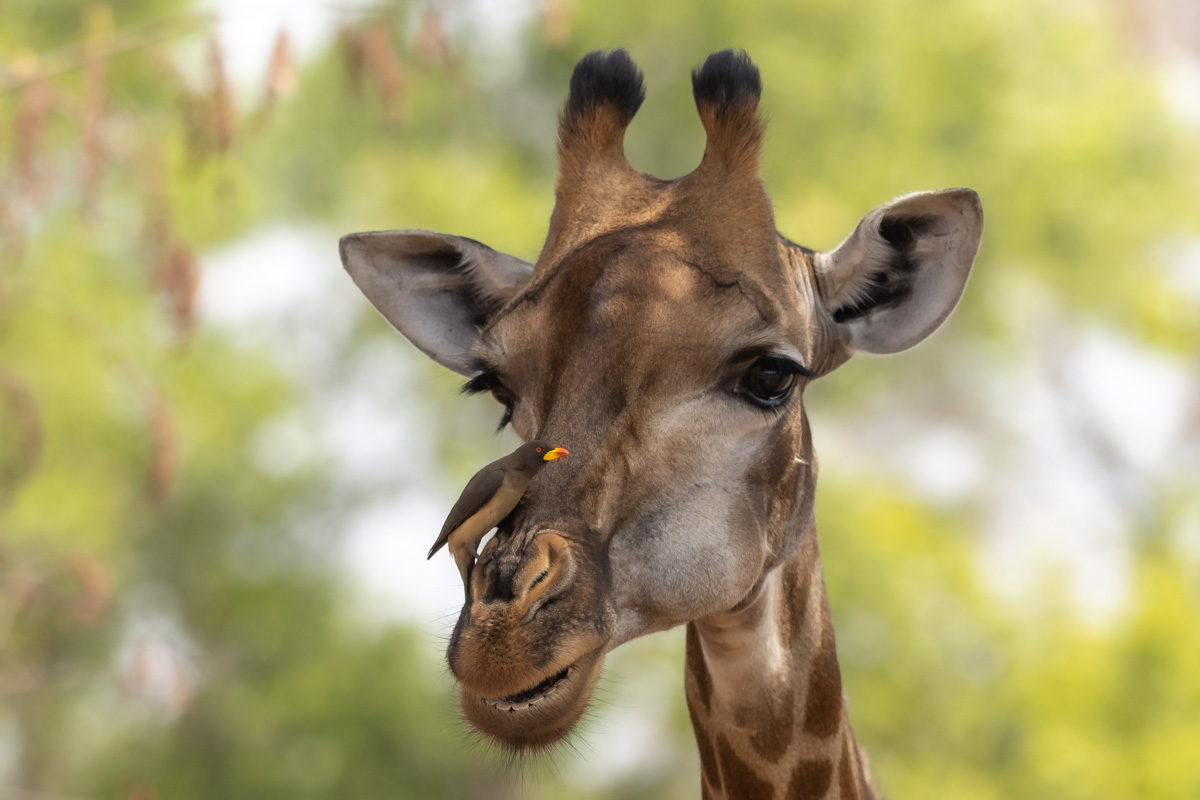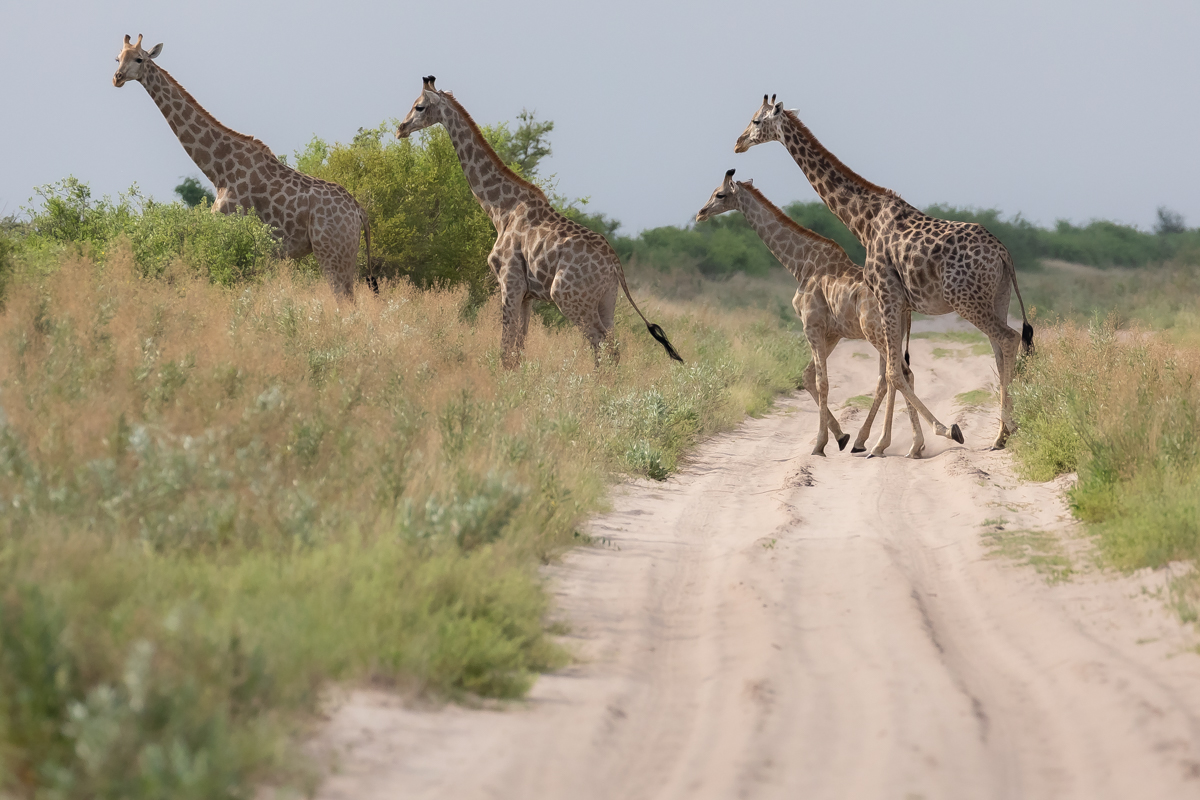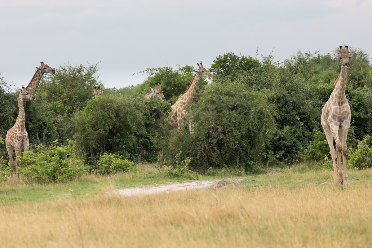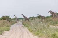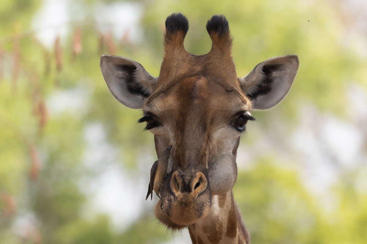 Przy żyrafach chciałbym zamieścić informację o dużych ssakach, tych typowych dla Afryki, jakie spotkaliśmy w Botswanie. Jeżeli ktoś chciałby podziwiać charakterystyczne dla Afryki ssaki, to myślę, że Botswana jest dobrym miejscem do tego. Raz obserwując żyrafy naliczyłem ich w zasięgu wzorku 15 osobników. W ciągu dwóch tygodni naliczyłbym chyba setki hipopotamów. Bawoły pokazywały się co jakiś czas, ale nie były tak liczne jak w Tanzanii. Podobnie jak ze stadami gnu. Z „wielkiej piątki” widzieliśmy wszystkie zwierzęta, prócz nosorożca, który jest już bardzo rzadki w skali całej Afryki. Ta wielka piątka to dość dziwne zaklasyfikowanie tych zwierząt do tej grupy. Nie ma wśród nich potężnego, niebezpiecznego hipopotama, który jest bardziej agresywny i niebezpieczny niż np. bawoły afrykańskie. Potężna, majestatyczna żyrafa, tak charakterystyczna dla Afryki, też nie zaliczana jest do „wielkiej piątki”. Obserwacja żyraf, podobnie jak słoni zawsze robi wrażenie, no i prawie zawsze można było liczyć na spotkanie z bąkojadami, które czasami po kilka osobników przebywały na jednej żyrafie