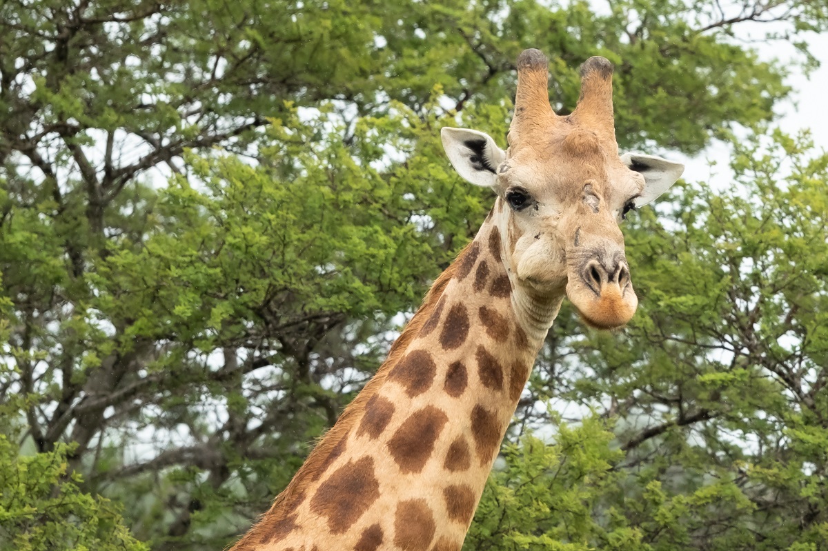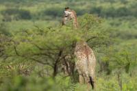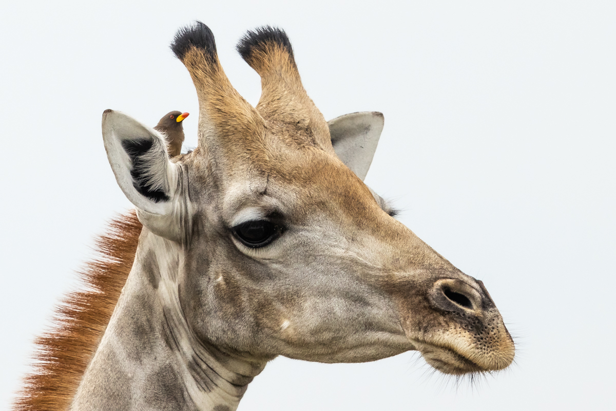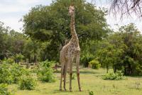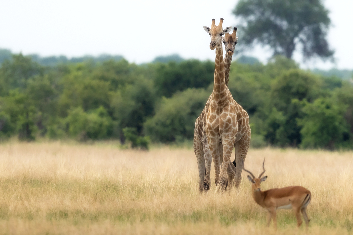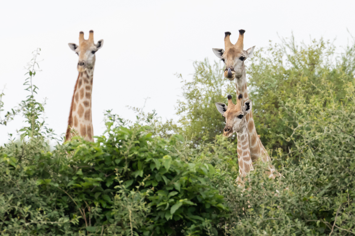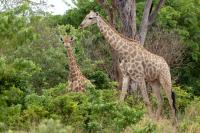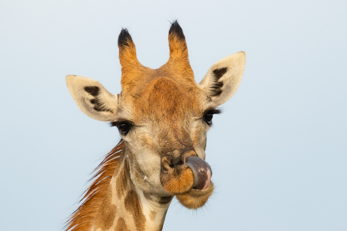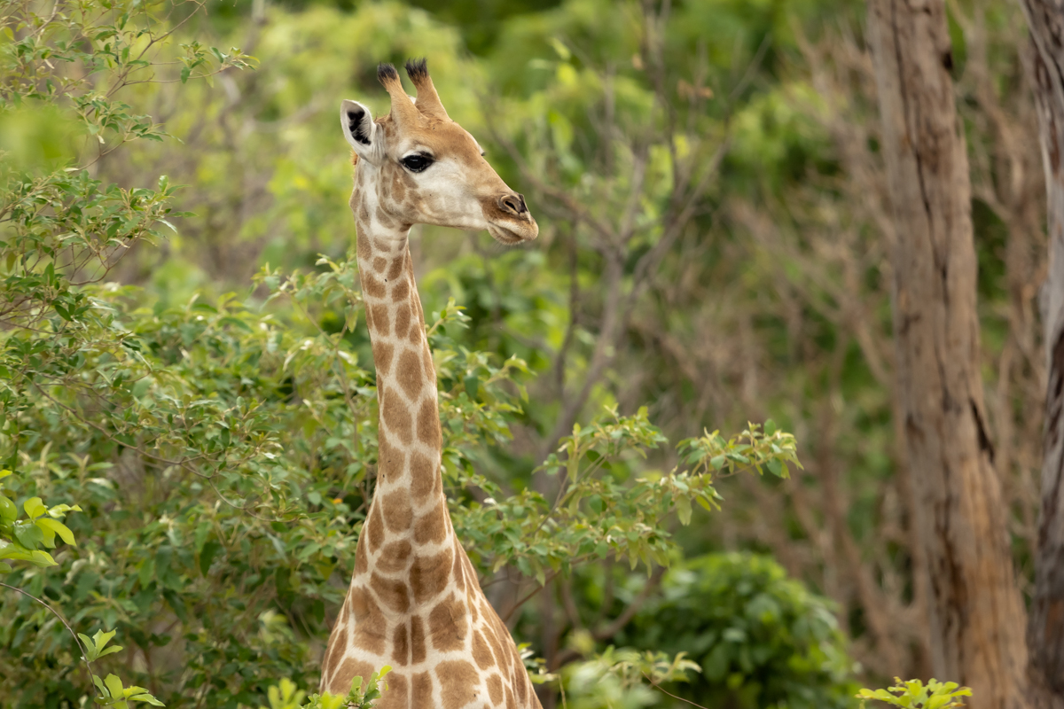 Przy żyrafach chciałbym zamieścić informację o dużych ssakach, tych typowych dla Afryki, jakie spotkaliśmy w Botswanie. Jeżeli ktoś chciałby podziwiać charakterystyczne dla Afryki ssaki, to myślę, że Botswana jest dobrym miejscem do tego. Raz obserwując żyrafy naliczyłem ich w zasięgu wzorku 15 osobników. W ciągu dwóch tygodni naliczyłbym chyba setki hipopotamów. Bawoły pokazywały się co jakiś czas, ale nie były tak liczne jak w Tanzanii. Podobnie jak ze stadami gnu. Z „wielkiej piątki” widzieliśmy wszystkie zwierzęta, prócz nosorożca, który jest już bardzo rzadki w skali całej Afryki. Ta wielka piątka to dość dziwne zaklasyfikowanie tych zwierząt do tej grupy. Nie ma wśród nich potężnego, niebezpiecznego hipopotama, który jest bardziej agresywny i niebezpieczny niż np. bawoły afrykańskie. Potężna, majestatyczna żyrafa, tak charakterystyczna dla Afryki, też nie zaliczana jest do „wielkiej piątki”. Obserwacja żyraf, podobnie jak słoni zawsze robi wrażenie, no i prawie zawsze można było liczyć na spotkanie z bąkojadami, które czasami po kilka osobników przebywały na jednej żyrafie
