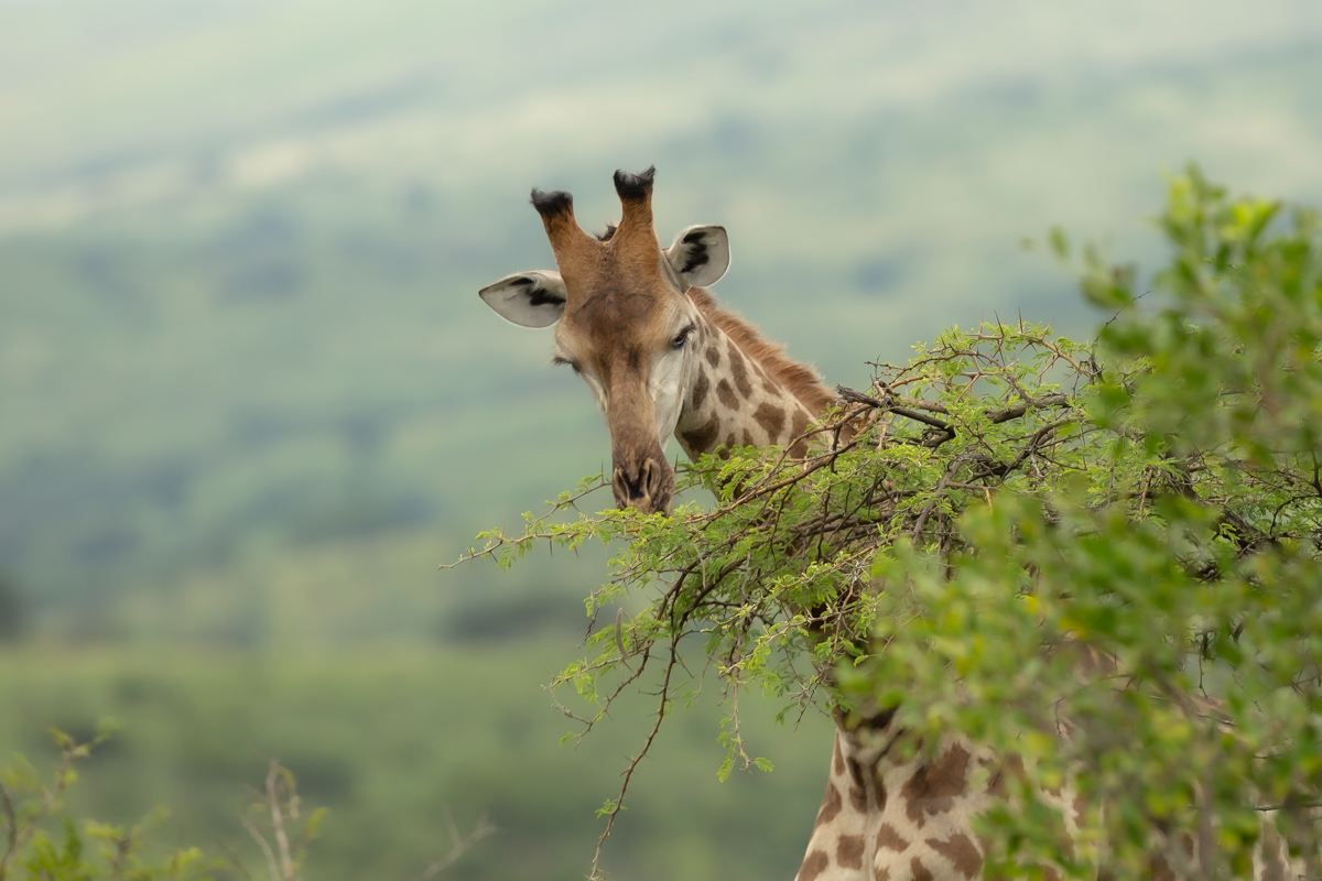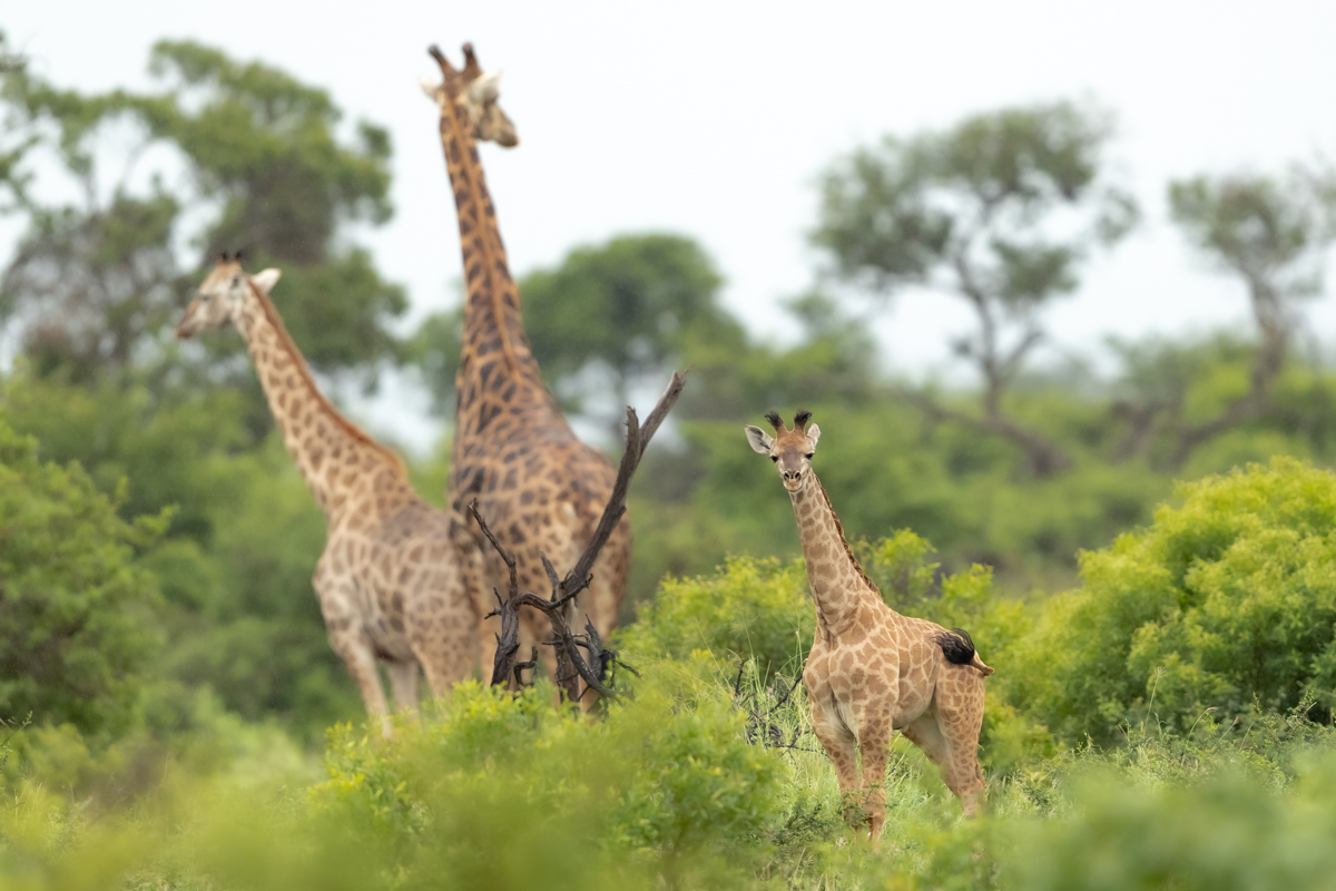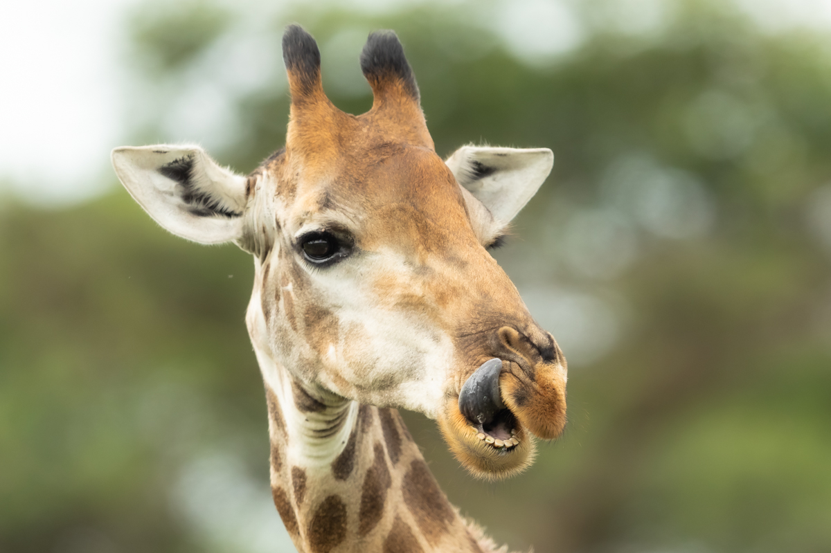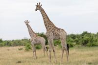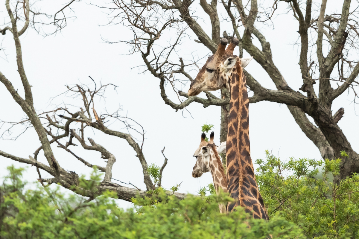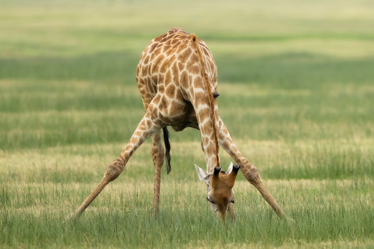 Przy żyrafach chciałbym zamieścić informację o dużych ssakach, tych typowych dla Afryki, jakie spotkaliśmy w Botswanie. Jeżeli ktoś chciałby podziwiać charakterystyczne dla Afryki ssaki, to myślę, że Botswana jest dobrym miejscem do tego. Raz obserwując żyrafy naliczyłem ich w zasięgu wzorku 15 osobników. W ciągu dwóch tygodni naliczyłbym chyba setki hipopotamów. Bawoły pokazywały się co jakiś czas, ale nie były tak liczne jak w Tanzanii. Podobnie jak ze stadami gnu. Z „wielkiej piątki” widzieliśmy wszystkie zwierzęta, prócz nosorożca, który jest już bardzo rzadki w skali całej Afryki. Ta wielka piątka to dość dziwne zaklasyfikowanie tych zwierząt do tej grupy. Nie ma wśród nich potężnego, niebezpiecznego hipopotama, który jest bardziej agresywny i niebezpieczny niż np. bawoły afrykańskie. Potężna, majestatyczna żyrafa, tak charakterystyczna dla Afryki, też nie zaliczana jest do „wielkiej piątki”. Obserwacja żyraf, podobnie jak słoni zawsze robi wrażenie, no i prawie zawsze można było liczyć na spotkanie z bąkojadami, które czasami po kilka osobników przebywały na jednej żyrafie