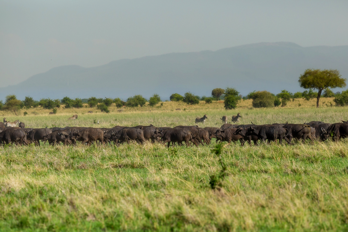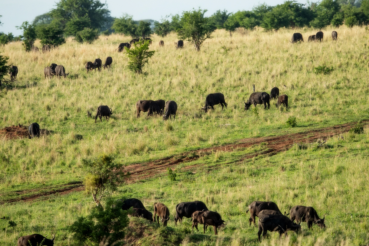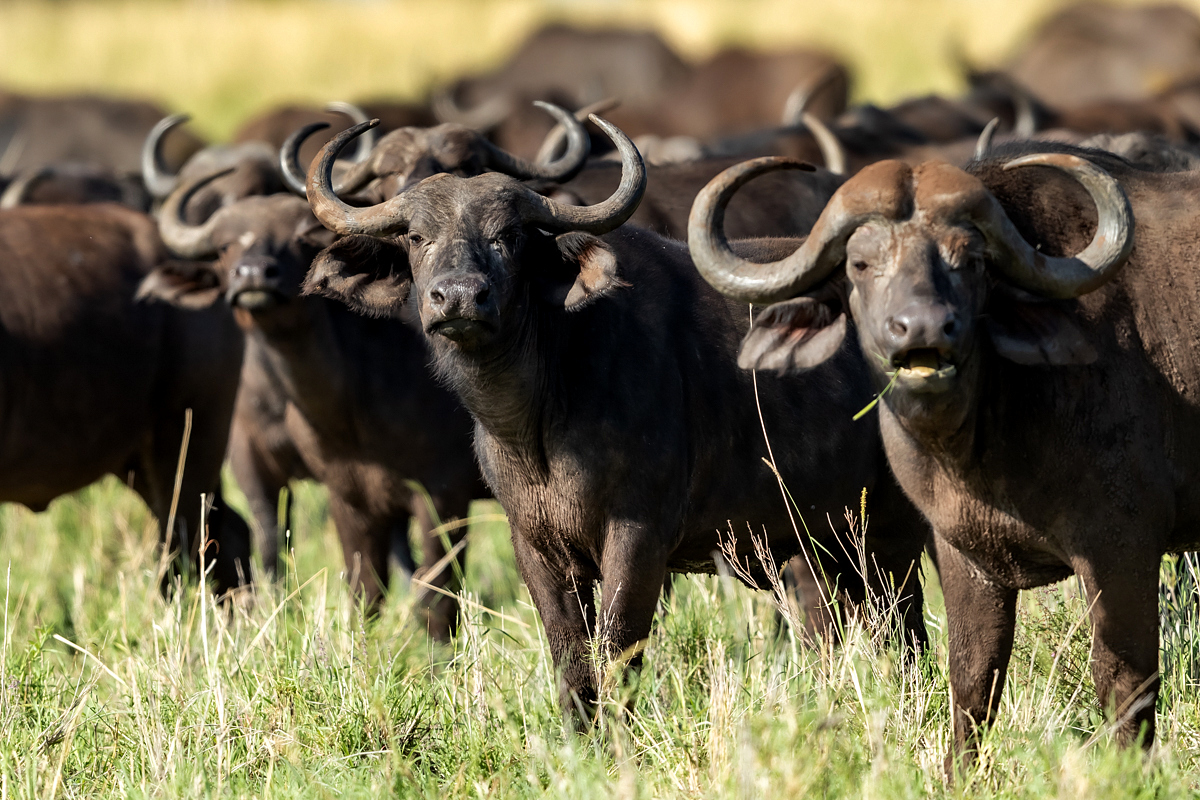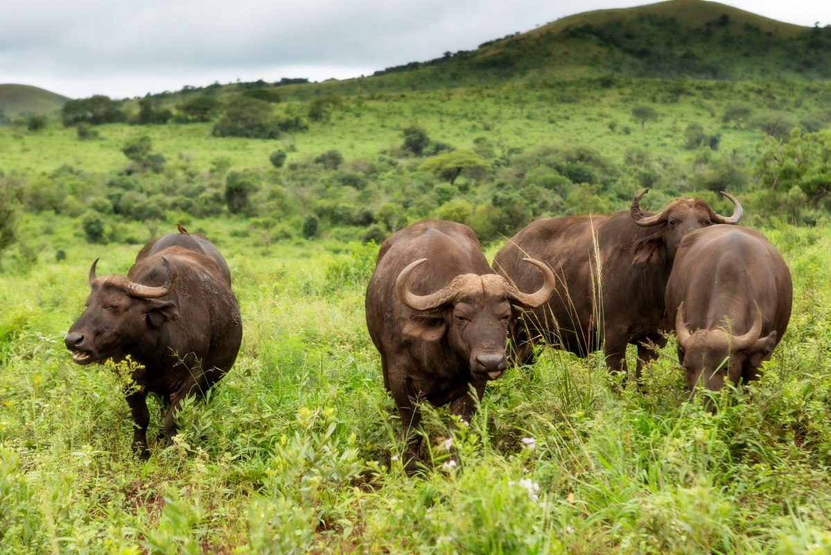 SSAKÓW: 1. Bawół afrykański. 2.Guziec zwyczajny. 3. Impala. 4. Kob śniady. 5.Mangusta pręgowana.