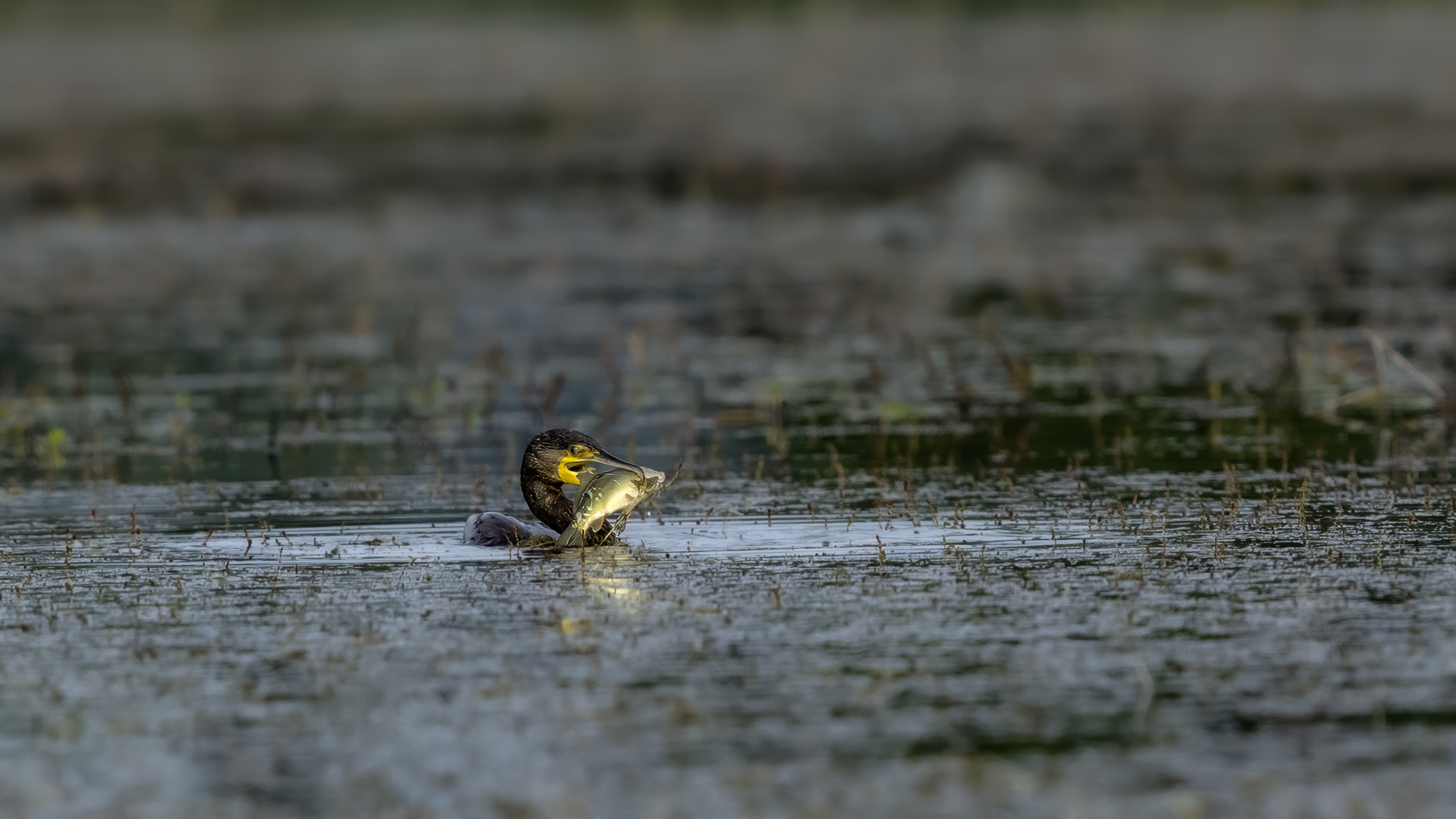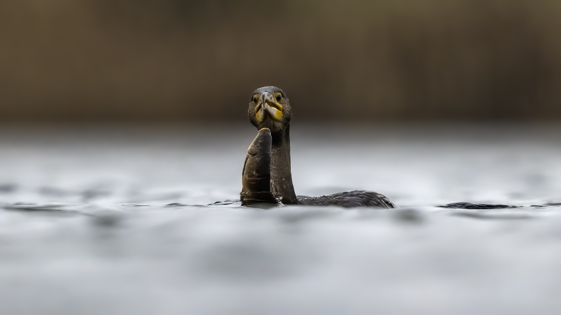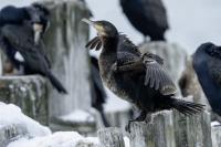 Spotkań z kormoranami było już wiele, ale te zrobione w styczniu 2022 roku wprowadzają urozmaicenie galerii. Kormoran złowił rybę i przez dłuższy czas sprawdzał, czy go jest w stanie przełknąć. Męczył ją długo, po czym ją wypuścił. Czy przeżyła? nie wiem, kormoran na pewno jej nie zjadł.