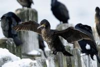 Fotografując w Nowej Zelandii kormorana białolicego nieopodal widać było kilka kormoranów zwyczajnych. Były znacznie mniej ufne od kormorana białolicego i w chwili, gdy zrozumiały, że powoli zbliżam się do nich, poderwały się do lotu. Tak więc, galeria nie jest zasilona w jakieś ciekawe ujęcia, ale ciekawym jest, że te ptaki, które można spotkać w Polsce także i tu, „na końcu świata” można spotkać. Wszystkich Nowozeladczyków przepraszam, za ten koniec świata, ale z Europejskiej perspektywy, tak właśnie to wygląda.