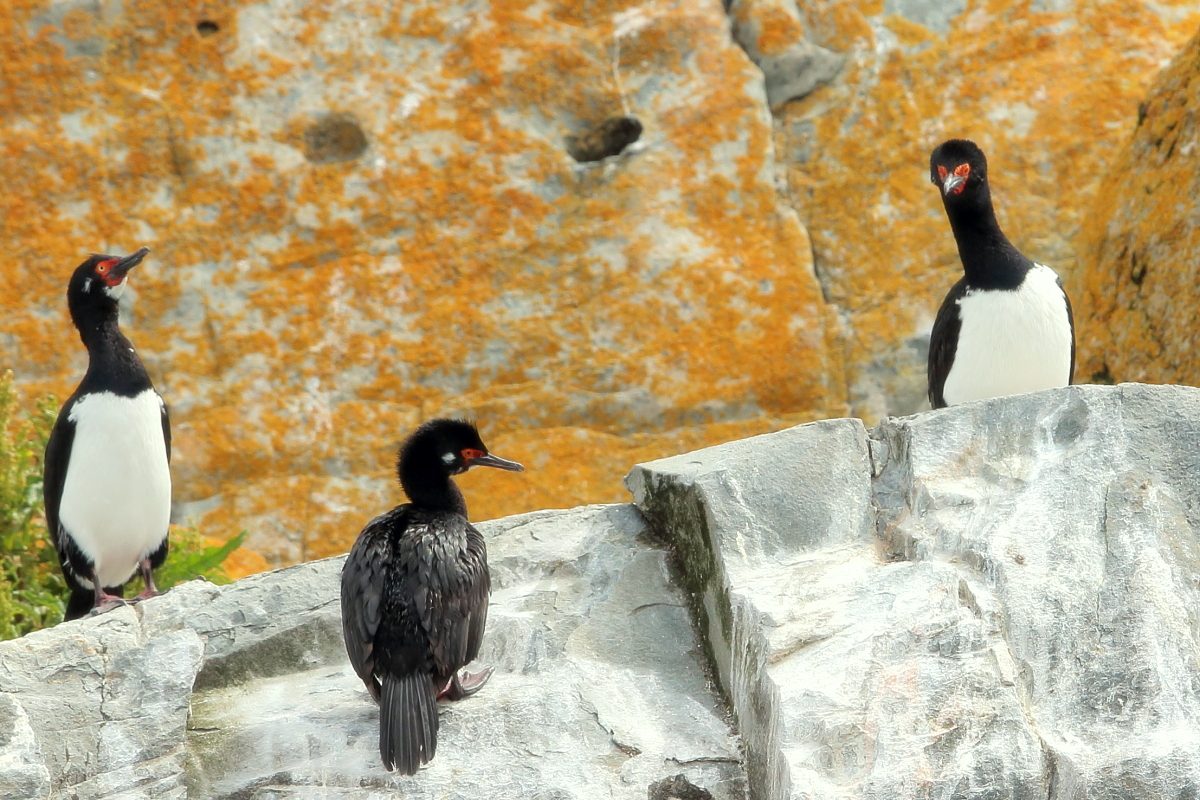 Z kormoranem skalnym były dwa spotkania, a liczba zaobserwowanych ptaków niewielka. Pierwsze spotkanie odbyło się podczas opisywanego wcześniej krótkiego rejsu w okolicy Ushuaia, przy okazji fotografowania innych gatunków. Niestety tylko na jednej niewielkiej wyspie zobaczyłem kormorany skalne. Na szczęście powstało sporo zdjęć, choć niestabilność pokładu  spowodowała, iż wiele z nich było nieostrych, bądź źle wykadrowanych. Drugie spotkanie było podczas fotografowania rybitwy jaskółczej, na wraku statku w porcie w Ushuaia. Jest nieco mniejszy od kormorana niebieskookiego. Waga jego wynosi do 1,5 kilograma, a rozpiętość skrzydeł to niespełna metr.