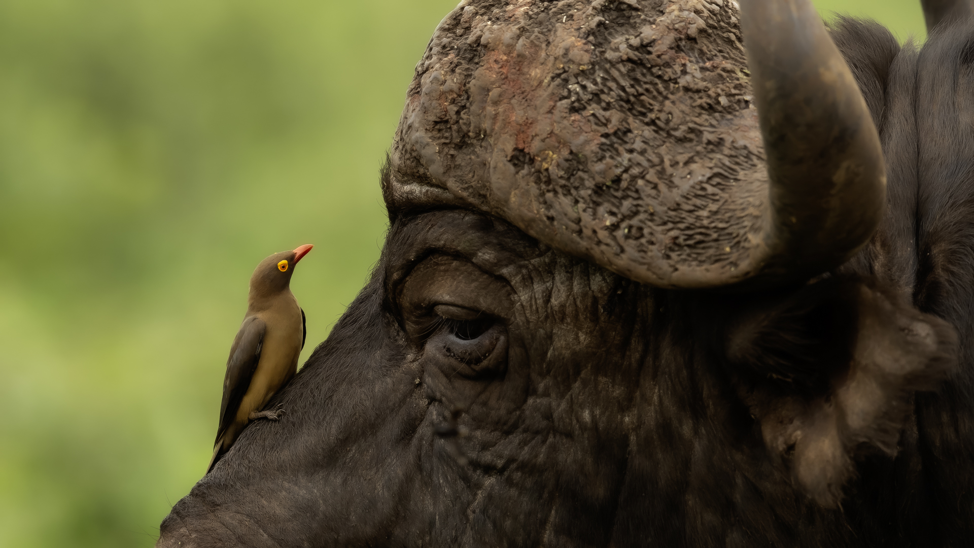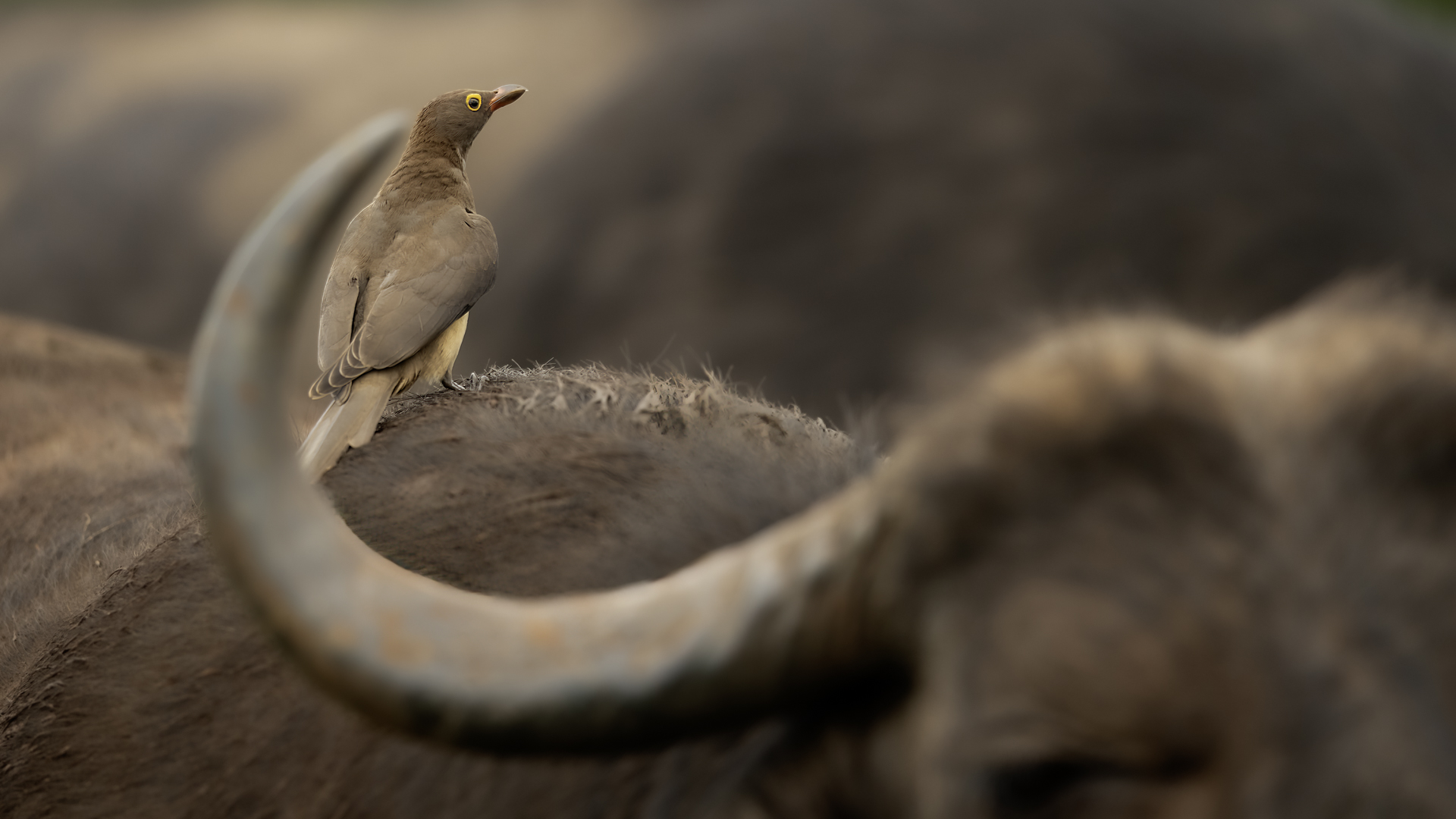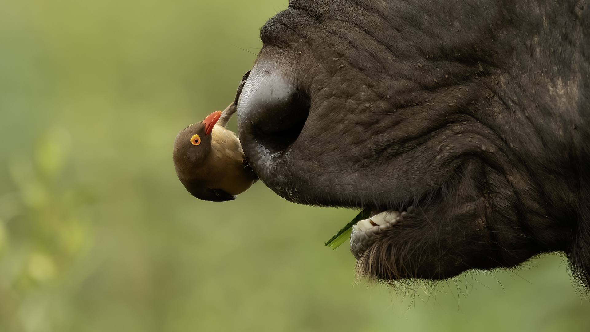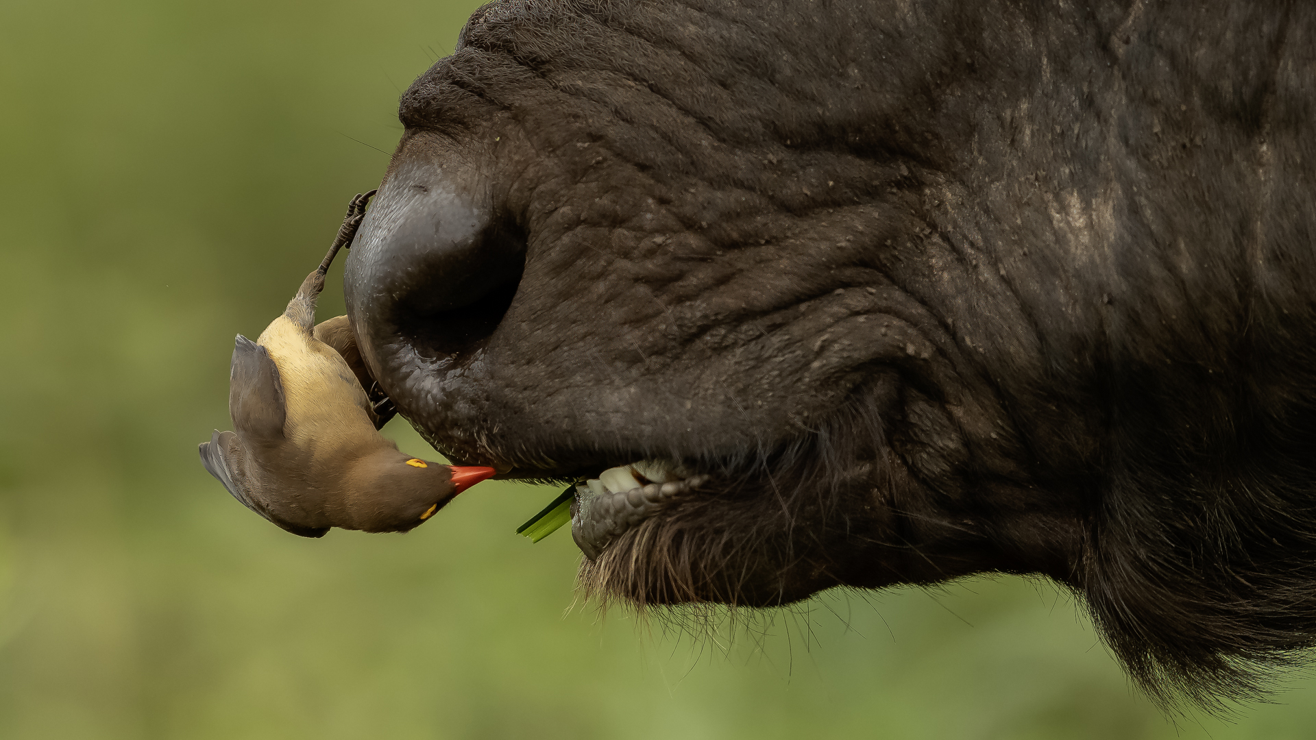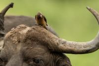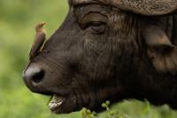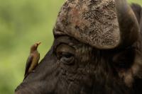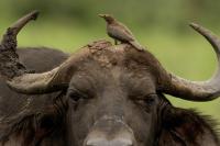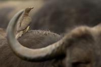 Ten ptak był na mojej liście gatunków do sfotografowania podczas wyprawy do RPA. Niestety pierwsze spotkanie do udanych nie należało, dwa zdjęcia z dość znacznej odległości, i to na krowie. Nie o takie zdjęcia przecież chodziło. Na szczęście kilka dni później udało się znaleźć stado bawołów i kilka żyraf z żerującymi na nich bąkojadami. Powstały, moim zdaniem, jedne z ciekawszych zdjęć z tego wyjazdu. Bawoły, z racji swej siły i nieraz dużej agresji, należą do jednych z bardziej niebezpiecznych zwierząt Afryki. Podczas fotografowania silnik samochodu musiał być cały czas włączony. Na szczęście bawoły wprawdzie kilkukrotnie prezentowały groźną pozę, ale w sumie zaakceptowały naszą obecność i można było zrobić zdjęcia i bąkojadom, i bawołom. Zamieściłem kilka zbliżeń bąkojadów kosztem przedstawienia bawołów, ale przecież to nie ich galeria. Dzięki temu widać, że w okolicach oczu bawoła spokojnie żeruje wiele kleszczy. Ciekawym jest, że bąkojady bez bawołów były bardzo płochliwe i nie dało się im wykonać ciekawych zdjęć. Tymczasem podróżując na bawołach, które w pewnym momencie zbliżyły się do nas na niespełna 10 metrów, nie uciekały. Powstają najciekawsze zdjęcia i nagranie głosu bąkojada.