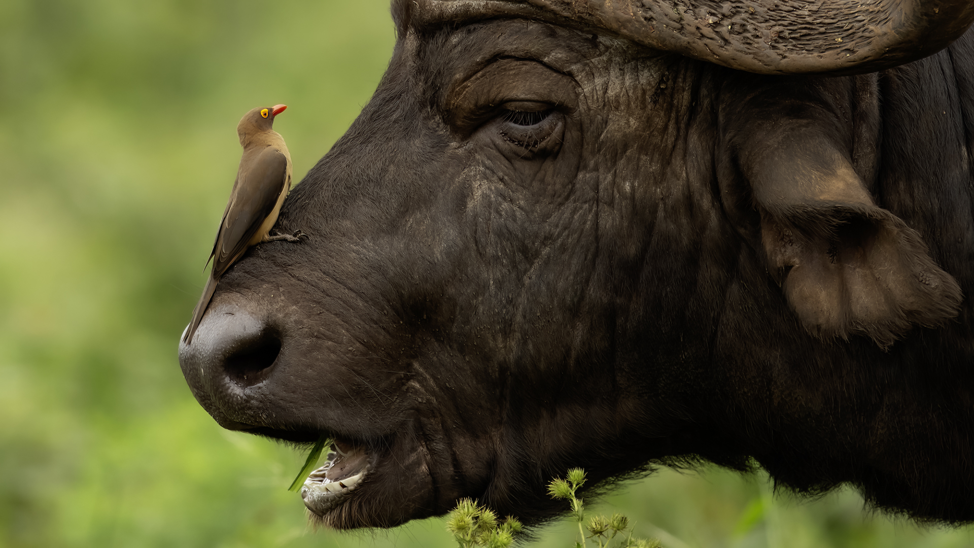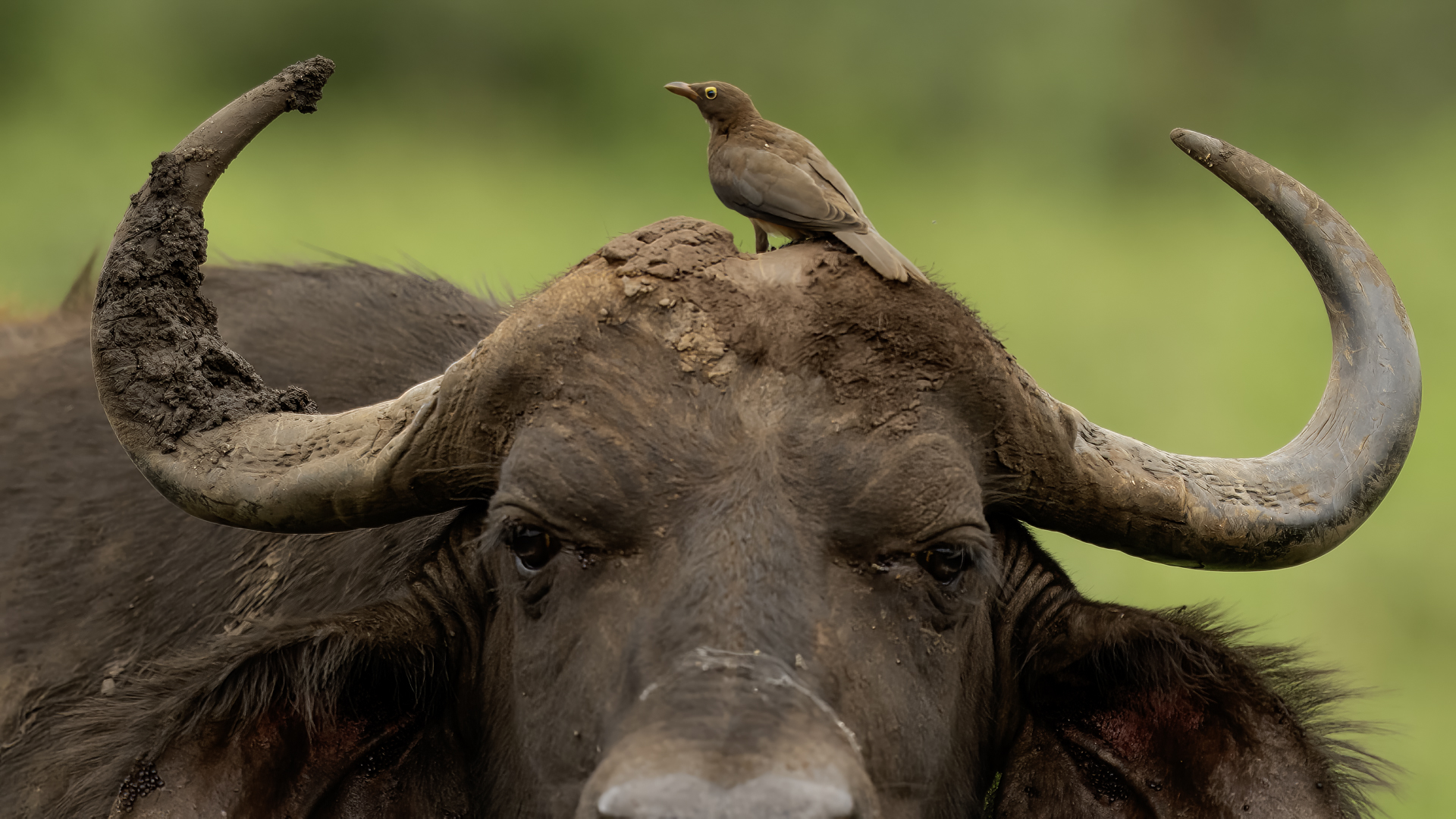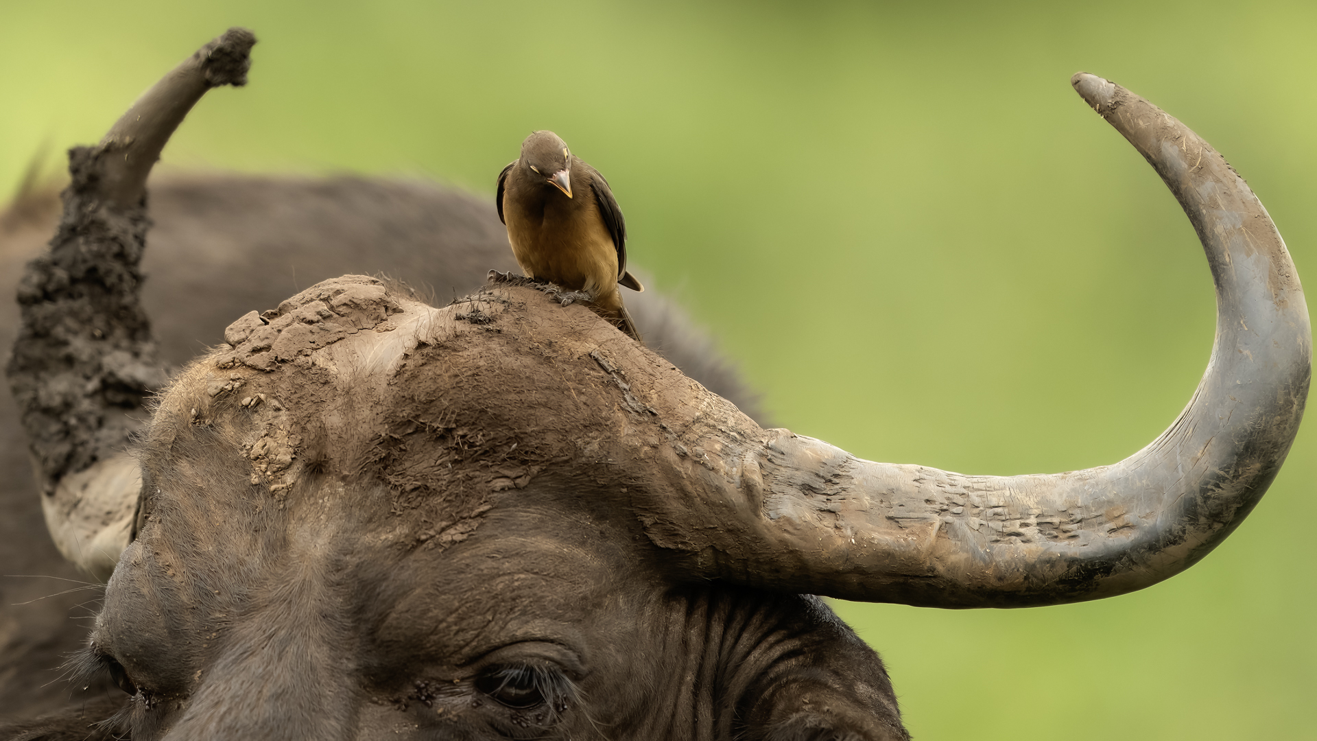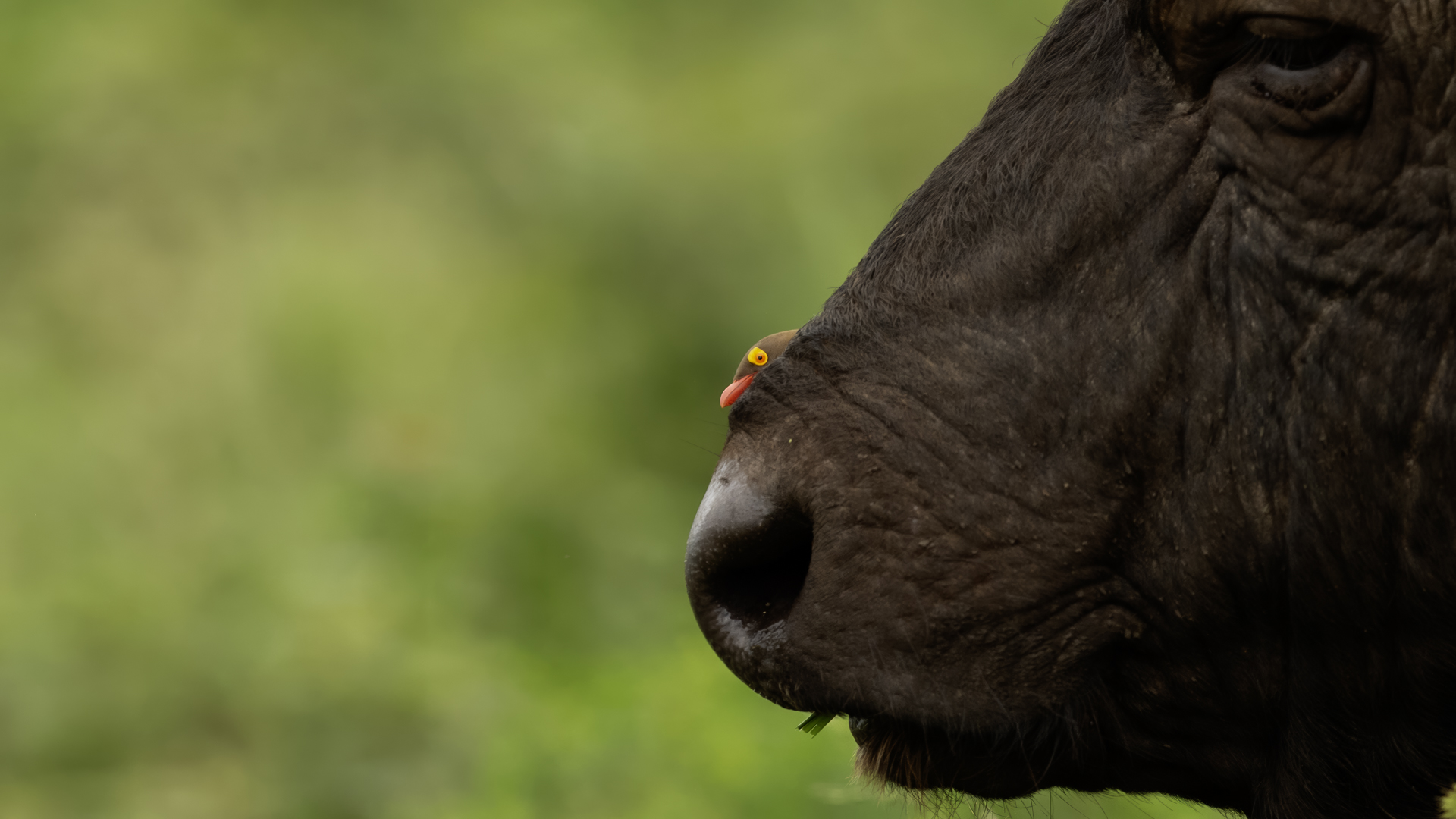 Ten ptak był na mojej liście gatunków do sfotografowania podczas wyprawy do RPA. Niestety pierwsze spotkanie do udanych nie należało, dwa zdjęcia z dość znacznej odległości, i to na krowie. Nie o takie zdjęcia przecież chodziło. Na szczęście kilka dni później udało się znaleźć stado bawołów i kilka żyraf z żerującymi na nich bąkojadami. Powstały, moim zdaniem, jedne z ciekawszych zdjęć z tego wyjazdu. Bawoły, z racji swej siły i nieraz dużej agresji, należą do jednych z bardziej niebezpiecznych zwierząt Afryki. Podczas fotografowania silnik samochodu musiał być cały czas włączony. Na szczęście bawoły wprawdzie kilkukrotnie prezentowały groźną pozę, ale w sumie zaakceptowały naszą obecność i można było zrobić zdjęcia i bąkojadom, i bawołom. Zamieściłem kilka zbliżeń bąkojadów kosztem przedstawienia bawołów, ale przecież to nie ich galeria. Dzięki temu widać, że w okolicach oczu bawoła spokojnie żeruje wiele kleszczy. Ciekawym jest, że bąkojady bez bawołów były bardzo płochliwe i nie dało się im wykonać ciekawych zdjęć. Tymczasem podróżując na bawołach, które w pewnym momencie zbliżyły się do nas na niespełna 10 metrów, nie uciekały. Powstają najciekawsze zdjęcia i nagranie głosu bąkojada.