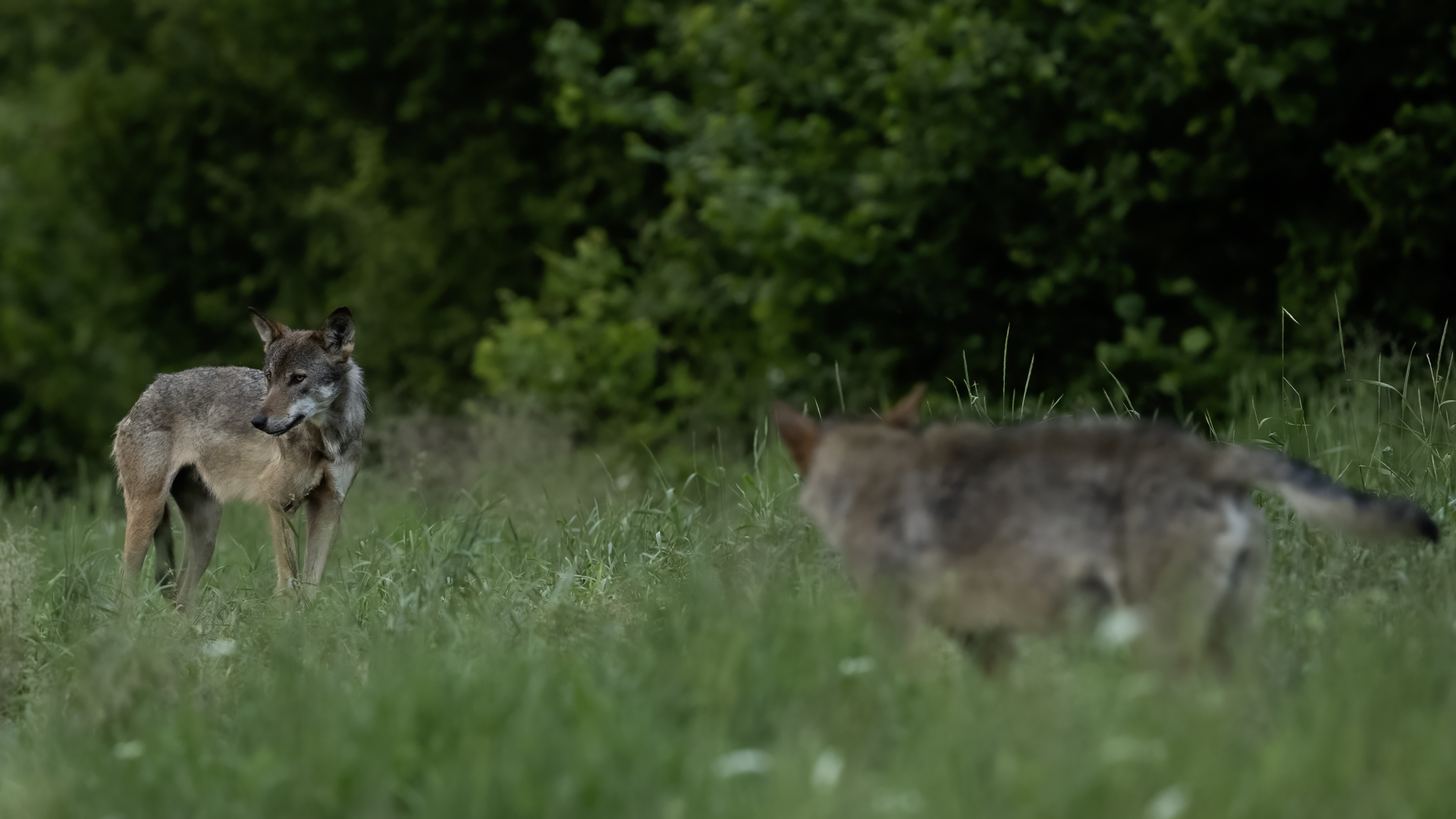 Już od kilku lat czekałem na okazję sfotografowania wilków. Nie jest to prosty i łatwy gatunek do sfotografowania i to głównie ze względu je jego nocny tryb życia. Leśnicy mają powiedzenie, że jeżeli widziałeś wilka on widział cię już 7 razy. Podobnie jest z niedźwiedziami, z tą różnicą, że ich wielkość, potencjalne niebezpieczeństwo z ich strony jest dużo większe. Wilki pojawiały się nieraz po kilka osobników na raz. Zdarzały się wilcze sprzeczki przed naszymi obiektywami lub niedźwiedzio-wilcze sprzeczki. Niestety brakowało światła, aby to wszystko należycie uwiecznić. Tak, więc wreszcie udało się sfotografować dzikie wilki, choć już szkoda, że nie z zimową, puszystą sierścią. Wyglądają wówczas niesamowicie. Wreszcie powstała wilcza galeria na mojej stronie, a o kulisach jej powstania, podziękowaniach dla organizatora warsztatów, napisałem w tekście przewodnim do galerii niedźwiedź brunatnego – zapraszam.