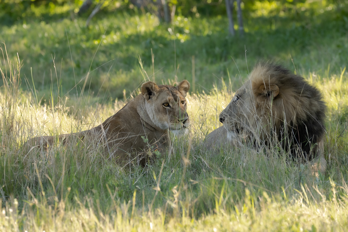 1.Słoń afrykański (T,G). 2.Żyrafa Południowa (T) 3.Gnu pręgowane. 4.Mangusteczka karłowata. 5.Skocznik antylopi. 6.Gepard grzywiasty (T). 7.Kob śniady. 8.Lew. 9.Lampart plamisty. 10.Impala. 11.Guziec zwyczajny. 12.Pawian niedźwiedzi. 13.Bawół afrykański. 14.Szakal czaprakowy. 15.Hipopotam. 16.Mangusta pręgowana.