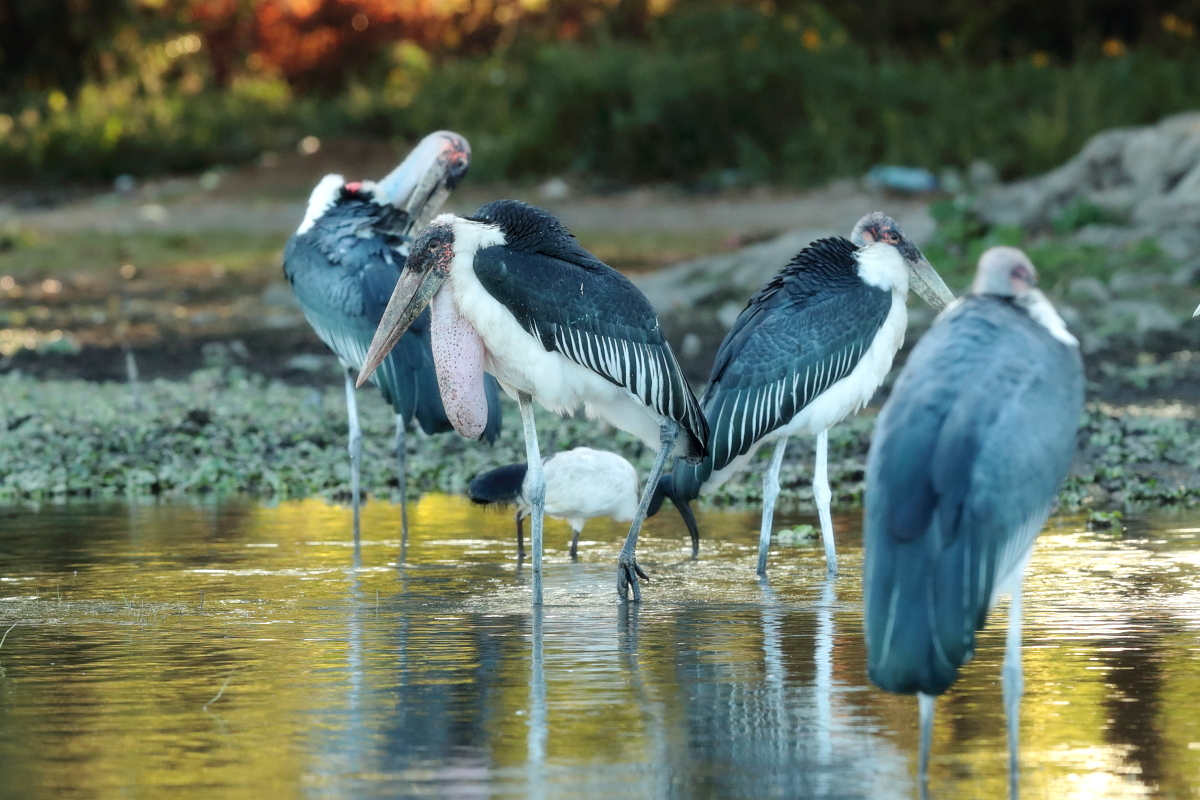 1.Sęp afrykański (G). 2. Wojownik długoczuby (G). 3.Czapla czarnogłowa. 4. Bąkojad czerwonodzioby (T). 5. Perlica (T,G). 6. Żołna mała. 7.Czajka srokata. 8. Długoszpon afrykański.  9.Muchodławka wspaniała (G).10.Kania egipska (T). 11.Palmojad. 12. Gęsiec gambijski. 13. Kuglarz. 14. Czapla nadobna (G).15. Gadożer brunatny. 16. Ibis kasztanowaty (T). 17.Czagra brązowołbista. 18.Krępnik czarnopierśny. 19.Dudek afrykański (T,G). 20.Kulon plamisty. 21. Ibis czczony. 22. Czajka czarnoskrzydła. 23. Kulon nadwodny. 24.Żuraw koroniasty. 25.Wikłacz czerwonodzioby. 26. Dziwogon żałobny.27. Gołąb okularowy. 28.Orzeł afrykański.  29.Sieweczka śniada. 30. Sieweczka piaskowa (G). 31.Czajka płowa. 32.Orzeł stepowy. 33.Brunatniczka. 34. Kulczyk mozambijski . 35.Czapla modronosa. 36. Czapla olbrzymia. 37. Kraska. 38. Czapla złotawa. 39. Dławigad afrykański. 40. Łowiec jasny . 41.Jaskółka abisyńska.42.Pelikan różowy. 43. Czepiga rudawa. 44. Czarnotek rudoskrzydły. 45.Jaskółka rudawa (G). 46. Szablodziób. 47. Kląskawka afrykańska. 48. Synogarlica popielata. 49. Waruga (G). 50. Bocian biały (T). 51. Kleszczak afrykański. 52. Szczudłak. 53. Łowiec kreskowany. 54.Wdówka białobrzucha. 55. Dzierzba białobarkowa. 56.Ślepowron. 57. Kaniuk. 58.Amarantka zmienna. 59. Brodziec pławny. 60. Synogarlica senegalska. 61.Srebrzanka czerwonodzioba. 62.Frankolin czubaty (T). 63.Drozdówka jasna.  64.Czapla zielonawa.  65.Drzewica białolica. 66. Czajka szponiasta (T,G). 67. Orzeł cesarski. 68.Struś czerwonoskóry. 69.Orlik krzykliwy. 70.Pustułeczka. 71.Białorzytka.