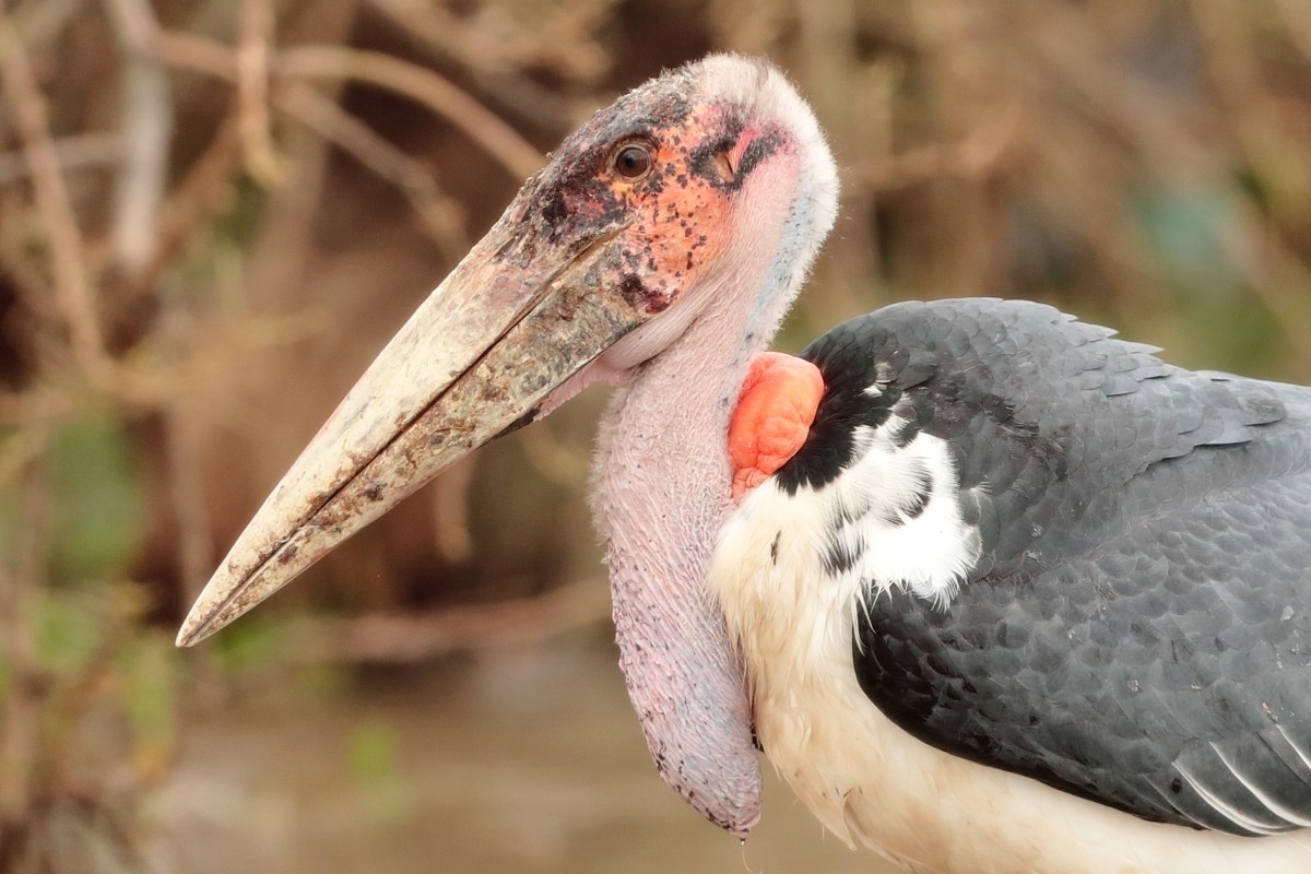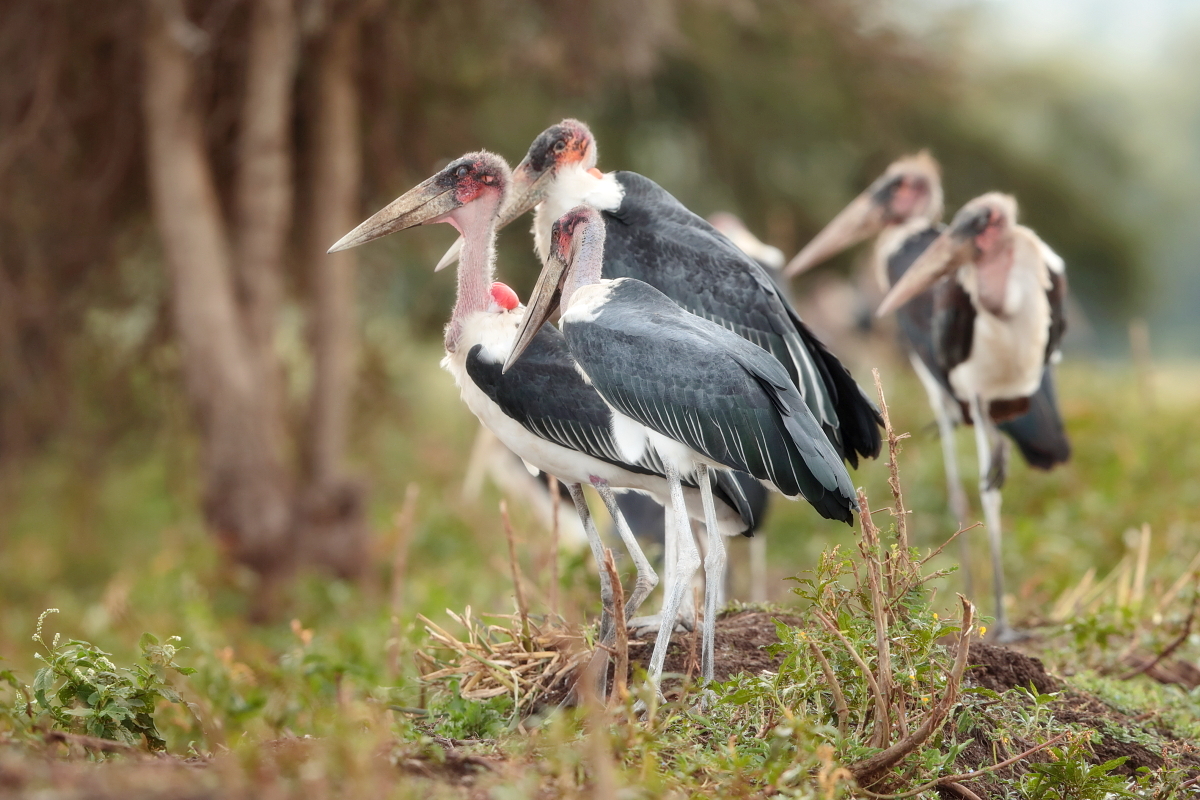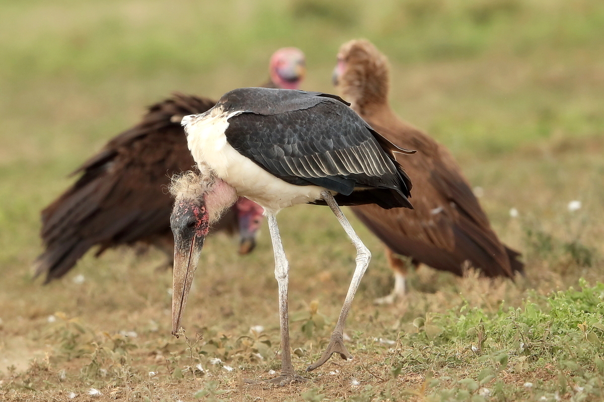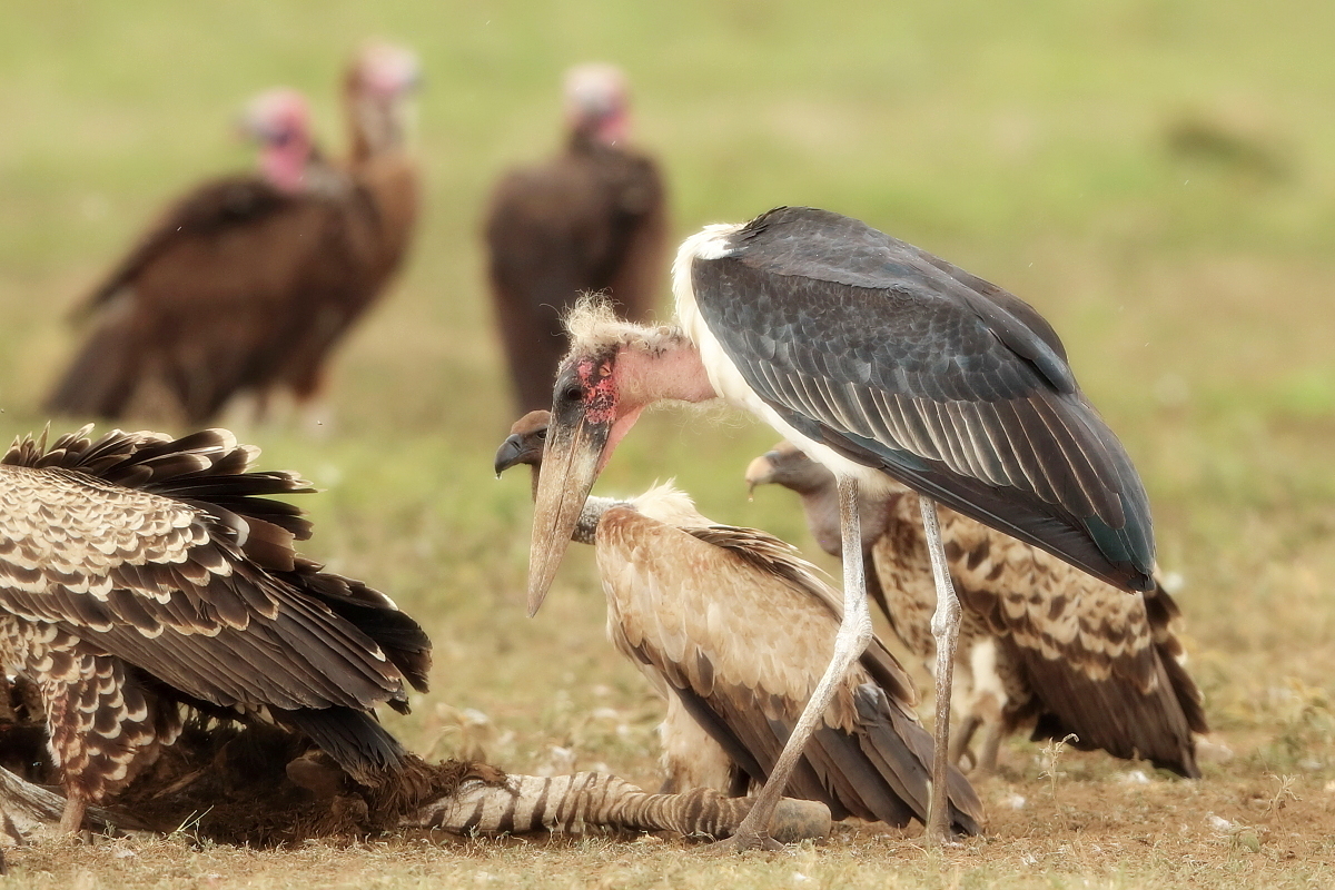Marabuty afrykańskie były często spotykane w Tanzanii. Często przechadzały się nawet po polach namiotowych w poszukiwaniu jakichś pozostawionych resztek pożywienia. Pojawiały się też przy posilających się padliną sępach, hienach. Nie było trudno wykonać im zdjęcia, powstały one jednak bardziej z chęci uwiecznienia kolejnego gatunku, i to tak charakterystycznego w Afryce, niż z podziwu do tych ptaków. Nie ma co, marabuty, moim zdaniem, do urokliwych nie należą…