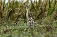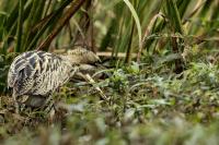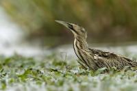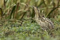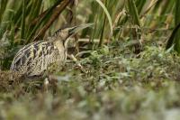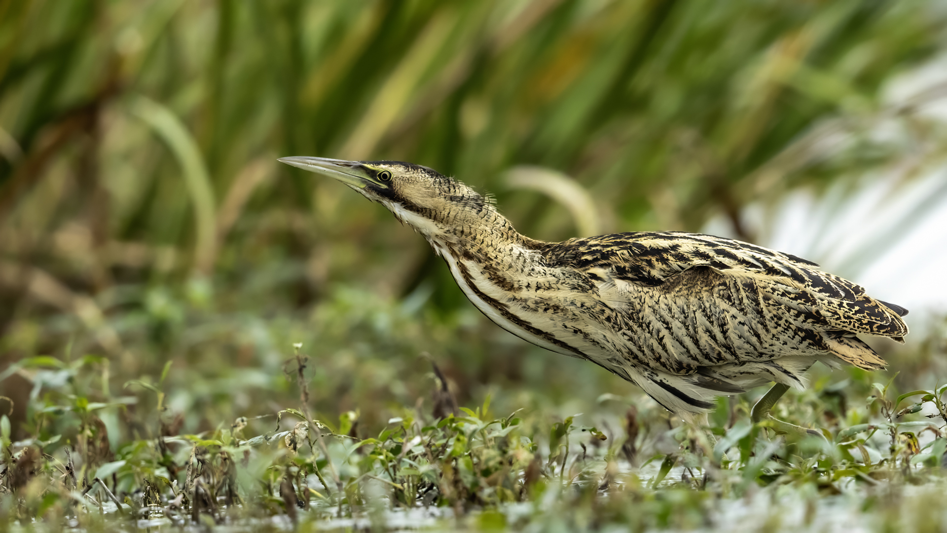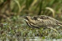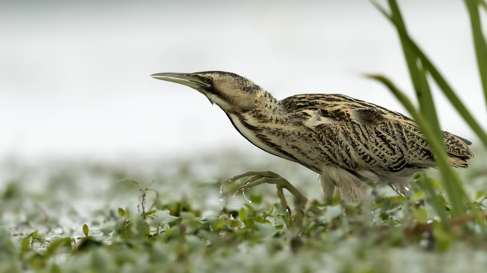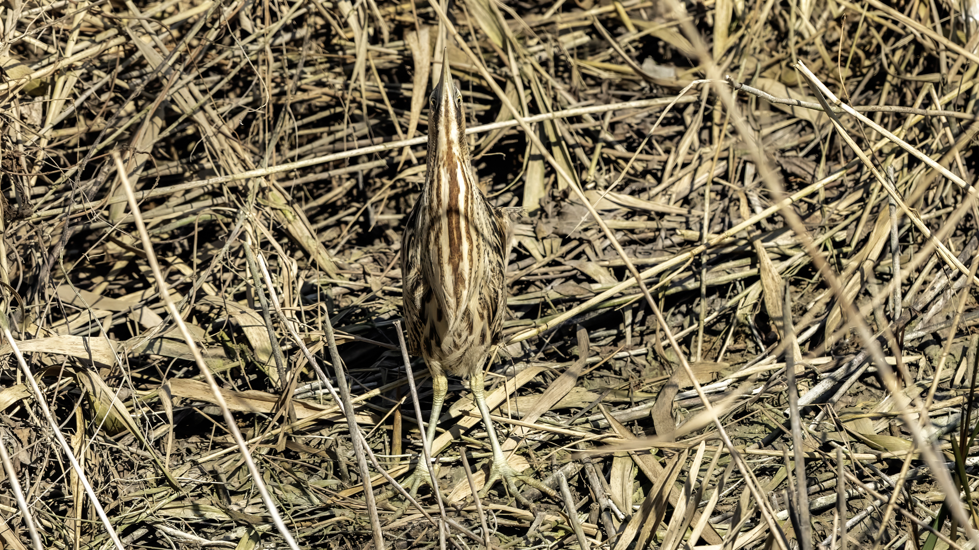 Tym razem wybraliśmy się z Haliną do czatowni właśnie na bąka. Był widziany w tej okolicy, co zwiększało prawdopodobieństwo do 2 %, że się uda :-)) . Ale jak się nie próbuje, to na pewno się nie sfotografuje. Kilka godzin wyczekiwania od świtu i nagle jest w pełnym kadrze przed naszymi obiektywami. Trudno pohamować emocje tak długo wyczekiwanego spotkania, ale Haliny ciśnienie osiągnęło swoje maksimum. Obserwowała go wcześniej ode mnie kilka minut, bo bąk usiadł pół metra od jej ściany czatowni i sprawdzał teren. Jakikolwiek ruch, odgłos wówczas i powiedziałbym, że znów było blisko. Tym razem się udało, choć majestatyczne przejście przed obiektywami trwało niespełna dwie minuty. Tylko i aż dwie minuty. Dwie minuty które pamiętać się będzie do końca życia, zmieniają dotychczasowy dokumentacyjną zawartość galerii no i taaaaaakie spotkanie musi być odnotowane w nowościach…