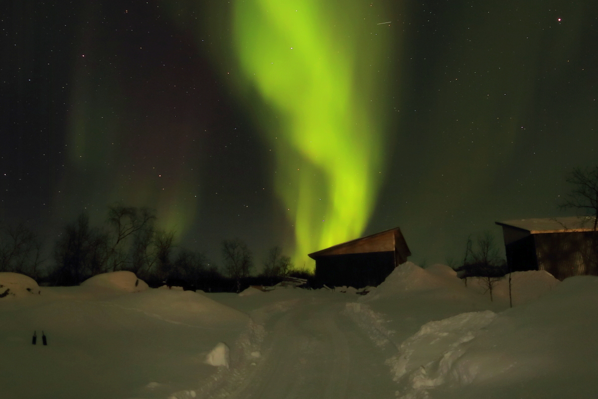 Zobaczenie zorzy polarnej zawsze było gdzieś w moich planach. Ale wiadomo, w pogoni za ptakami zorza schodziła zawsze gdzieś na dalszy plan. Aż wreszcie nadarzyła się okazja, bo otrzymałem zaproszenie na perfekcyjnie zorganizowany wyjazd, którego celem było oglądanie zorzy polarnej. Witek, pozdrawiam i dziękuję. Pozdrawiam też pozostałych moich kompanów: Pawła i Jurka, bo prócz zdjęć była też atmosfera, uśmiech i dobry klimat tego trudnego fotografowania. A nie było łatwo z dwóch, może z trzech powodów. Pierwsza trudność, to sama zorza, bo musi się w ogóle pojawić. Niestety nie jest to takie pewne, nawet na dalekiej północy. Wystarczy małe zachmurzenie i cała wyprawa zakończyłaby się fiaskiem. Finowie mówią, że tylko 7 dniowy pobyt daje 100% gwarancję. Ile w tym prawdy, ile marketingu turystycznego - nie wiadomo i trudno to ocenić podczas pierwszego, dwudniowego mojego pobytu w Finlandii. My mieliśmy możliwość obserwowania jej i pierwszego, i drugiego dnia, a właściwie w nocy. Drugiego dnia była zdecydowanie intensywniejsza, ciekawsza, piękniejsza. Zdobyte pierwszego dnia doświadczenie pomogły w wykonaniu znacznie lepszych zdjęć kolejnego dnia. Było to ważne, bo fotografowanie nocne rządzi się swoimi prawami. Pierwsza sprawa to kwestia ostrości. Trzeba ją ustawić ręcznie, sprawdzić i nie ruszać. Nie jest to takie proste, jakby się wydawało, zwłaszcza że statyw był co chwilę przestawiany. A silny mróz tego nie ułatwiał. Nawet czołówka odmówiła posłuszeństwa, a trzeba było też wymienić akumulator w aparacie. Kilkunastostopniowy mróz to druga trudność tego zorzowego fotografowania. Oj, gdyby nie rozgrzewacze i wielowarstwowy ubiór, byłoby trudno wytrzymać po kilka godzin na takim mrozie. A najgorszy do tego był wiatr… Trzeci problem to stopień trudności samej techniki fotografowania. W grę wchodzą wyłącznie obiektywy szerokokątne, ale zorza przesłaniała nieraz tak dużą przestrzeń, że nawet one nie radziły sobie z jej objęciem w kadrze. Oczywiście, czym jaśniejszy obiektyw, tym lepiej. Sama zorza nie stoi w miejscu. To dynamiczne zjawisko. A więc, czym krótszy czas, tym większe prawdopodobieństwo wykonania dobrych zdjęć. Nie chcąc wykorzystywać wysokich nastawów ISO, pozostaje czas ekspozycji kilkusekundowy dla obiektywu 24/1.4, przy wykorzystaniu przesłony 2. I tu kolejne zaskoczenie tego nocnego fotografowania. To, co widzieliśmy na niebie, było znacznie słabsze w odbiorze niż to, co zobaczyliśmy w podglądzie w aparatach. Długa ekspozycja znacznie podbiła efekty świetlne, ale ostateczny rezultat był zadowalający i robił wrażenie - udało się sfotografować zorzę w pierwszym podejściu! Intensywność naszej zorzy określana była na około 60%. Wybierając się na takie fotografowanie nie sposób nie zabrać statywu fotograficznego, choć podobno silne zorze można fotografować z ręki…
