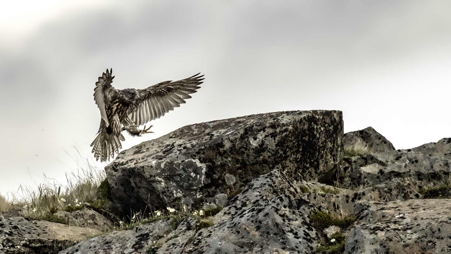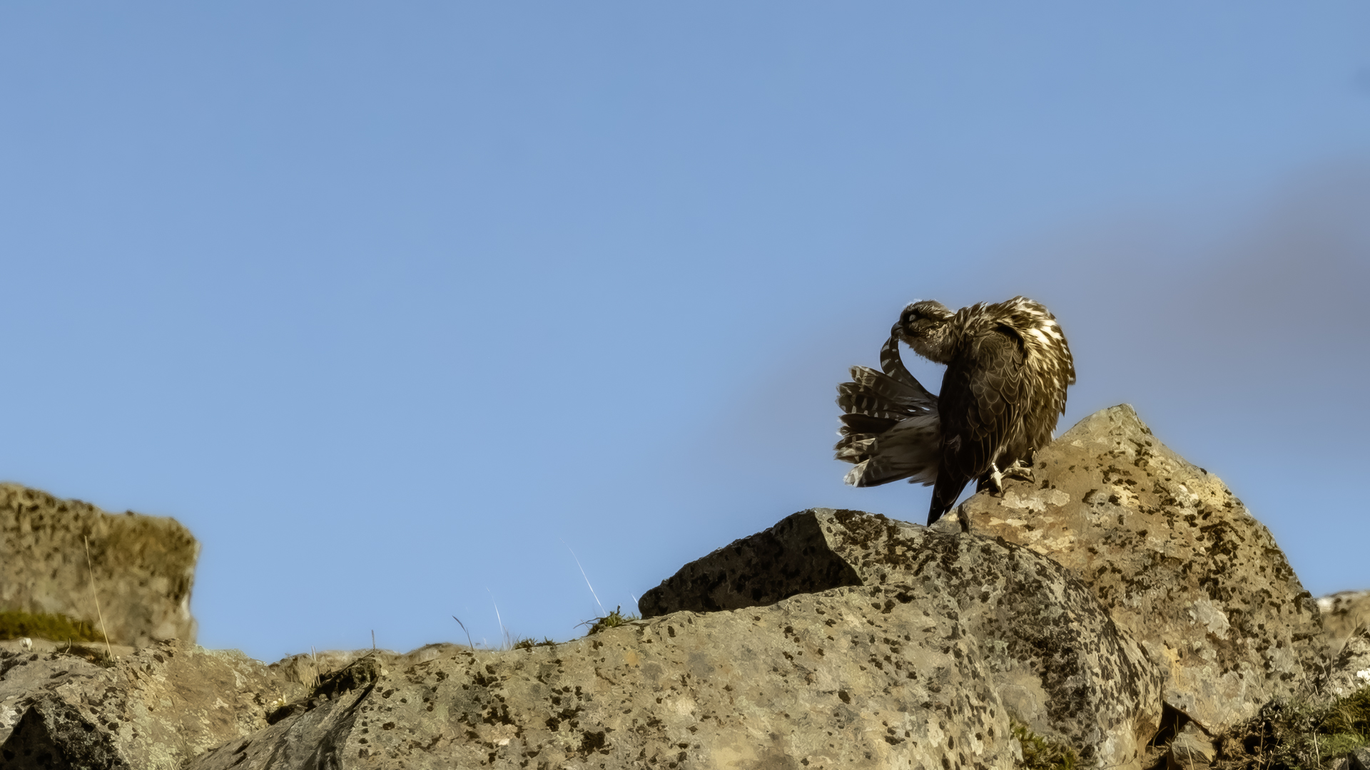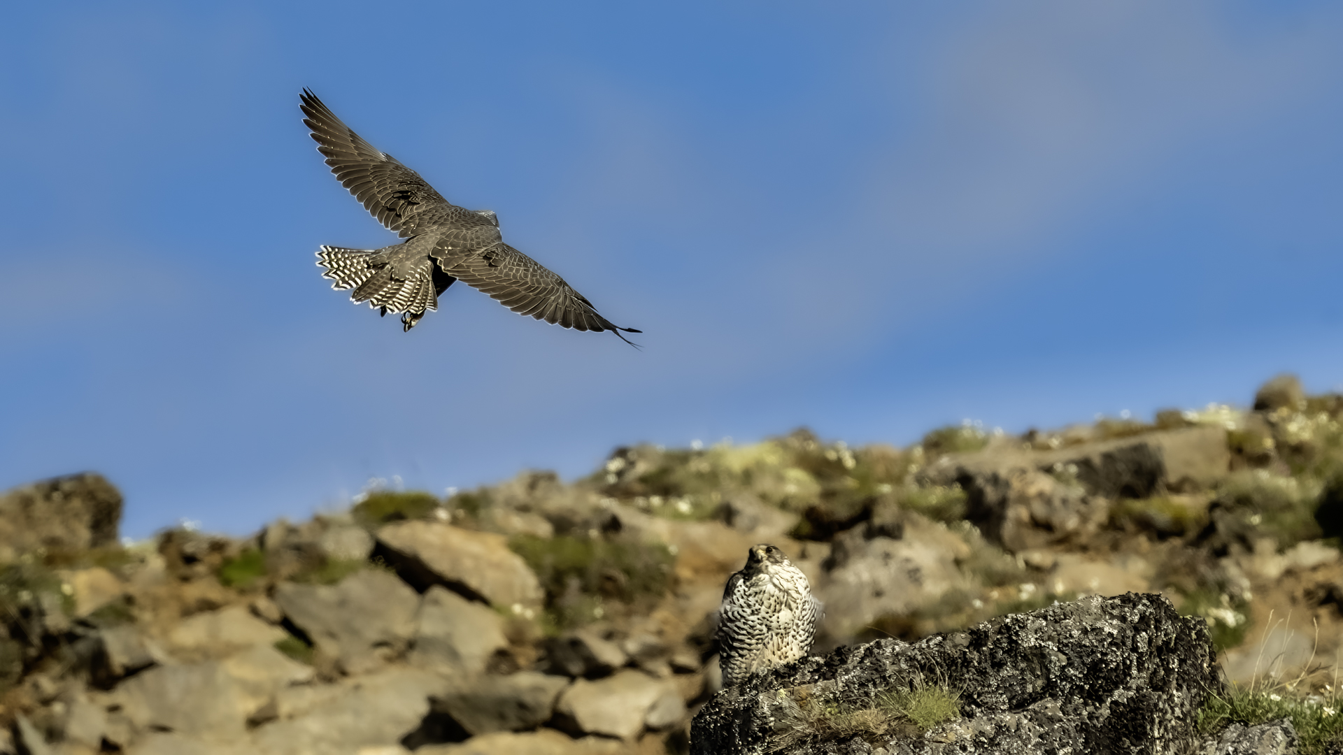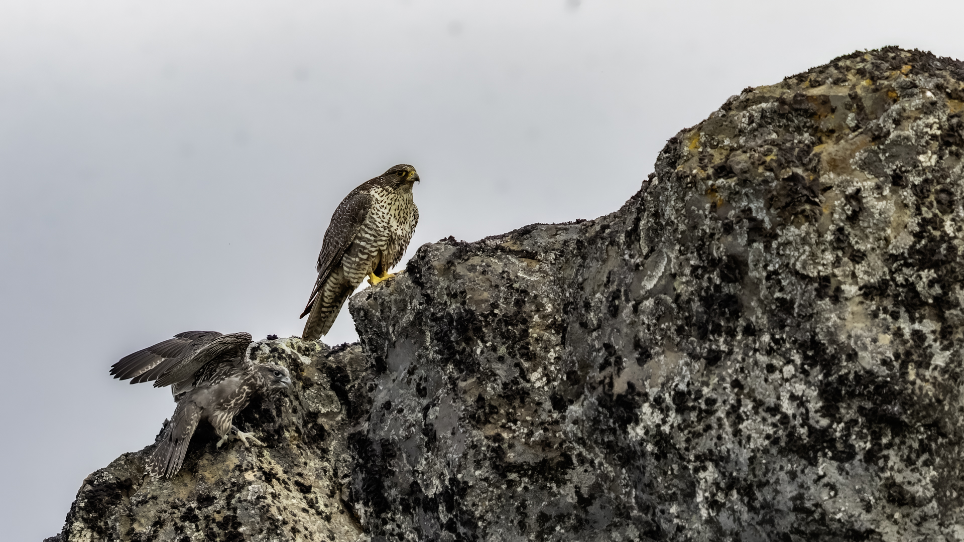 Mój pierwszy pobyt na Islandii cztery lata temu to istna fascynacja tym pięknym krajem, krajobrazami, wodospadami, bliskim kontaktem z przyrodą. I do tego Johann, który spokojnie, metodycznie odkrywał przede mną coraz to nowe ciekawe miejsca, gdzie można było fotografować ptaki. Jego wiedza o ptakach, nie tylko Islandii, jest wręcz przytłaczająca. Był to okres mojego “zaliczania” gatunków (to podejście z czasem zmieniło się w jakościowe). Wszystko to i fakt, że jedynie kilka dni mogłem poświęcić wówczas na wspólnie fotografowanie z Johannem, odbiło się niestety na jakości zdjęć. Moje podejście do fotografowania ewoluuje cały czas, a takie nastawienie na ilość w fotografowaniu to już przeszłość i teraz najważniejsza jest jakość, i to wybranych, interesujących mnie gatunków. I tak wreszcie po czterech latach nadszedł ten czas, aby znów się spotkać z Johannem i wspólnie fotografować. Tym razem scenariusz tego fotografowania był już starannie opracowany, a to z powodu naszych ambitnych planów sfotografowania białozora - największego sokoła świata. Jest kilka trudności do pokonania na Islandii, aby doprowadzić do spotkania z tym ptakiem i oczywiście - zrobić zdjęcia. Aby sfotografować sokoła, trzeba ulokować się przy gnieździe. Białozory są na Islandii pod ścisłą ochroną, a na świecie ten gatunek uznawany jest za zagrożony wyginięciem. Na takie fotografowanie białozora na Islandii trzeba uzyskać oficjalną zgodę, podobnie jak w Polsce w przypadku niektórych gatunków. Taką zgodę otrzymałem na 3 tygodnie przed wylotem na Islandię. Ale sam dokument nie zawierał załącznika z informacją, gdzie można sfotografować ptaki. A znalezienie ich na ponad 100 tysiącach kilometrów kwadratowych Islandii do łatwych zadań nie należy. Samo fotografowanie było tak zaplanowane, aby w okolicach gniazd pojawić się pod koniec okresu karmienia piskląt, które lada dzień mogły opuścić gniazdo. W pełni upierzonym pisklętom, samodzielnie pobierającym pokarm nie powinna stać się wówczas żadna krzywda. Jedynie kontakt z dorosłymi osobnikami jest wówczas znacznie ograniczony, bo rodzice pojawiają się co jakiś czas ze świeżą zdobyczą, podrzucając ją do gniazda, po czym wracają do polowania. Były trzy spotkania z białozorami. Pierwsze – w publicznym miejscu – w punkcie widokowym na wzgórzu. Dookoła urwiska skalne i dość niesprzyjająca pogoda, bo siąpił deszcz. Lornetki w ręce i wypatrujemy, czy na półkach skalnych nie pojawi się on - białozór. Kilkadziesiąt minut lustrowania okolicy nie przynosi efektu, a że byliśmy coraz bardziej przemoczeni - zrezygnowaliśmy i wracamy do samochodu. W tym czasie na niebie pojawia się sylwetka ptaka, który leci w naszym kierunku. Przeleciał w odległości kilkunastu metrów nad naszymi głowami. Sprawdzane przez nas miejsce nie było przypadkowe. Kiedyś białozory miały gniazdo w niedalekiej odległości od punktu widokowego licznie odwiedzanego teraz przez turystów. Tych zaś jest coraz więcej na Islandii, bo rocznie liczba turystów przekracza już dwa miliony. Może z tych powodów ptaki przenoszą się w bardziej odludne miejsca. Ptak, który nagle się pojawił, zanurkował w wąwozie nieopodal i zniknął. Obeszliśmy urwisko skalne, aby sprawdzić, czy nie usiadł gdzieś poniżej. Chwila wypatrywania i jest! Przysiadł w zadaszonym zagłębieniu skalnym, od deszczu przemoczony czyści swoje upierzenie. Powstają pierwsze moje zdjęcia białozora. Radość i emocje nie do opisania. Nikt bowiem, mimo dopełnienia wszelkich formalności prawnych i dotarcia do miejsc prawdopodobnego występowania tych ptaków, gwarancji nie może dać, że dojdzie do spotkania z białozorem. Następnego dnia wyprawa do gniazda białozora. Ponad półtora kilometra marszu ze sprzętem, namiotem maskującym i statywem, daje w kość, zwłaszcza że towarzyszyły nam tysiące muszek. Marsz po nierównym terenie z takim obciążeniem, to znaczny wysiłek. Ostatnie kilkaset metrów okazało się skrajnie wycieńczające. Białozory wykorzystały półkę skalną nad dużym potokiem. My podchodziliśmy jego drugim, urwistym brzegiem. Kolejna trudność, to ustawienie namiotu. Brak równej powierzchni sprawia, że ustawienie statywu i krzesła tak, aby nie zsunąć się w dół do potoku, a właściwie niewielkiej rzeki, i spędzenie w takich warunkach kilku godzin w oczekiwaniu na przylot dorosłego osobnika, to duże wyzwanie. Sprawdzamy w gnieździe – są cztery podrośnięte młode, które gdzieniegdzie mają jeszcze pióra puchowe. Niesamowity widok – kawałek dzikiej Islandii. Siadamy i czekamy. Już wiadomo, że nie będzie dynamicznych zdjęć białozorów. Namiot mocno zawęża pole widzenia i trzeba mieć niebywałe szczęście, aby zobaczyć nadlatującego ptaka. Tu z pomocą przyszły nam młode białozory. Normalnie siedziały spokojnie w gnieździe pożywiając się od czasu do czasu. Jedzenia miały pod dostatkiem, bo nie rywalizowały o nie. Po krótkim posiłku obowiązkowa drzemka. Gdy zamykają oczy, pojawiają się ich białe powieki i wyglądają, jakby zamiast oczu miały bielma. Po drzemce znów mały posiłek, ale też próby swych w pełni upierzonych skrzydeł, no i wypatrywanie na niebie sylwetek rodziców. Pojawienie się rodzica sygnalizuje charakterystyczny pisk młodych, niestety zagłuszony odgłosem rwącego potoku. Powstaje nagranie tego dźwięku. Mimo że nie widzieliśmy szybujących dorosłych ptaków, wiedzieliśmy, gdzie są. Cztery młode synchronicznie podążały za nim wzrokiem, a gdy zauważyły, że zbliża się i będzie lądować, intensywność ich głosu przybierała na sile. Wówczas pełna koncentracja, bo tylko w tych kilku sekundach można zrobić ciekawe ujęcia. Dorosły osobnik wrzucał nadjedzone resztki zdobyczy i odlatywał. Z relacji osób zajmujących się białozorami wynika, że rok 2018 jes