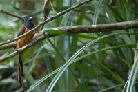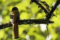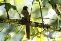 O ileż trudniej fotografuje się trogony w Azji w porównaniu z fotografowaniem ich w Argentynie i na Kostaryce. Tam nie było łatwo, ale jak już udało się je znaleźć, to powstały zdjęcia. Pamiętam nasze próby znalezienia trogonów w Tajlandii. Szukaliśmy ich w górzystym terenie, wykorzystując ścieżki pomiędzy budynkami klasztoru mnichów buddyjskich. Dookoła rósł ciemny, gęsty las. Panowała taka cisza w klasztorze, że nie rozmawialiśmy, a otwieranie plecaka zamkiem suwakowym musiało być wykonane bardzo powoli, bo towarzyszył temu zbyt duży hałas. Podobno wówczas był tam trogon, ale ja go nie widziałem. Ptak siedział w tak ciemnej gęstwinie, tak daleko, że o zdjęciu nie mogło być mowy. Na Sri Lance wybraliśmy się do gęstego, wilgotnego lasu. W lesie zupełna cisza i ptasie pustkowie. Towarzyszyły nam za to licznie pijawki. W ciszy i skupieniu leśną dróżką idzie kilku fotografów z przewodnikiem i wypatruje trogonów. Podczas kilku godzin wyczekiwania udało się na chwilę zobaczyć samca i samicę trogona lankijskiego. Trzeba mieć do tego jeszcze szczęście, aby nie było przeszkód pomiędzy obiektywem a ptakiem, szybko ustawić obiektyw i wykonać zdjęcie. Jak widać w galerii, udało się wykonać dwa zdjęcia w ciągu całego popołudnia, ale jakże ważne dla mnie. Dodaję wreszcie na moją stronę pierwszą galerię trogona azjatyckiego, jedynego występującego na Sri Lance.