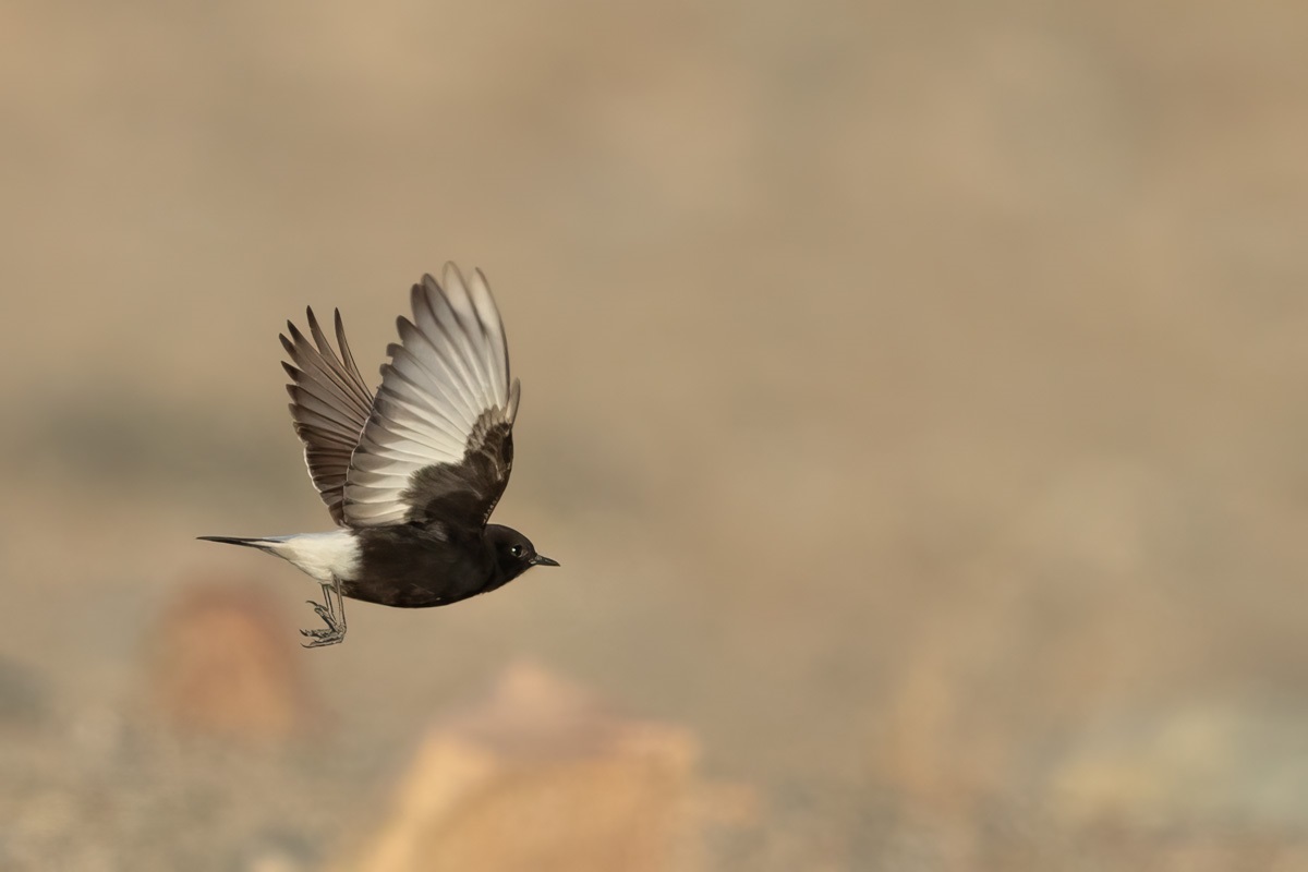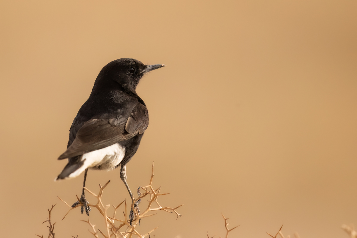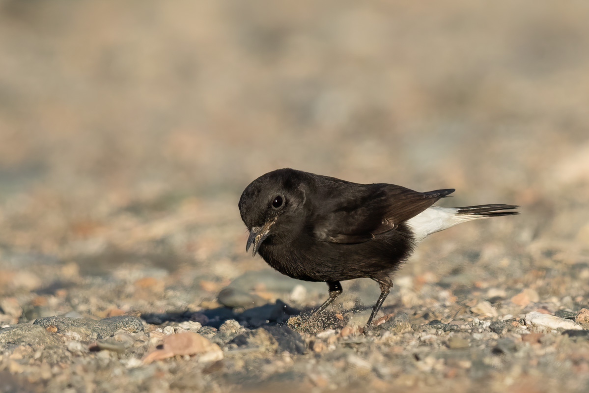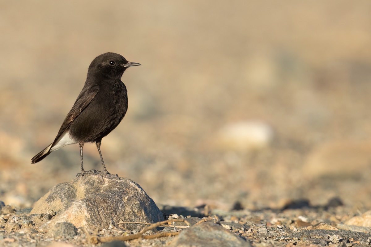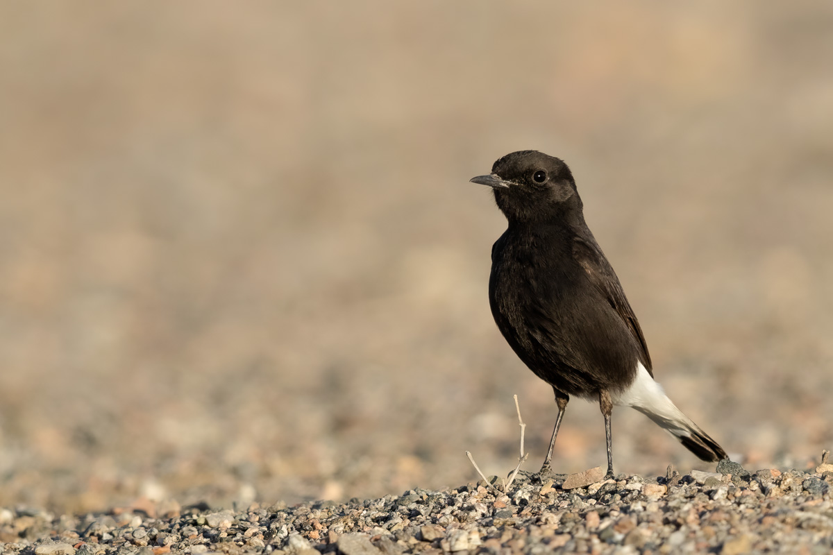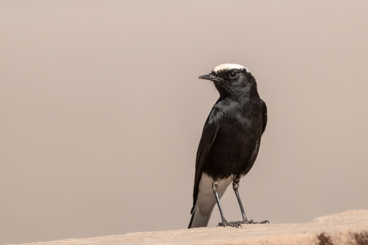 Po wykonaniu mojego pierwszego dokumentacyjnego zdjęcia białorzytki saharyjskiej w Jordanii oczywiście chciałem poprawić tą galerię, uzupełnić nowymi lepszymi zdjęciami. Jak się okazało nie było to takie proste w Egipcie. Wszędzie, gdzie to możliwe rozglądałem się, poszukiwałem tego ptaka. W tym czasie sfotografowałem białorzytkę srokatą, arabską i pustynną. Ale jak się nie próbuje to się nie uda. Kilku kilometrowy spacer po pustynnym terenie przyniósł efekt i to w ostatni dzień, na dwie godziny przed zachodem słońca. Trochę już zrezygnowany pomyślałem, że znów nie tym razem, gdy nagle pojawiły się dwa ptaki: białorzytka pustynna i saharyjska. Po ich krótkiej sprzeczce ptaki się rozdzieliły, a ja oczywiście poszedłem w kierunku białorzytki saharyjskiej. Ptak jednak nie pozwalał na skrócenie odległości pomiędzy nami. Dystans kilkudziesięciu metrów to odległość którą ustalił. Po kilkunastu próbach odpuściłem i usiadłem na ziemi. Chyba mój wysiłek doceniła białorzytka, bo na trzy podloty w moim kierunku, tak zmniejszyła dystans, że przez chwilę była w pełnym kadrze. To chyba nagroda za tą moją determinację i wytrwałość. Niestety to nadal osobnik z upierzeniem pierwszego roku, bo nie ma tak charakterystycznej białej czapeczki no i ptak się nie odzywał, więc nie ma ścieżki dźwiękowej. Ale progres w galerii jest ogromny i zniknęła wreszcie galeria zaliczana do fauny Polski o statusie dokumentacyjnej, a to dla mnie ważne.