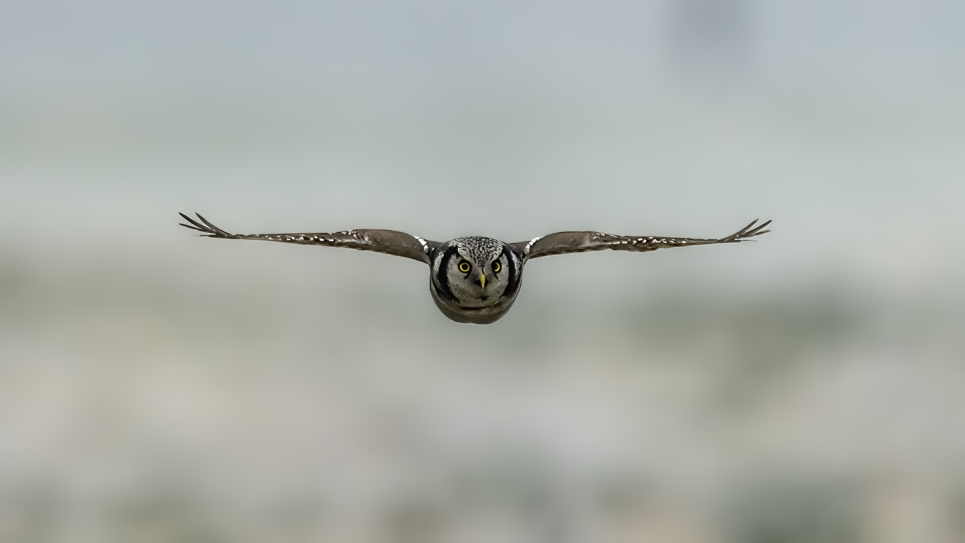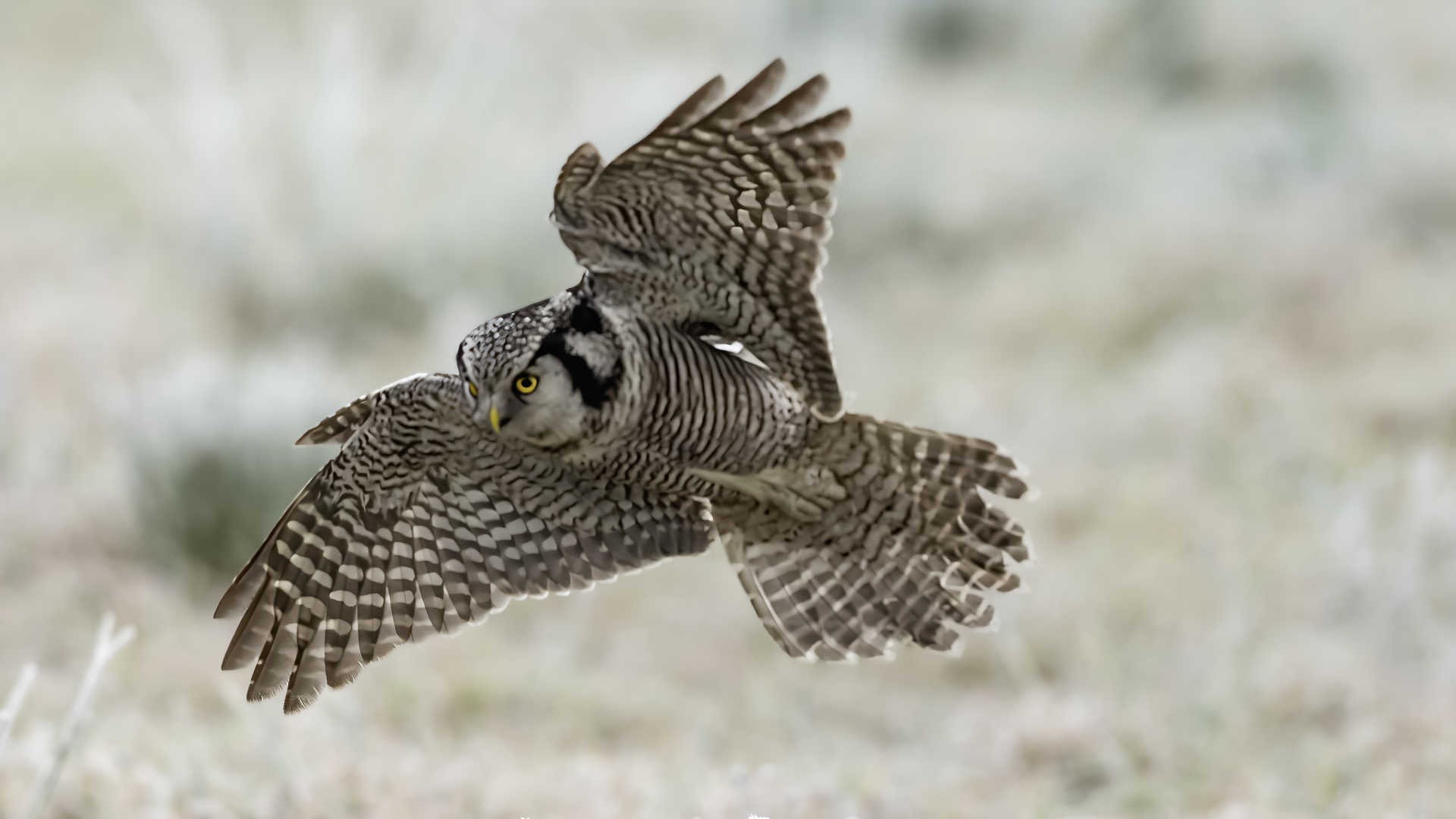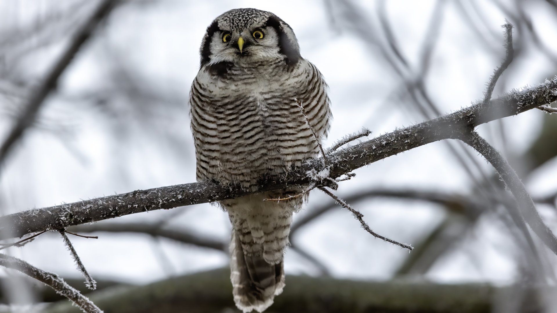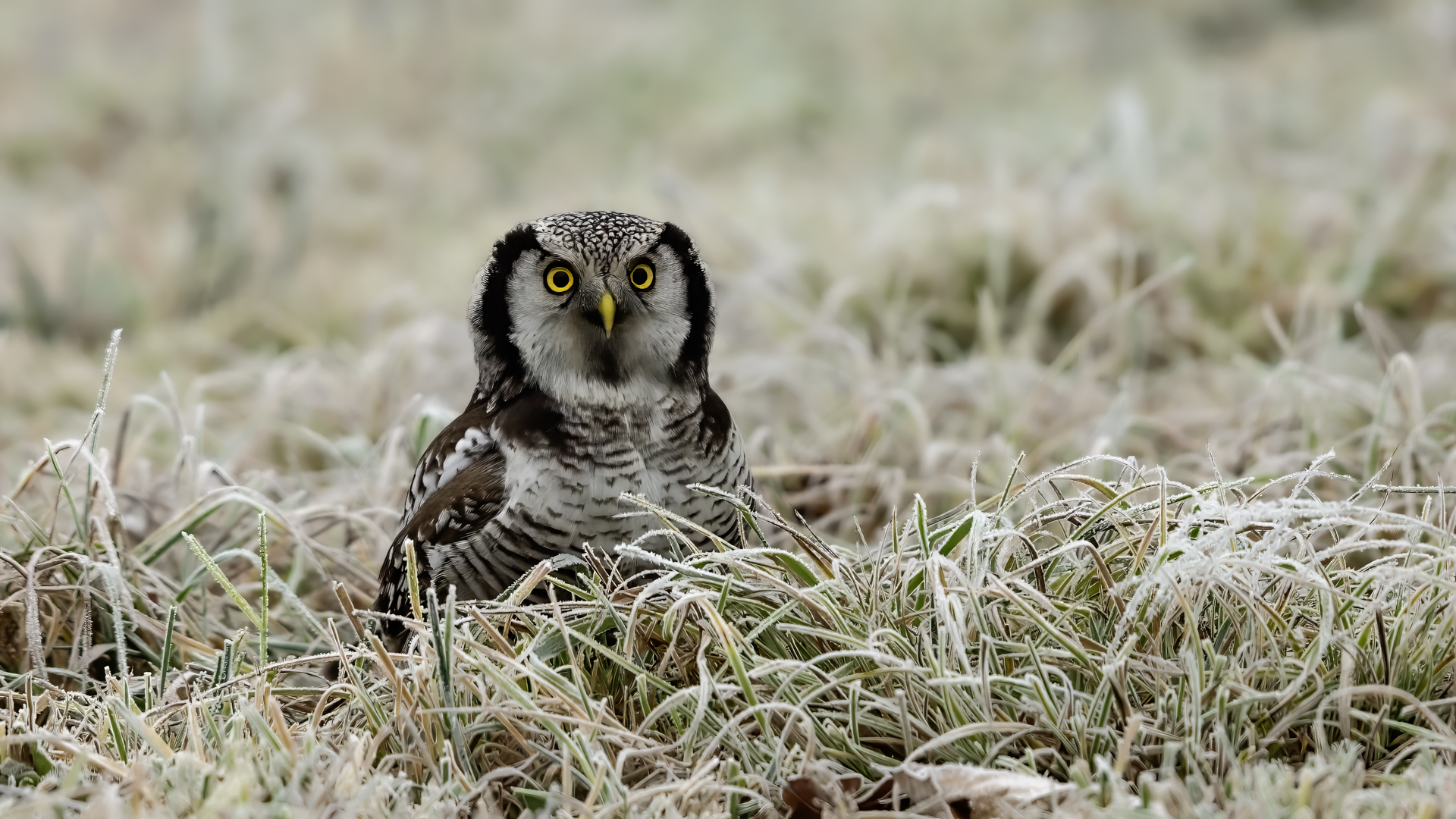 Przedstawiam Wam chyba najbardziej obfotografowanego ptaka w Polsce w ostatnim czasie (11/2013). I wcale mnie nie dziwi jego popularność i zainteresowanie związane z jego przybyciem. Zwłaszcza, że to wielka rzadkość obserwowanie przedstawiciela tego gatunku w Polsce i to jeszcze w tak łatwy sposób. Sowa ma wręcz swoje miejsce „dyżurne” w miejscowości Lutobork, gdzie zawsze można ją spotkać i bez trudu sfotografować. Oczywiście fotografia fotografii nierówna, ale na mojej sesji, a właściwie naszej, zabrakło światła (pozdrawiam Pawła i Łukasza, z którymi w miłej atmosferze, mimo mrozu, miałem przyjemność fotografować tego wspaniałego ptaka). Zdjęcia w mroźny poranek mają swój klimat, ale prognozy w tym dniu zupełnie się nie sprawdziły. Miał być piękny wschód słońca, a okazało się, że słońce nie wyjrzało nawet na chwilę. Przynajmniej w godzinach rannych. Wiele zdjęć nieostrych i brakowało im tej ciepłej barwy, nie mówiąc już o możliwości zastosowania krótszych czasów naświetlania i zrobienia jeszcze lepszych, dynamicznych ujęć. Zdumiewającym jest, że sowa zachowywała się wręcz jak oswojona, zupełnie lekceważąc przejeżdżające samochody, czy przechodzących ludzi. Raz nawet przeleciała około metra ode mnie. Niesamowite wrażenie, kiedy tak piękny i rzadki ptak jest na wyciągnięcie ręki i czuć na twarzy wir powietrza spowodowany jej lotem. Wróble zachowują większy dystans do nas. Ale nie sowy. Tu analogia do fotografowanej niedawno sóweczki i jej zachowań. Na niektórych zdjęciach sowa jest w zurbanizowanym otoczeniu, ale właśnie w takim ją sfotografowałem. W swoich galeriach zawsze staram się oddać naturalne środowisko fotografowanego zwierzęcia zamieszczając w tym celu nieraz duże ilości zdjęć (drop, bielik, myszołów). Wracając jednak do sesji i warunków oświetleniowych. Szkoda, że tak wypadło bo kwintesencją fotografii tak szybkiego ptaka drapieżnego jest dynamiczne jego ujęcie w locie. Zamieszczam kilka zdjęć, ale zdecydowana większość powędrowała do kosza. Szybkość jej lotu, brak światła i panujący mróz obniżający refleks, nie sprzyjał wykonaniu oddających w pełni urok tego ptaka. Niemniej jednak powstało kilka zdjęć takich, które dokumentują moje pierwsze spotkanie z tym gatunkiem. Sowa jarzębata zamieszkuje północną część Euroazji i Ameryki Północnej. Jej waga to koło 300-350 gramów, przy rozpiętości skrzydeł około 80 cm. Pozuje już ponad miesiąc i widać, że jest w dobrej kondycji. Kto wie, może zostanie już na stałe? Byłaby pięknym i ciekawym uzupełnieniem rodzimych naszych gatunków. Tak więc galeria powstała niestety bez własnego nagrania dźwięku sowy jarzębatej. Cały, krótki czas poświęcony był na sesję fotograficzną sowy, która pod względem akustycznym nie współpracowała. Była praktycznie niema. Kilka cichych dźwięków i tak nie utworzyłoby ciekawego nagrania. Zapraszam jednak do mojej galerii fotograficznej sowy jarzębatej . . .