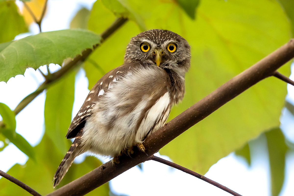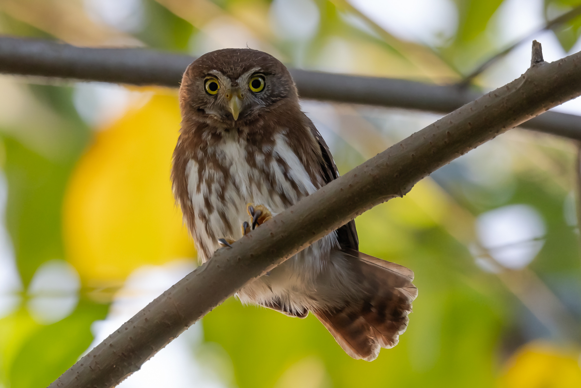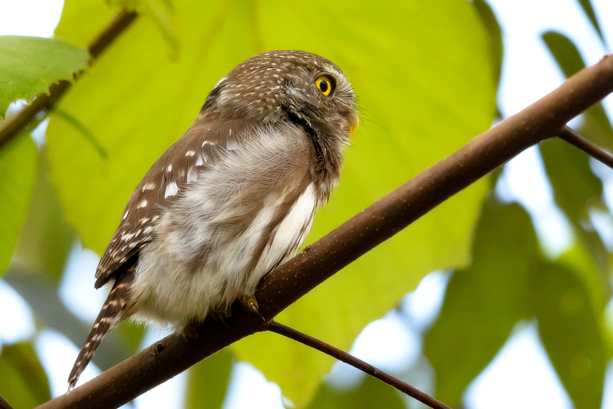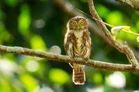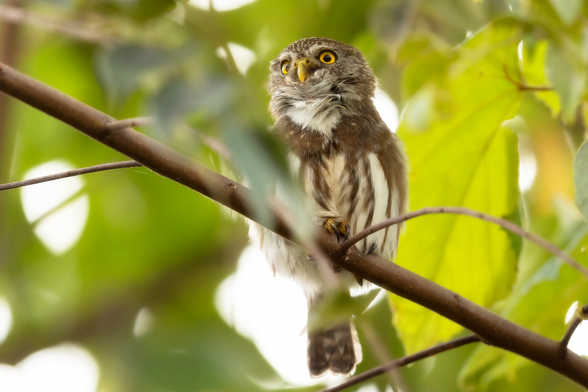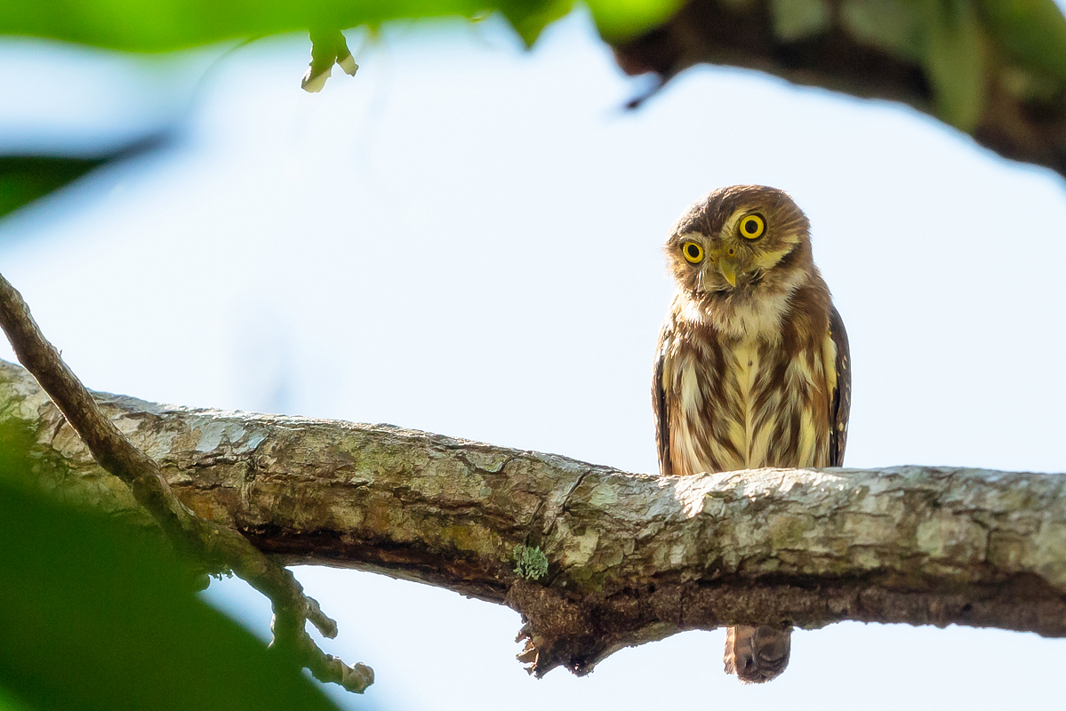 Sóweczka kreskowana mieszka na Kostaryce w zgoła odmiennym otoczeniu niż nasza sóweczka europejska. Zatrzymujemy samochód około południa na nieutwardzonej drodze pomiędzy luźną zabudową mieszkaniową. Dookoła pojedyncze domy i sporej wielkości drzewa. Temperatura blisko 30 stopni, duża wilgotność. Przewodnik chodzi wypatrując sów w koronach drzew. Nagle pokazuje miejsce w którym przebywa sowa. Powstają pierwsze zdjęcia. Po chwili przyleciała druga. Na szczęście zmieniały miejsce przesiadywania i powstają różne ujęcia, nie tylko takie z niebem w tle, co się często tym razem przytrafiało. Na pierwszy rzut oka jest bardzo podobna pod względem wielkości i zachowania do naszej, polskiej sóweczki. Spośród kilkudziesięciu gatunków sóweczki, trzecia trafia na moja stronę.