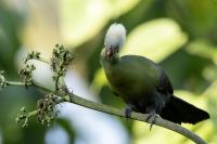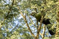 Tekst przewodni dodałem do turaka etiopskiego przepięknego etiopskiego endemita. Udało się wykonać kilka ciekawych zdjęć no i nagrać głos ptaka. Etiopczycy jeszcze nie wybrali swojego ptasiego symbolu narodowego i mam nadzieję, że jak to zrobią to będzie właśnie on ptakiem narodowym Etiopii, bo żyje tylko i wyłącznie tam i patrząc na mapę Etiopii na niewielkim już teraz obszarze. Ze sfotografowaniem turaka nie było łatwo. Z jednej strony długa nieutwardzona droga, z drugiej strony utrudnienia w fotografowaniu przez lokalną ludność. Zatrzymaliśmy samochód przy takiej drodze i nagle pojawia się kilkunastu mężczyzn z zamiarem pobrania opłaty za fotografowanie. Decyzja – jedziemy dalej. Kilometr dwa dalej podobna sytuacja i podobna decyzja. Atmosfera stała się dość napięta, bo po trudach podróży, być tak blisko turaka etiopskiego i nie mieć zdjęć to istna katastrofa fotograficzna. Na szczęście w następnym miejscu lokalna ludność była bardziej zainteresowana tym, że ktoś przyjechał i chce fotografować turaki niż chęcią wyłudzenia haraczu. Wychodzimy z samochodu, po chwili poszukiwania jest „etiopski książę”. Powstają wreszcie pierwsze zdjęcia tego przepięknego ptaka. Pomyślałem, że teraz czas na nagranie głosu turaka. Zaabsorbowany fotografowaniem, nie zwracałem uwagi na ciche rozmowy towarzyszących nam gapiów za plecami. Ale bardzo uciążliwe dla jakości nagrania. Wyciągam mikrofon odwracam się i ku mojemu zdumieniu za plecami mieliśmy już około 50 młodych mężczyzn. Nie było wśród nich kobiet, pewnie miały jakieś inne ważniejsze sprawy na głowie. Przyłożyłem palec wskazujący do ust, aby zrozumieli, że proszę o zupełną ciszę. I tu podziękowania dla obserwatorów, w kilka sekund nawzajem się uciszyli, tak że zapanowała względna cisza, zakłócana jedynie odgłosami z pobliskiej drogi- powstaje nagranie dźwięku. Szkoda, że nie powstał z tego krótki film. Kilkadziesiąt osób stoi wśród drzew i krzewów, w dole przepływa mały potok i wszyscy zasłuchani w głos turaka etiopskiego- posłuchajcie sami.