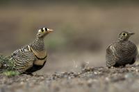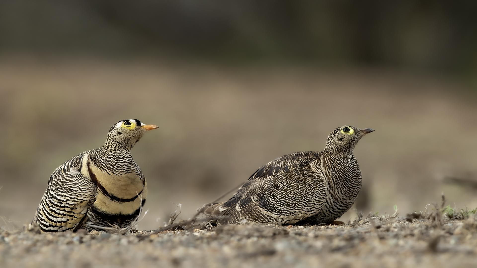 O tym potrójnym szczęściu trzeba napisać w informacjach tego gatunku, jak powstała galeria stepówki prążkowanej. Pierwsze szczęście to to, że Tadeuszowi udało się je wypatrzeć stepówki, z jadącego samochodu, siedziały przy drodze. W sumie, może to nie szczęście, a może po prostu wprawne, doświadczone Tadeuszowe oko spowodowało, że zatrzymaliśmy samochód. Jedno jest pewne, gdyby nie Tadeusz, zdjęć by nie było- podziękowania! Drugie szczęście to same ptaki. Oby każde inne ptaki tak współpracowały jak te stepówki. Samiec i samica zaakceptowały naszą obecność i odległość kilku metrów. Powstało wiele zdjęć. Inne stepówki nie pozwoliły się zbliżyć na kilkanaście metrów i powstały zdjęcia głównie w locie. Tadeuszowe stepówki prążkowane pozowały bez reszty i zrobiliśmy setki zdjęć. Trzecie szczęście to światło. Było idealne. Zdjęcia tylko kadrować i do galerii. O takiej kumulacji można tylko pomarzyć- stepówka trafia do nowości i do moich ulubionych galerii.