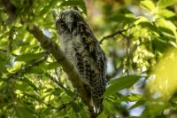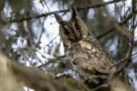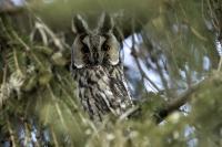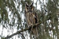Wreszcie po kilku latach drugie moje spotkanie z uszatkami. Scenariusz powstania zdjęć bardzo podobny do tego sprzed lat. Tym razem podziękowania dla Roberta za podpowiedź, jakie współrzędne trzeba wpisać do nawigacji. I tak jak przed laty - zdziwienie przechodzących ludzi, widząc statywy i długie obiektywy: „co też oni tam fotografują?”. Podobno sów w tym miejscu widywano nawet kilkanaście. Nam udało się zaobserwować ich 5. Spotkanie z sowami zawsze jest niesamowite. Te wielkie rubinowe oczy spokojnie obserwujące nasze próby znalezienia miejsca, z którego da się zrobić zdjęcie bez kolizji z gałązkami. O to było najtrudniej. Sowy siedzące w wyższych partiach drzewa były w ogóle poza zasięgiem naszych obiektywów. Perspektywa nie taka jak trzeba i liczne gałązki powodowały, że tylko przez lornetkę widać było kontur ptaka. Ale należy stwierdzić mimo wszystko, że wyjazd trzeba zaliczyć do bardzo udanych. Galeria dotąd dokumentacyjna, dość monotonna zmieniła swą zawartość na tyle, że zmieniła status na dobrą. Ze starej galerii pozostało jedno zdjęcie. Takie spotkanie trzeba odnotować w nowościach - przecież to sowa, a nie kolejny wróblak!