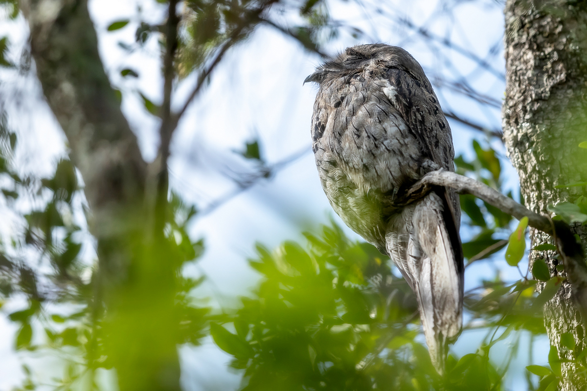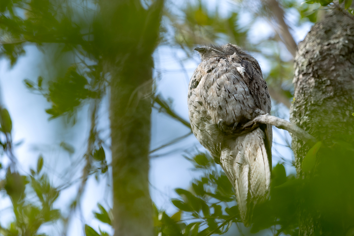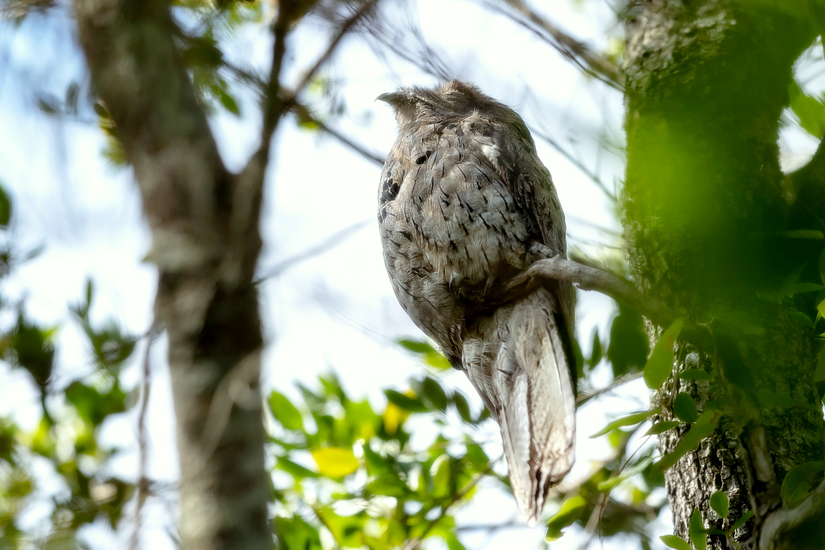 Robi wrażenie i szokuje jego wielkość. Najbardziej kojarzy się z lelkami, ale te mają do 100 gramów. Nocolot waży niespełna 300 gramów. Zamarła w bezruchu sylwetka to jedno, ale przesiadywanie na słońcu cały dzień to niesamowite (ponad 30 C). Na szczęście w tym dniu pojawiały się chmury i powstały mniej kontrastowe zdjęcia. Nocolot się praktycznie nie ruszył, jakakolwiek próba zbliżenia mogła się zakończyć jego odlotem, to na tym pamiątkowym zdjęciu poprzestałem. Oczywiście bez wskazania naszego przewodnika nie powstałoby prezentowane zdjęcie, bo na wielokilometrowej trasie było jedno takie stanowisko.