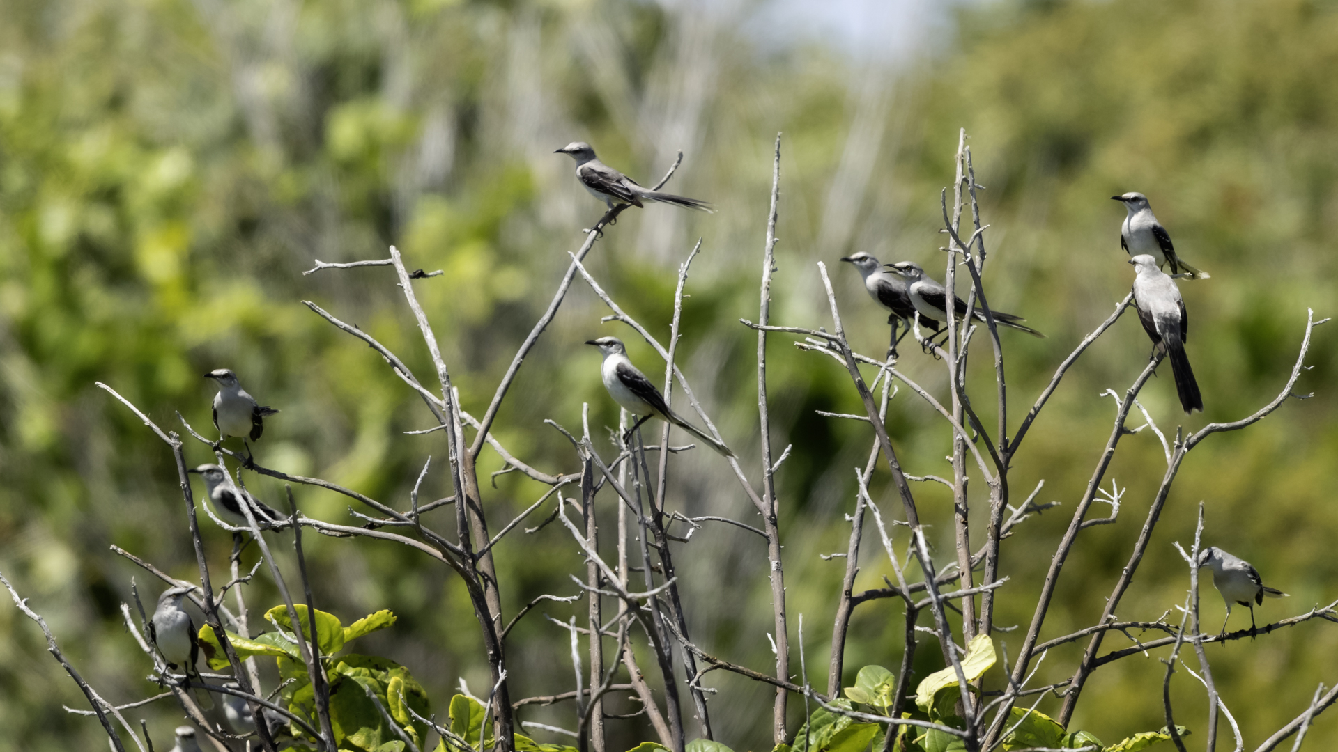 1.Wodnik karoliński. 2.Biegus alaskański. 3.Sieweczka blada. 4.Kormoran rogaty. 5.Klinosterek krzywodzioby. 6.Dławigad amerykański. 7.Szlamnik duży. 8.Lasówka magnoliowa. 9. Przedrzeźniacz czarny.