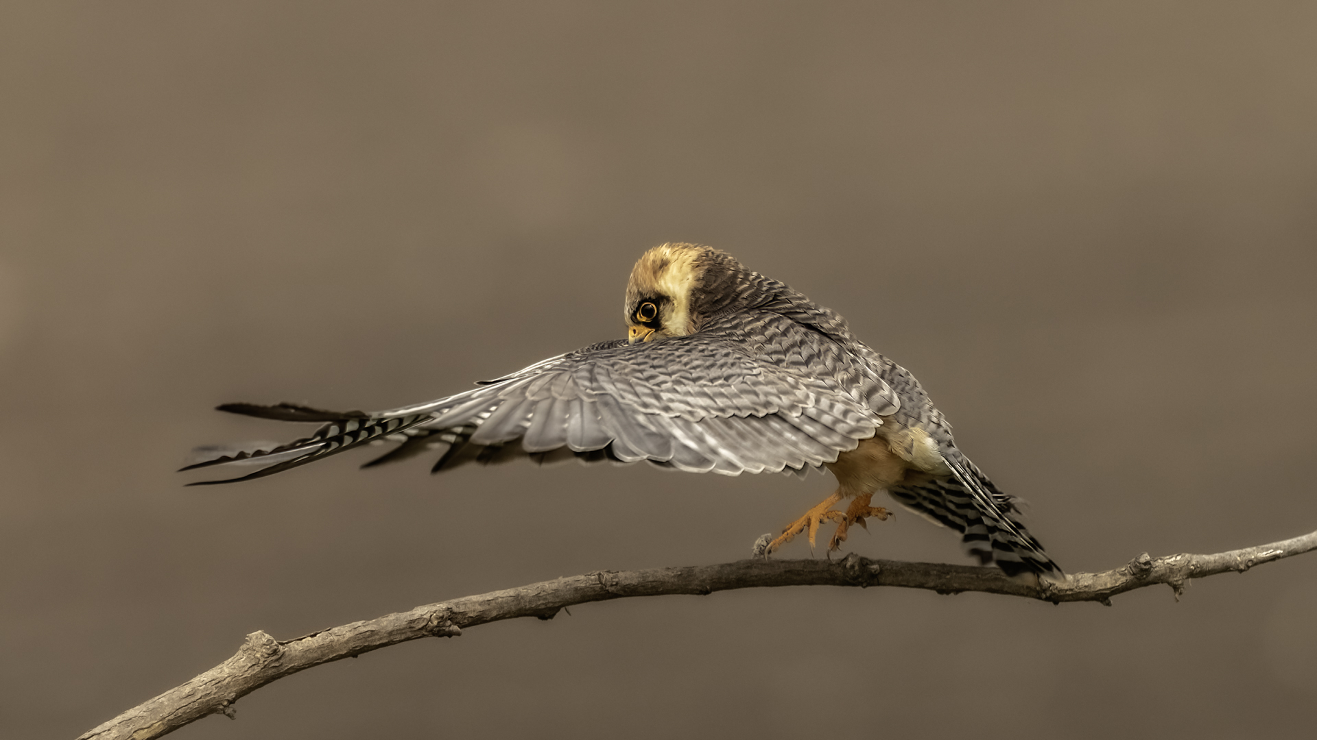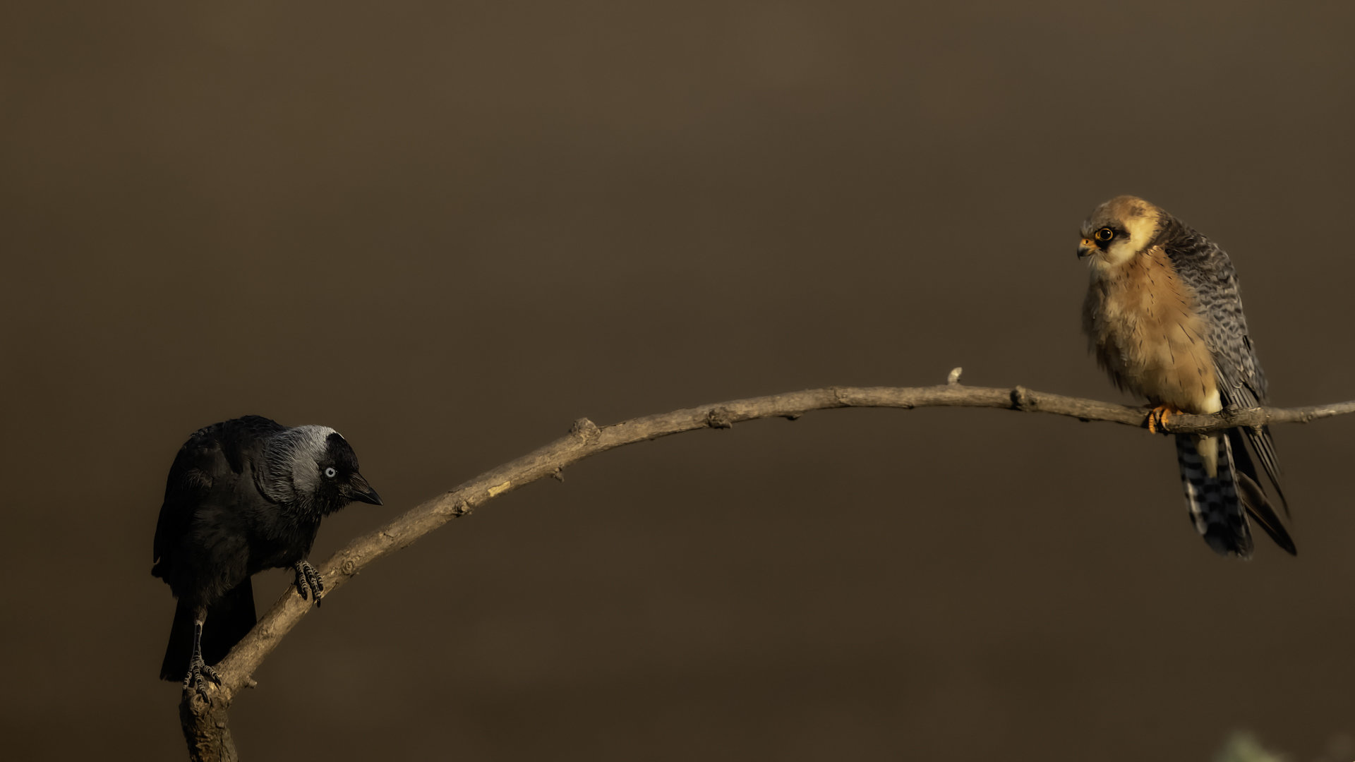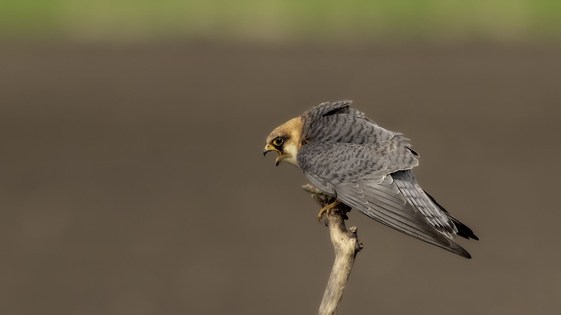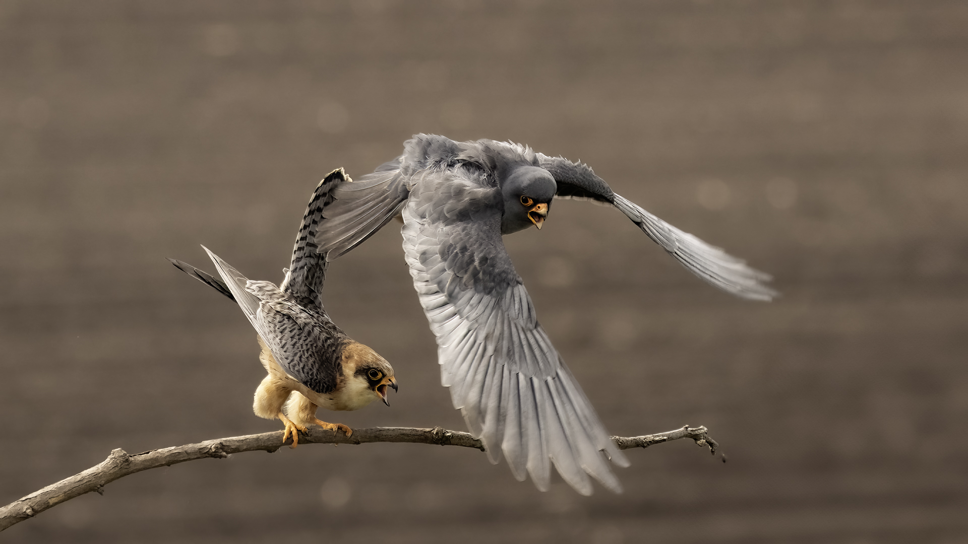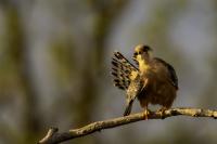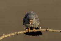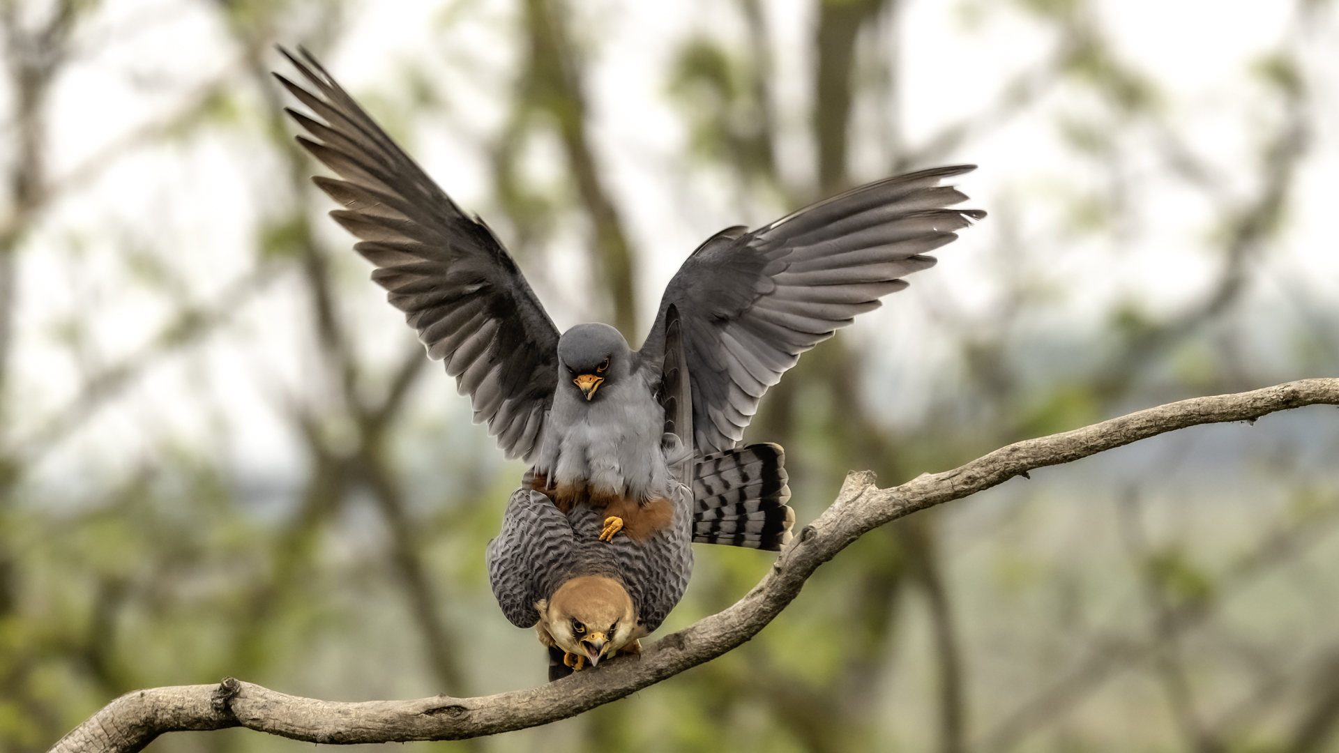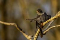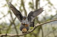 Kobczyk wreszcie trafia do mojej galerii!  Wreszcie, bo od lat był w moich fotograficznych planach, ale w Polsce trudno o dobre zdjęcia tego przepięknego sokoła. W naszym kraju nie gniazduje, a mamy jedynie przyjemność go obserwować podczas przelotów. Prezentowane zdjęcia zostały wykonane na Węgrzech. Trzeba oddać naszym węgierskim organizatorom, że stworzyli warunki do obserwacji i fotografowania kobczyków. Czatownie kobczykowe to usytuowane na wysokości kilku metrów pomieszczenia, gdzie w odległości kilku metrów od fotografujących znajdują się budki lęgowe kobczyków, pustułek i kawek. W odległości około 10-ciu metrów od jednej z czatowni jest też budka lęgowa pójdźki. To dość  niesamowite taka mała kolonia kobczyków, pustułek, kawek i pójdźki, a w środku nich zakamuflowani fotografowie. Spędziłem około 30 -stu godzin wśród kobczyków i można było obserwować ich zaloty, zachowania godowe no i bójki o budkę lęgową, pomiędzy nimi, a kawkami czy pustułkami. Kobczyki z nich są najmniejsze, ale bez walk się nie obyło. Próbowały swoich sił i możliwości na tyle determinująco, że po jednej z bójek z kawkami, myślałem, że samiec kobczyka nie wyjdzie z tego cało. Początek maja był okresem zalotów i kopulacji kobczyków. O zdjęcia tych ptasich zbliżeń nie było trudno, pod warunkiem, że ptaki nie były odwrócone tyłem do nas. Dodałem też nagranie ścieżki dźwiękowej kobczyków o które nie było trudno. Samice niemal ciągle wydają głosy, takie piszczące, powtarzające się. Samce podobnie, ale czasami wydają też głos przypominający głos kretogłowa. Samice cały czas organizowały samcom czas. Siedzący na patyku samiec, często był przeganiany przez samicę, aby zajął się polowaniem. Po zrzuceniu z gałązki udawał się na polowanie. Po jakimś czasie wracał z drobnym gryzoniem lub większym owadem. Samica natychmiast odbierała upolowaną zdobycz i rozpoczęła konsumpcję. Tu następowała chwila ciszy, samiec mógł odpocząć podczas jej posiłku no i ona sama nie wydawała dźwięków. Po zjedzeniu natychmiast siadała na ulubionej gałązce w dość charakterystyczny sposób pokazujący samcowi, że jest gotowa do kopulacji. Do tego oczywiście charakterystyczny piskliwy dźwięk no i samiec nie ma wyjścia, podlatuje do samicy i rozpoczyna się kopulacja. I tak można rzec przez większość dnia. O te statyczne zdjęcia ptaków siedzących na gałązkach, czy kopulujących nie było problemu. Te dynamiczne w locie to już było wyzwanie. Sokoły, jak to sokoły, potrafią bardzo dynamicznie się przemieszczać. To stanowiło pierwszą trudność zrobienia zdjęć ptaków w locie. Druga to szyba, a właściwie lustro dzielące nas od ptaków. Wprawdzie jakość szyby nie była najgorsza, ale spowalniała autofocusa no i zdjęcia wykonywane pod znacznym katem z reguły były do wyrzucenia. Z setek prób udało się jednak kilka zdjęć pokazujące piękną sylwetkę sokoła w locie. Takie musiały powstać-przecież za to je podziwiamy!