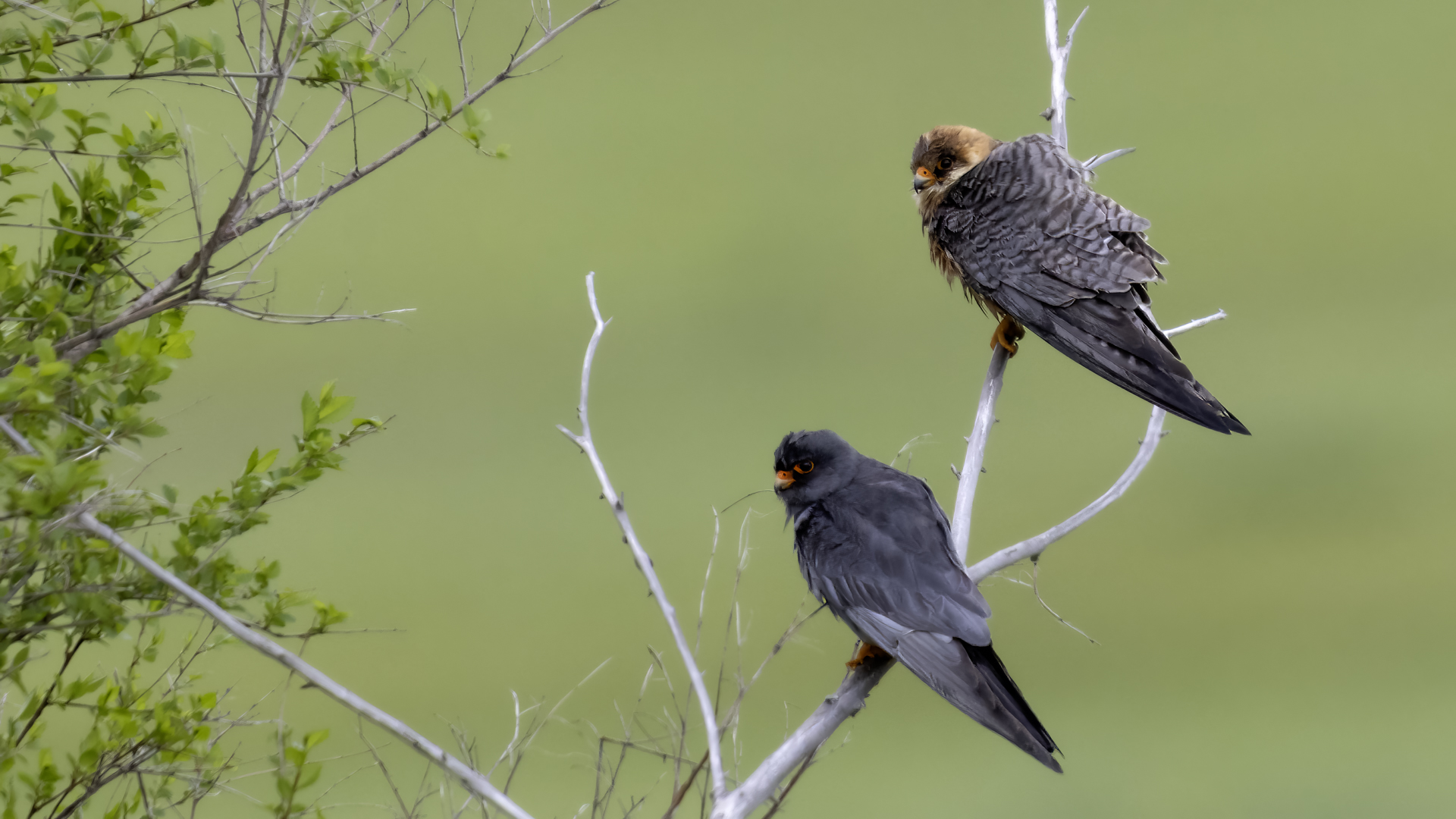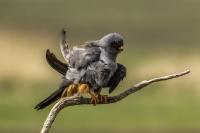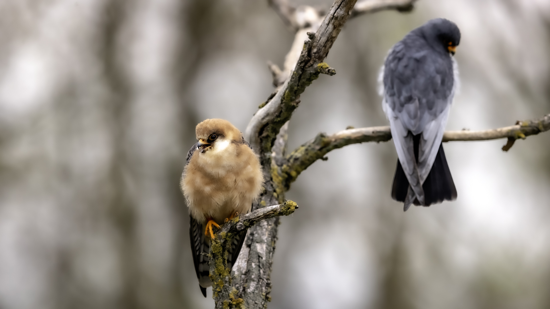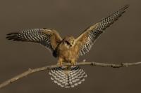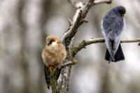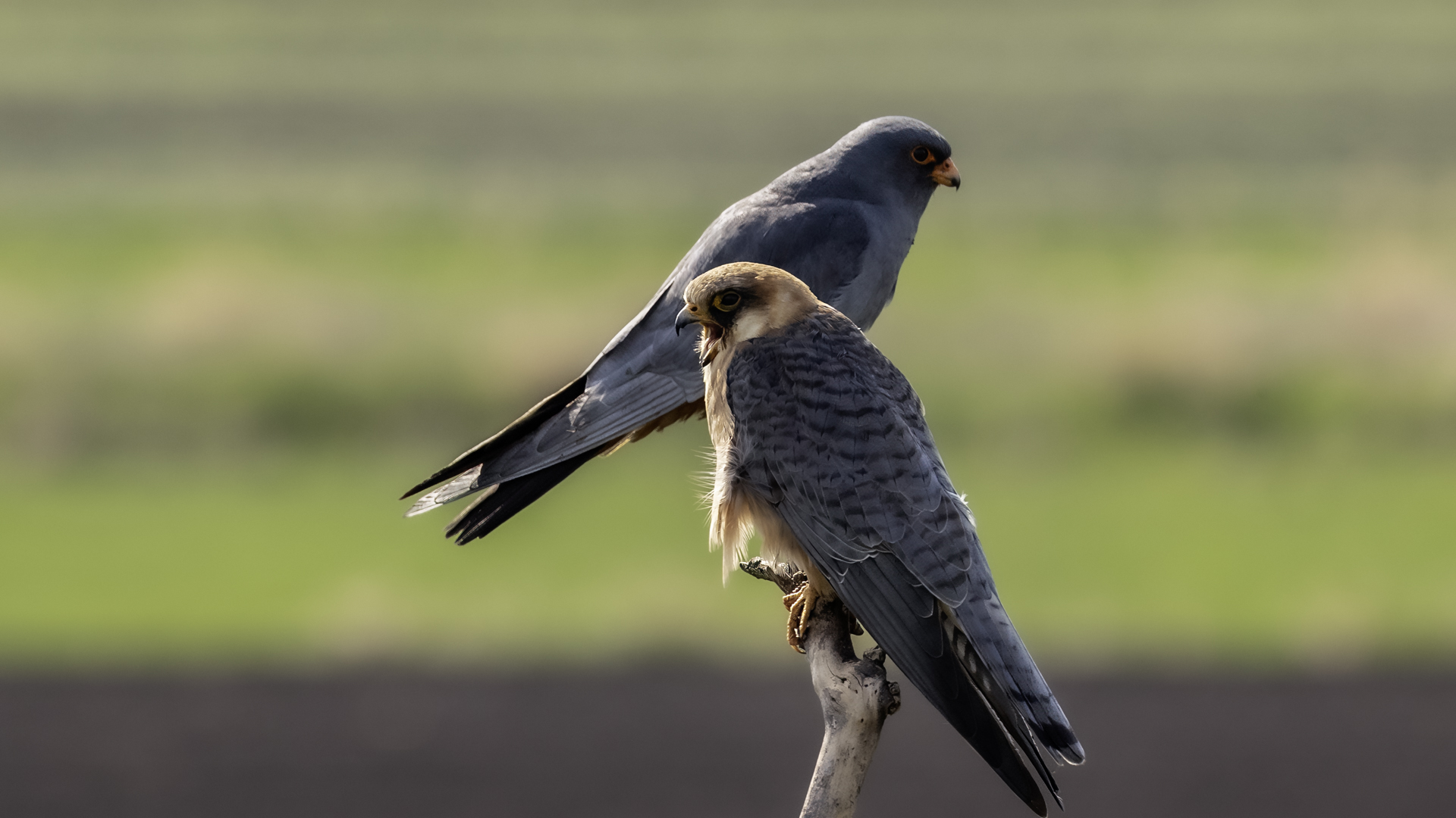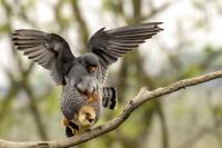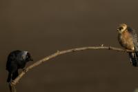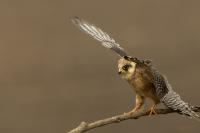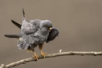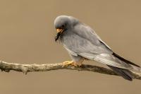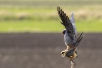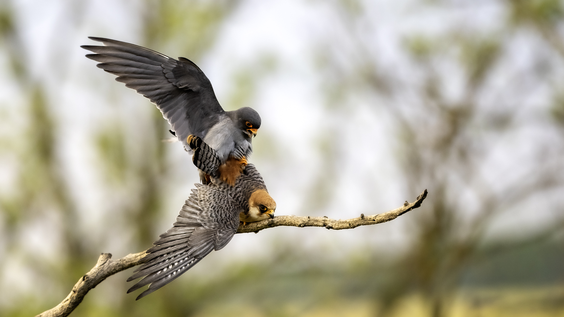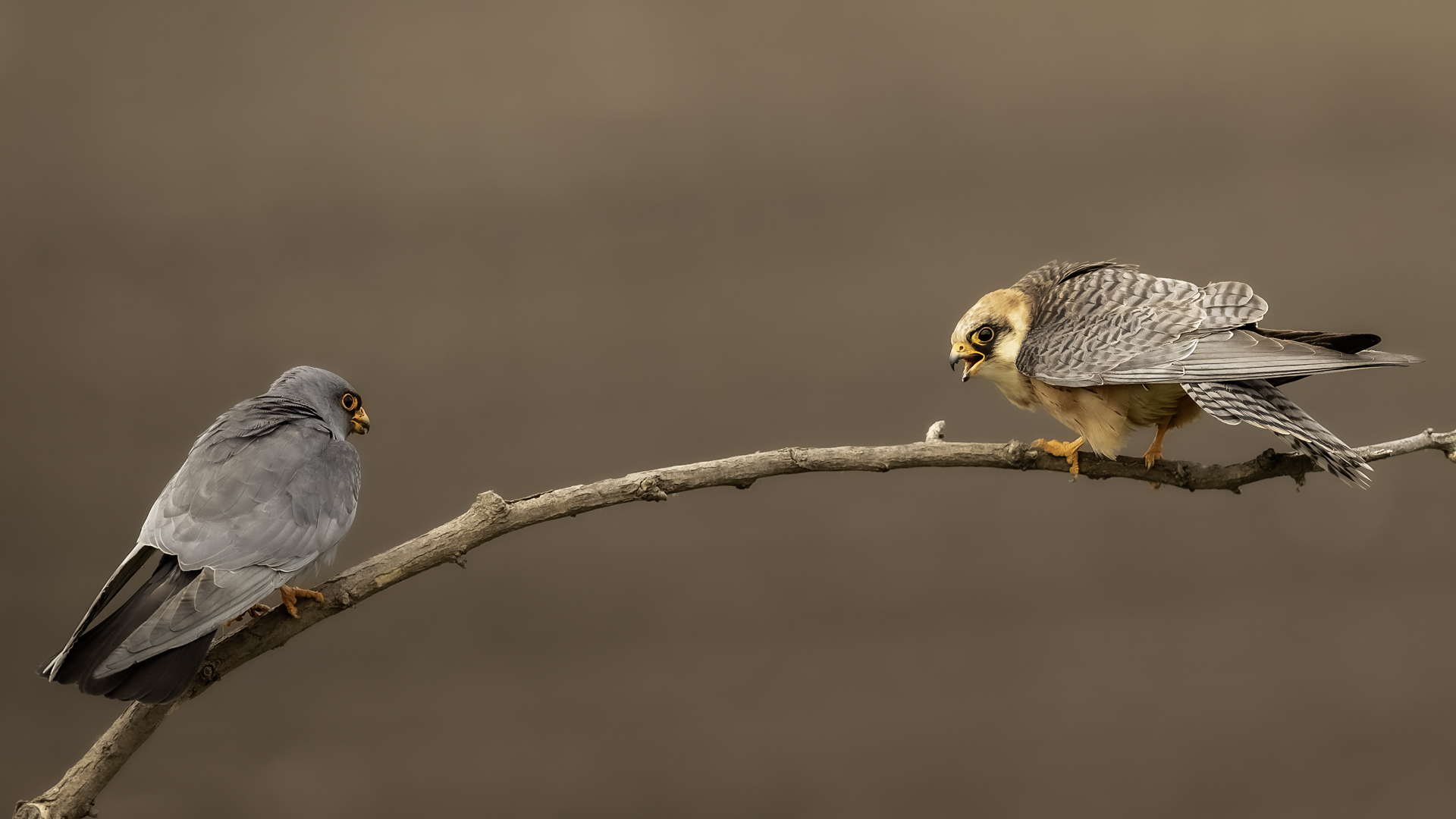 Kobczyk wreszcie trafia do mojej galerii!  Wreszcie, bo od lat był w moich fotograficznych planach, ale w Polsce trudno o dobre zdjęcia tego przepięknego sokoła. W naszym kraju nie gniazduje, a mamy jedynie przyjemność go obserwować podczas przelotów. Prezentowane zdjęcia zostały wykonane na Węgrzech. Trzeba oddać naszym węgierskim organizatorom, że stworzyli warunki do obserwacji i fotografowania kobczyków. Czatownie kobczykowe to usytuowane na wysokości kilku metrów pomieszczenia, gdzie w odległości kilku metrów od fotografujących znajdują się budki lęgowe kobczyków, pustułek i kawek. W odległości około 10-ciu metrów od jednej z czatowni jest też budka lęgowa pójdźki. To dość  niesamowite taka mała kolonia kobczyków, pustułek, kawek i pójdźki, a w środku nich zakamuflowani fotografowie. Spędziłem około 30 -stu godzin wśród kobczyków i można było obserwować ich zaloty, zachowania godowe no i bójki o budkę lęgową, pomiędzy nimi, a kawkami czy pustułkami. Kobczyki z nich są najmniejsze, ale bez walk się nie obyło. Próbowały swoich sił i możliwości na tyle determinująco, że po jednej z bójek z kawkami, myślałem, że samiec kobczyka nie wyjdzie z tego cało. Początek maja był okresem zalotów i kopulacji kobczyków. O zdjęcia tych ptasich zbliżeń nie było trudno, pod warunkiem, że ptaki nie były odwrócone tyłem do nas. Dodałem też nagranie ścieżki dźwiękowej kobczyków o które nie było trudno. Samice niemal ciągle wydają głosy, takie piszczące, powtarzające się. Samce podobnie, ale czasami wydają też głos przypominający głos kretogłowa. Samice cały czas organizowały samcom czas. Siedzący na patyku samiec, często był przeganiany przez samicę, aby zajął się polowaniem. Po zrzuceniu z gałązki udawał się na polowanie. Po jakimś czasie wracał z drobnym gryzoniem lub większym owadem. Samica natychmiast odbierała upolowaną zdobycz i rozpoczęła konsumpcję. Tu następowała chwila ciszy, samiec mógł odpocząć podczas jej posiłku no i ona sama nie wydawała dźwięków. Po zjedzeniu natychmiast siadała na ulubionej gałązce w dość charakterystyczny sposób pokazujący samcowi, że jest gotowa do kopulacji. Do tego oczywiście charakterystyczny piskliwy dźwięk no i samiec nie ma wyjścia, podlatuje do samicy i rozpoczyna się kopulacja. I tak można rzec przez większość dnia. O te statyczne zdjęcia ptaków siedzących na gałązkach, czy kopulujących nie było problemu. Te dynamiczne w locie to już było wyzwanie. Sokoły, jak to sokoły, potrafią bardzo dynamicznie się przemieszczać. To stanowiło pierwszą trudność zrobienia zdjęć ptaków w locie. Druga to szyba, a właściwie lustro dzielące nas od ptaków. Wprawdzie jakość szyby nie była najgorsza, ale spowalniała autofocusa no i zdjęcia wykonywane pod znacznym katem z reguły były do wyrzucenia. Z setek prób udało się jednak kilka zdjęć pokazujące piękną sylwetkę sokoła w locie. Takie musiały powstać-przecież za to je podziwiamy!