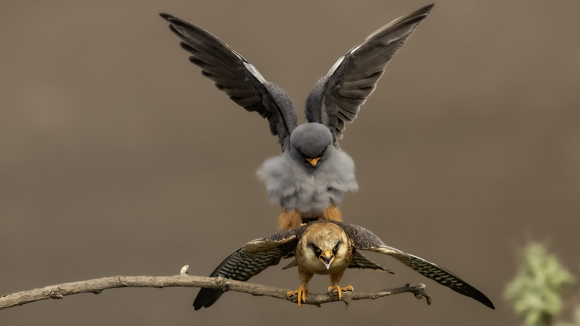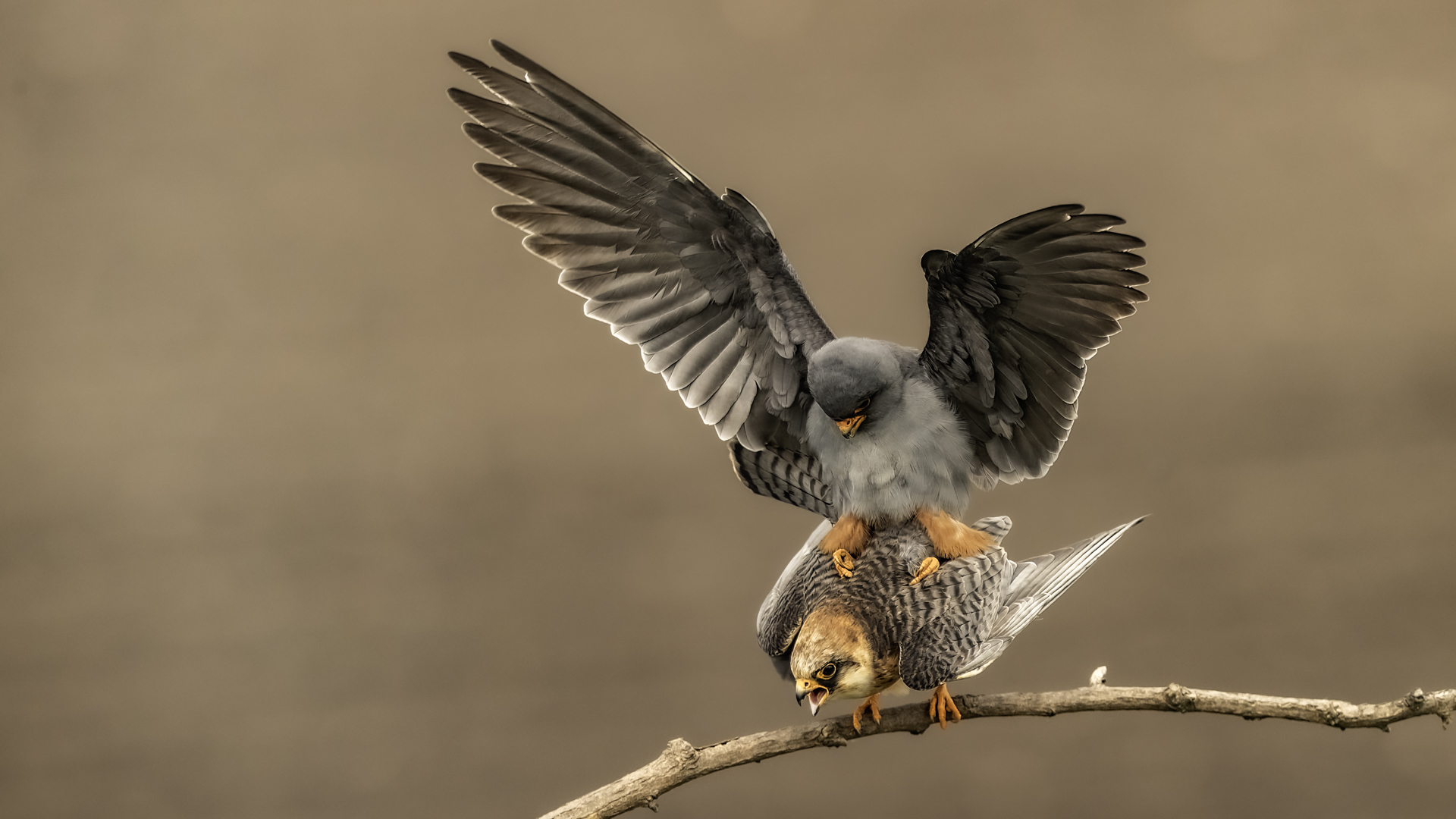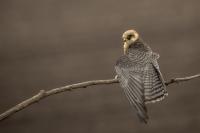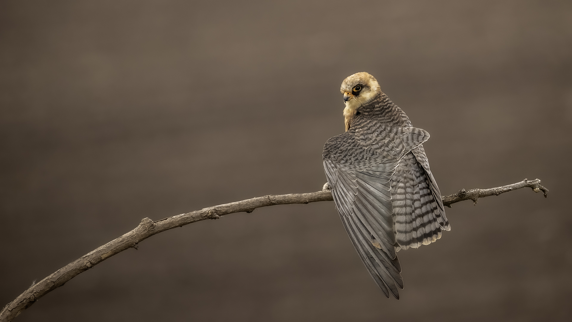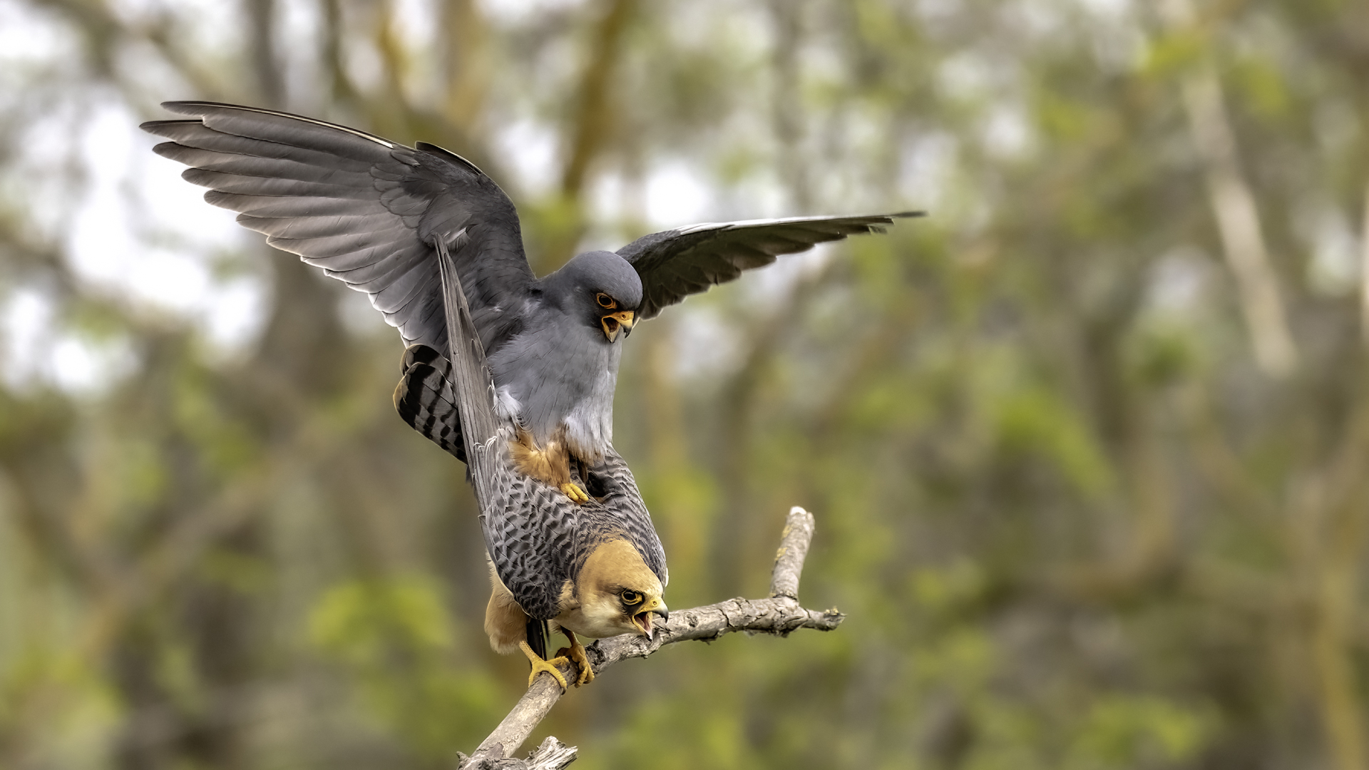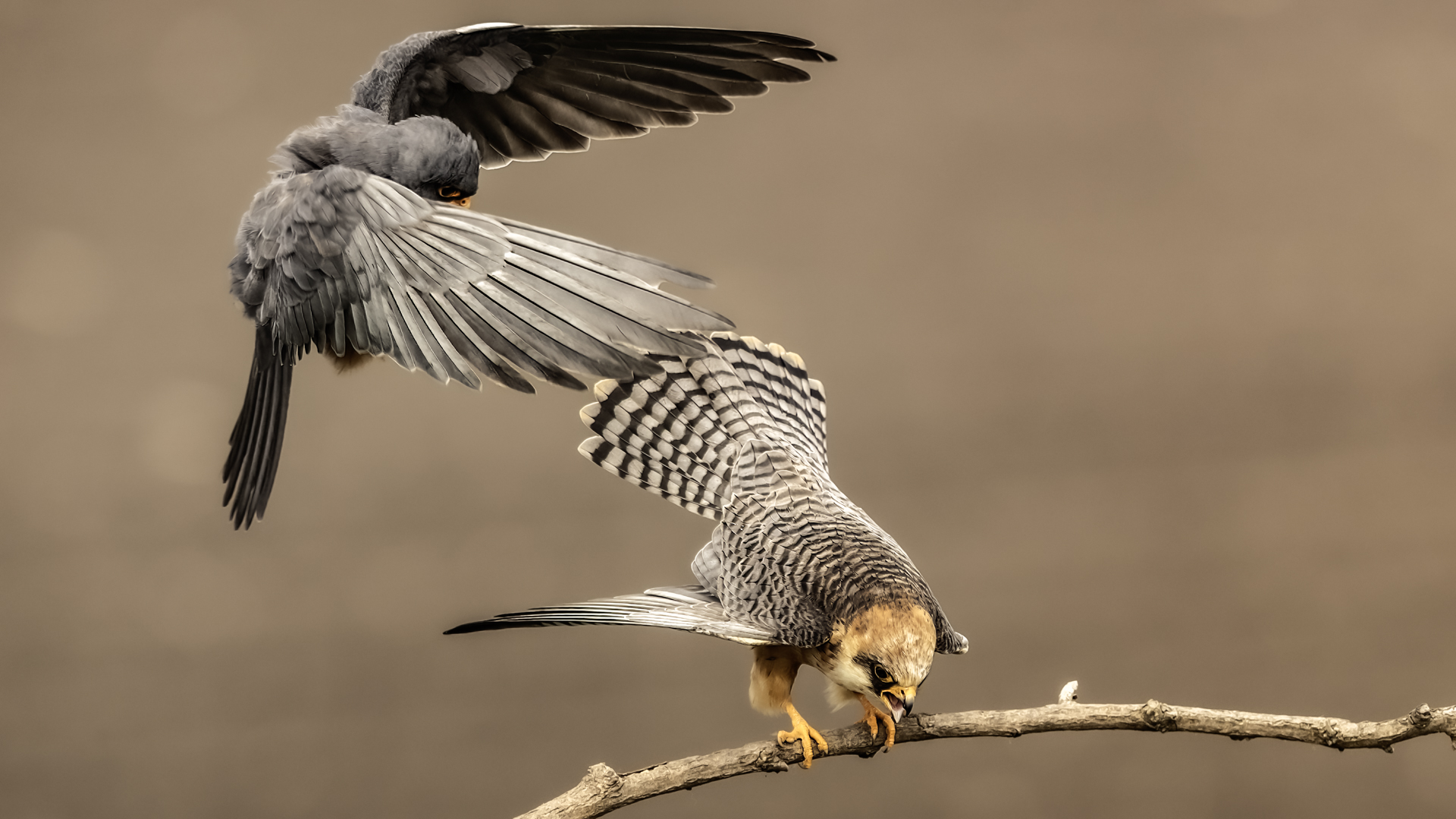 Kobczyk wreszcie trafia do mojej galerii!  Wreszcie, bo od lat był w moich fotograficznych planach, ale w Polsce trudno o dobre zdjęcia tego przepięknego sokoła. W naszym kraju nie gniazduje, a mamy jedynie przyjemność go obserwować podczas przelotów. Prezentowane zdjęcia zostały wykonane na Węgrzech. Trzeba oddać naszym węgierskim organizatorom, że stworzyli warunki do obserwacji i fotografowania kobczyków. Czatownie kobczykowe to usytuowane na wysokości kilku metrów pomieszczenia, gdzie w odległości kilku metrów od fotografujących znajdują się budki lęgowe kobczyków, pustułek i kawek. W odległości około 10-ciu metrów od jednej z czatowni jest też budka lęgowa pójdźki. To dość  niesamowite taka mała kolonia kobczyków, pustułek, kawek i pójdźki, a w środku nich zakamuflowani fotografowie. Spędziłem około 30 -stu godzin wśród kobczyków i można było obserwować ich zaloty, zachowania godowe no i bójki o budkę lęgową, pomiędzy nimi, a kawkami czy pustułkami. Kobczyki z nich są najmniejsze, ale bez walk się nie obyło. Próbowały swoich sił i możliwości na tyle determinująco, że po jednej z bójek z kawkami, myślałem, że samiec kobczyka nie wyjdzie z tego cało. Początek maja był okresem zalotów i kopulacji kobczyków. O zdjęcia tych ptasich zbliżeń nie było trudno, pod warunkiem, że ptaki nie były odwrócone tyłem do nas. Dodałem też nagranie ścieżki dźwiękowej kobczyków o które nie było trudno. Samice niemal ciągle wydają głosy, takie piszczące, powtarzające się. Samce podobnie, ale czasami wydają też głos przypominający głos kretogłowa. Samice cały czas organizowały samcom czas. Siedzący na patyku samiec, często był przeganiany przez samicę, aby zajął się polowaniem. Po zrzuceniu z gałązki udawał się na polowanie. Po jakimś czasie wracał z drobnym gryzoniem lub większym owadem. Samica natychmiast odbierała upolowaną zdobycz i rozpoczęła konsumpcję. Tu następowała chwila ciszy, samiec mógł odpocząć podczas jej posiłku no i ona sama nie wydawała dźwięków. Po zjedzeniu natychmiast siadała na ulubionej gałązce w dość charakterystyczny sposób pokazujący samcowi, że jest gotowa do kopulacji. Do tego oczywiście charakterystyczny piskliwy dźwięk no i samiec nie ma wyjścia, podlatuje do samicy i rozpoczyna się kopulacja. I tak można rzec przez większość dnia. O te statyczne zdjęcia ptaków siedzących na gałązkach, czy kopulujących nie było problemu. Te dynamiczne w locie to już było wyzwanie. Sokoły, jak to sokoły, potrafią bardzo dynamicznie się przemieszczać. To stanowiło pierwszą trudność zrobienia zdjęć ptaków w locie. Druga to szyba, a właściwie lustro dzielące nas od ptaków. Wprawdzie jakość szyby nie była najgorsza, ale spowalniała autofocusa no i zdjęcia wykonywane pod znacznym katem z reguły były do wyrzucenia. Z setek prób udało się jednak kilka zdjęć pokazujące piękną sylwetkę sokoła w locie. Takie musiały powstać-przecież za to je podziwiamy!