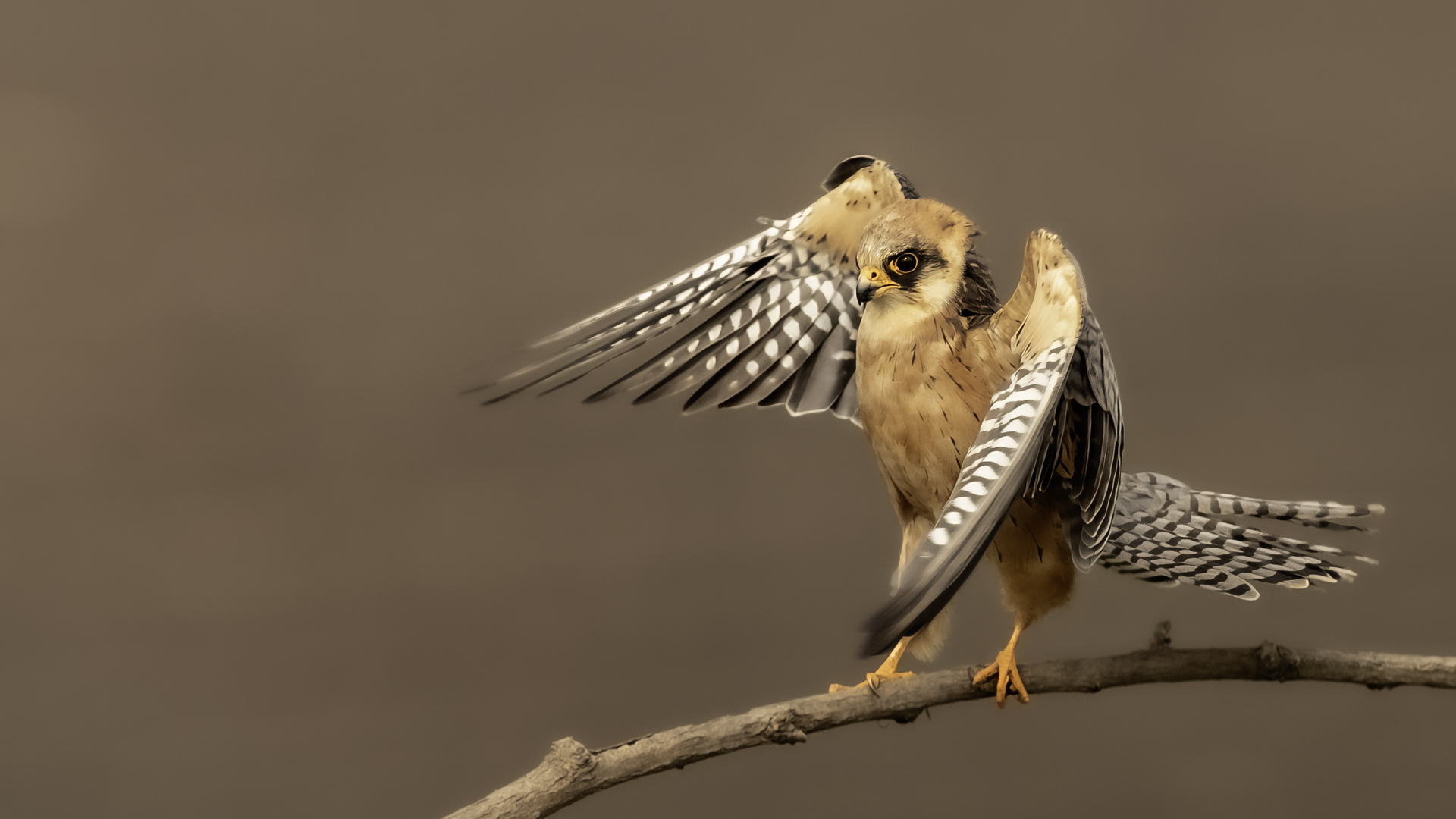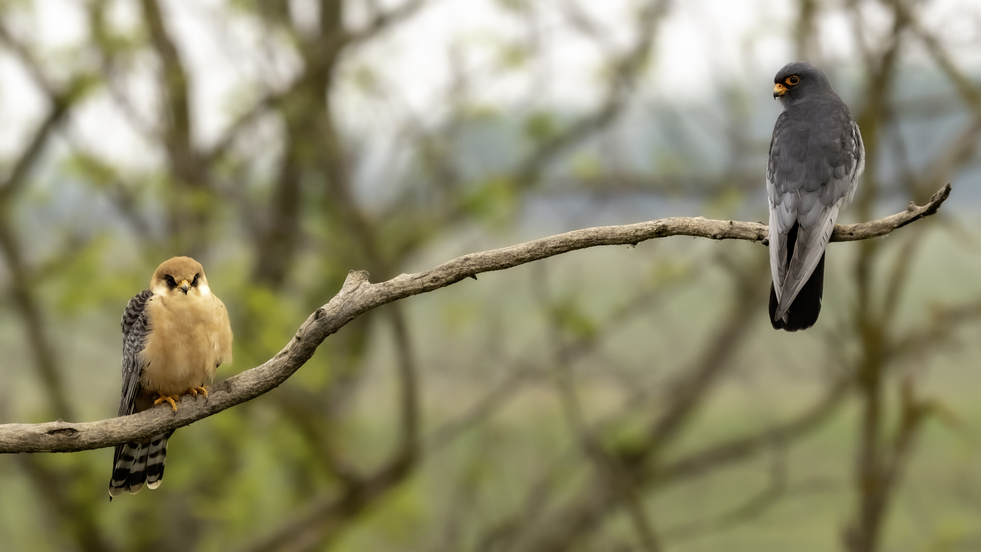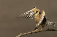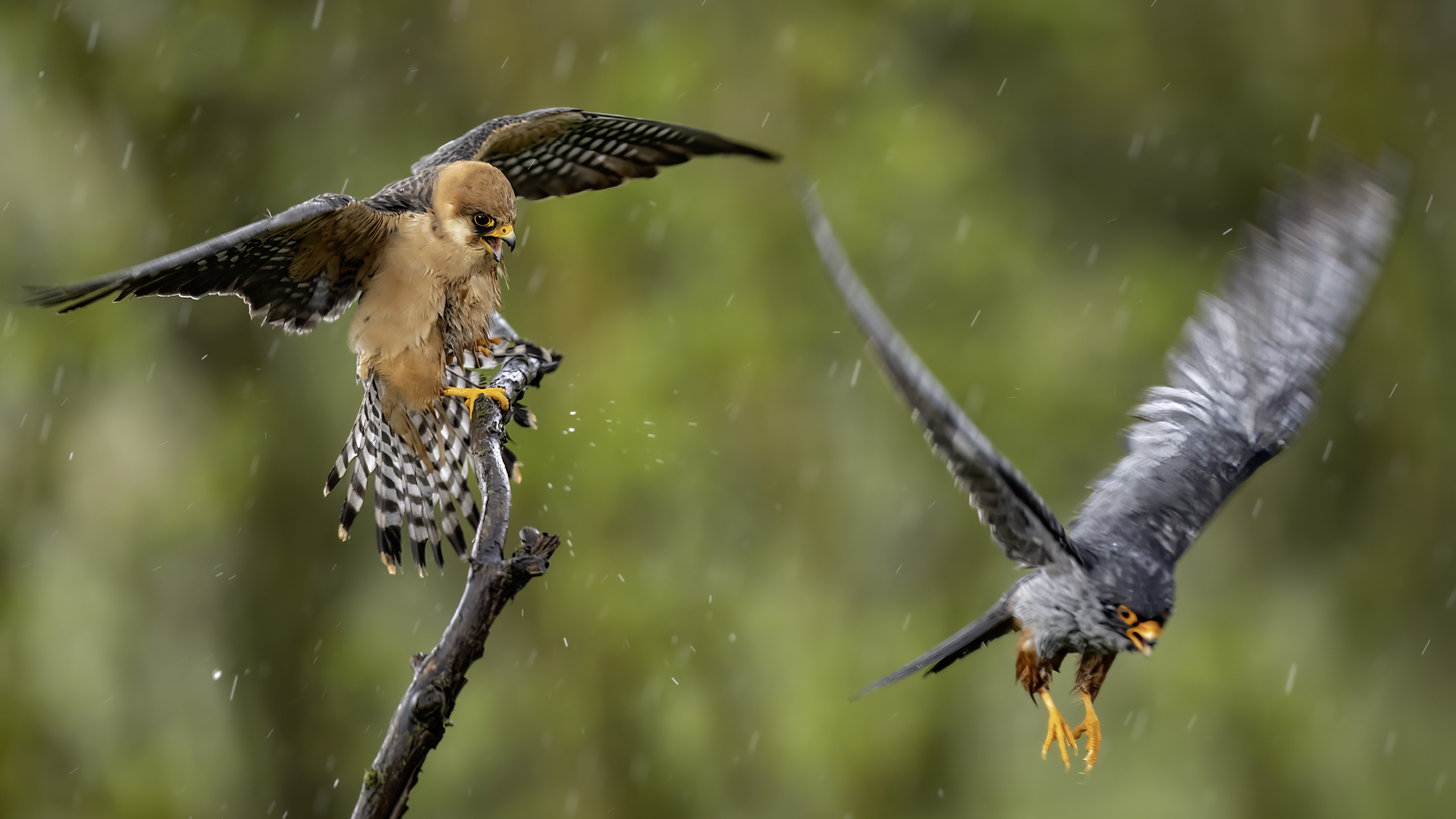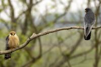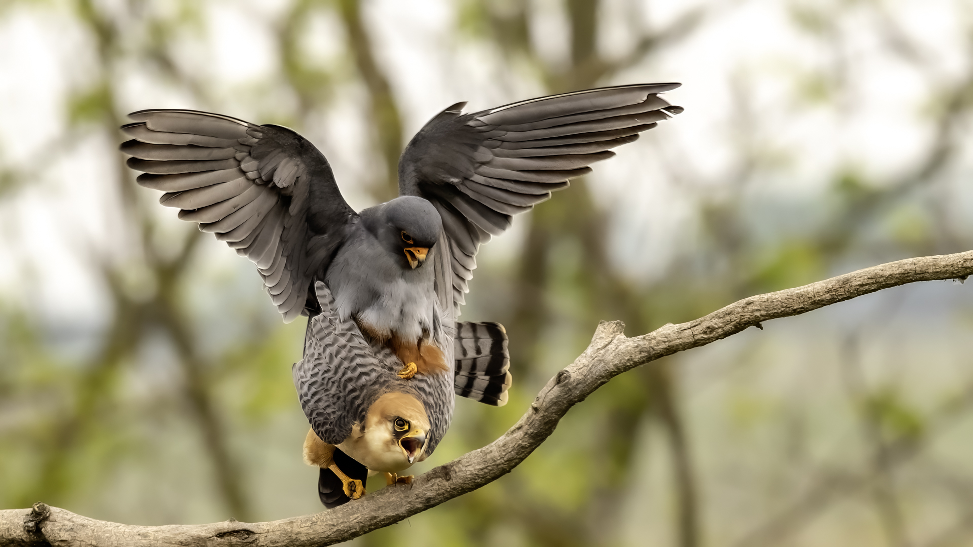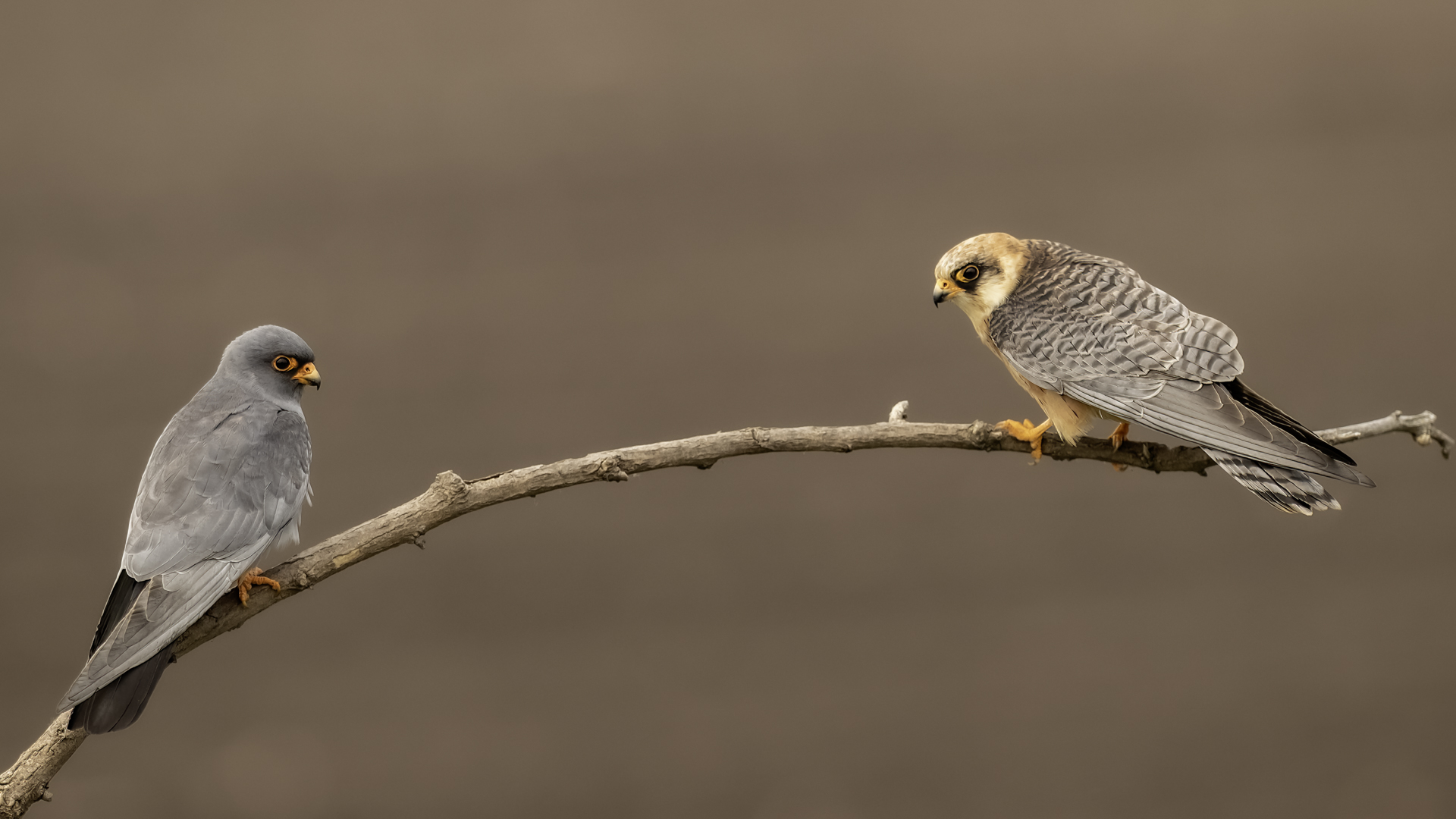 Kobczyk wreszcie trafia do mojej galerii!  Wreszcie, bo od lat był w moich fotograficznych planach, ale w Polsce trudno o dobre zdjęcia tego przepięknego sokoła. W naszym kraju nie gniazduje, a mamy jedynie przyjemność go obserwować podczas przelotów. Prezentowane zdjęcia zostały wykonane na Węgrzech. Trzeba oddać naszym węgierskim organizatorom, że stworzyli warunki do obserwacji i fotografowania kobczyków. Czatownie kobczykowe to usytuowane na wysokości kilku metrów pomieszczenia, gdzie w odległości kilku metrów od fotografujących znajdują się budki lęgowe kobczyków, pustułek i kawek. W odległości około 10-ciu metrów od jednej z czatowni jest też budka lęgowa pójdźki. To dość  niesamowite taka mała kolonia kobczyków, pustułek, kawek i pójdźki, a w środku nich zakamuflowani fotografowie. Spędziłem około 30 -stu godzin wśród kobczyków i można było obserwować ich zaloty, zachowania godowe no i bójki o budkę lęgową, pomiędzy nimi, a kawkami czy pustułkami. Kobczyki z nich są najmniejsze, ale bez walk się nie obyło. Próbowały swoich sił i możliwości na tyle determinująco, że po jednej z bójek z kawkami, myślałem, że samiec kobczyka nie wyjdzie z tego cało. Początek maja był okresem zalotów i kopulacji kobczyków. O zdjęcia tych ptasich zbliżeń nie było trudno, pod warunkiem, że ptaki nie były odwrócone tyłem do nas. Dodałem też nagranie ścieżki dźwiękowej kobczyków o które nie było trudno. Samice niemal ciągle wydają głosy, takie piszczące, powtarzające się. Samce podobnie, ale czasami wydają też głos przypominający głos kretogłowa. Samice cały czas organizowały samcom czas. Siedzący na patyku samiec, często był przeganiany przez samicę, aby zajął się polowaniem. Po zrzuceniu z gałązki udawał się na polowanie. Po jakimś czasie wracał z drobnym gryzoniem lub większym owadem. Samica natychmiast odbierała upolowaną zdobycz i rozpoczęła konsumpcję. Tu następowała chwila ciszy, samiec mógł odpocząć podczas jej posiłku no i ona sama nie wydawała dźwięków. Po zjedzeniu natychmiast siadała na ulubionej gałązce w dość charakterystyczny sposób pokazujący samcowi, że jest gotowa do kopulacji. Do tego oczywiście charakterystyczny piskliwy dźwięk no i samiec nie ma wyjścia, podlatuje do samicy i rozpoczyna się kopulacja. I tak można rzec przez większość dnia. O te statyczne zdjęcia ptaków siedzących na gałązkach, czy kopulujących nie było problemu. Te dynamiczne w locie to już było wyzwanie. Sokoły, jak to sokoły, potrafią bardzo dynamicznie się przemieszczać. To stanowiło pierwszą trudność zrobienia zdjęć ptaków w locie. Druga to szyba, a właściwie lustro dzielące nas od ptaków. Wprawdzie jakość szyby nie była najgorsza, ale spowalniała autofocusa no i zdjęcia wykonywane pod znacznym katem z reguły były do wyrzucenia. Z setek prób udało się jednak kilka zdjęć pokazujące piękną sylwetkę sokoła w locie. Takie musiały powstać-przecież za to je podziwiamy!