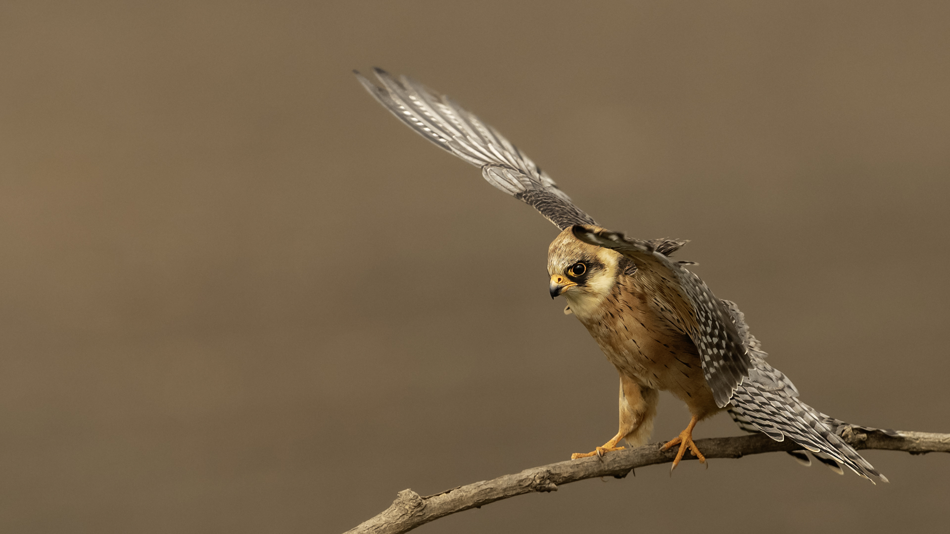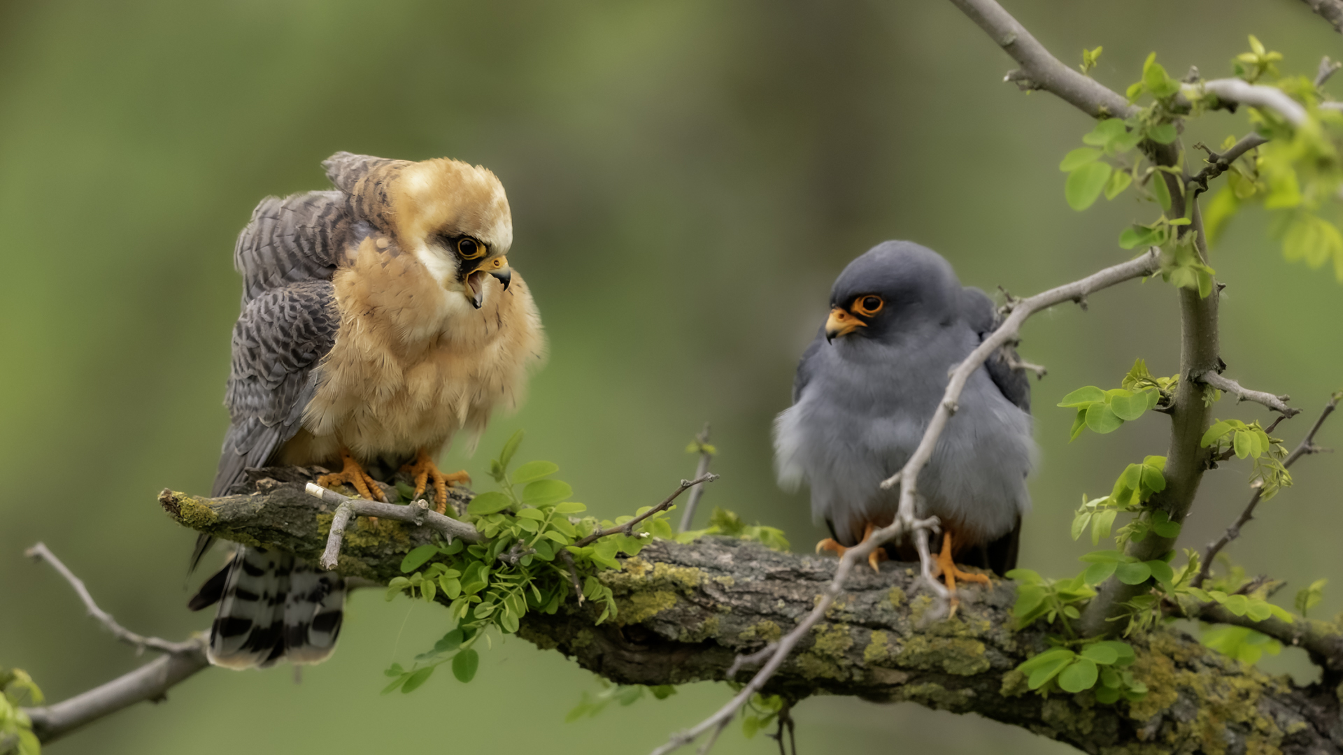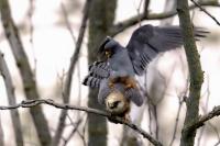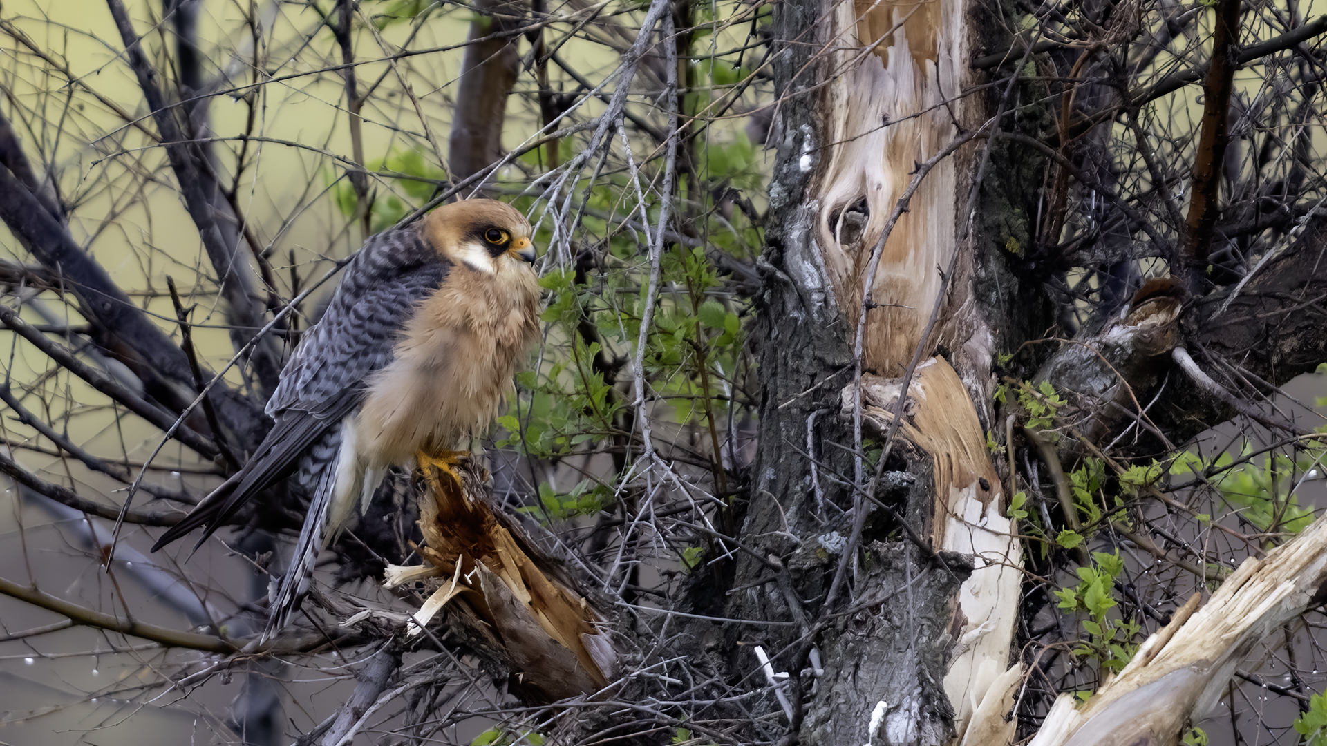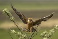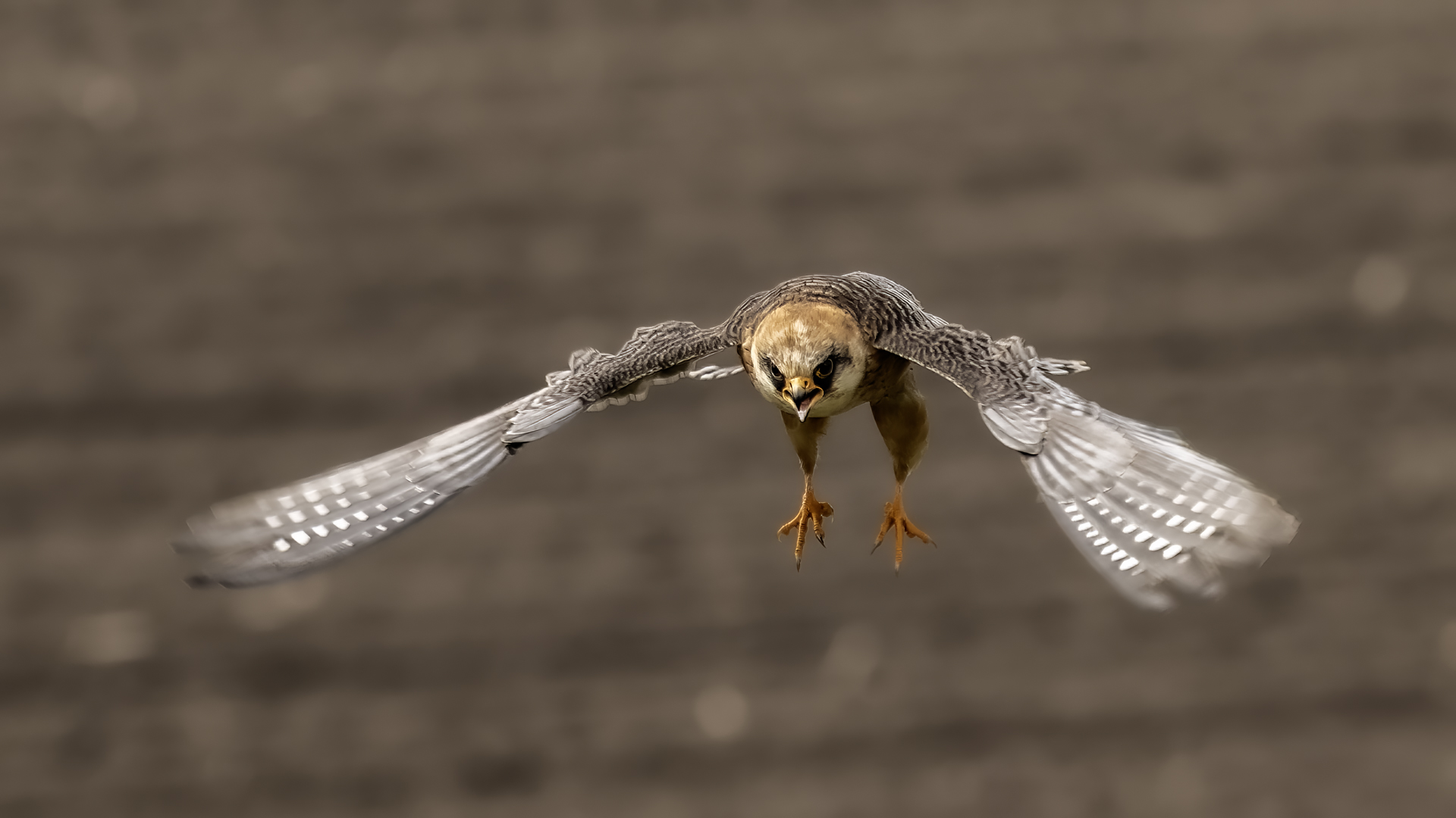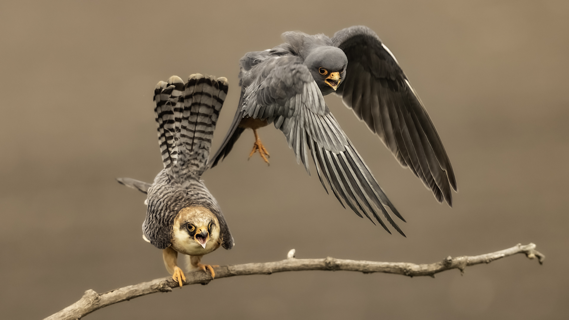 Kobczyk wreszcie trafia do mojej galerii!  Wreszcie, bo od lat był w moich fotograficznych planach, ale w Polsce trudno o dobre zdjęcia tego przepięknego sokoła. W naszym kraju nie gniazduje, a mamy jedynie przyjemność go obserwować podczas przelotów. Prezentowane zdjęcia zostały wykonane na Węgrzech. Trzeba oddać naszym węgierskim organizatorom, że stworzyli warunki do obserwacji i fotografowania kobczyków. Czatownie kobczykowe to usytuowane na wysokości kilku metrów pomieszczenia, gdzie w odległości kilku metrów od fotografujących znajdują się budki lęgowe kobczyków, pustułek i kawek. W odległości około 10-ciu metrów od jednej z czatowni jest też budka lęgowa pójdźki. To dość  niesamowite taka mała kolonia kobczyków, pustułek, kawek i pójdźki, a w środku nich zakamuflowani fotografowie. Spędziłem około 30 -stu godzin wśród kobczyków i można było obserwować ich zaloty, zachowania godowe no i bójki o budkę lęgową, pomiędzy nimi, a kawkami czy pustułkami. Kobczyki z nich są najmniejsze, ale bez walk się nie obyło. Próbowały swoich sił i możliwości na tyle determinująco, że po jednej z bójek z kawkami, myślałem, że samiec kobczyka nie wyjdzie z tego cało. Początek maja był okresem zalotów i kopulacji kobczyków. O zdjęcia tych ptasich zbliżeń nie było trudno, pod warunkiem, że ptaki nie były odwrócone tyłem do nas. Dodałem też nagranie ścieżki dźwiękowej kobczyków o które nie było trudno. Samice niemal ciągle wydają głosy, takie piszczące, powtarzające się. Samce podobnie, ale czasami wydają też głos przypominający głos kretogłowa. Samice cały czas organizowały samcom czas. Siedzący na patyku samiec, często był przeganiany przez samicę, aby zajął się polowaniem. Po zrzuceniu z gałązki udawał się na polowanie. Po jakimś czasie wracał z drobnym gryzoniem lub większym owadem. Samica natychmiast odbierała upolowaną zdobycz i rozpoczęła konsumpcję. Tu następowała chwila ciszy, samiec mógł odpocząć podczas jej posiłku no i ona sama nie wydawała dźwięków. Po zjedzeniu natychmiast siadała na ulubionej gałązce w dość charakterystyczny sposób pokazujący samcowi, że jest gotowa do kopulacji. Do tego oczywiście charakterystyczny piskliwy dźwięk no i samiec nie ma wyjścia, podlatuje do samicy i rozpoczyna się kopulacja. I tak można rzec przez większość dnia. O te statyczne zdjęcia ptaków siedzących na gałązkach, czy kopulujących nie było problemu. Te dynamiczne w locie to już było wyzwanie. Sokoły, jak to sokoły, potrafią bardzo dynamicznie się przemieszczać. To stanowiło pierwszą trudność zrobienia zdjęć ptaków w locie. Druga to szyba, a właściwie lustro dzielące nas od ptaków. Wprawdzie jakość szyby nie była najgorsza, ale spowalniała autofocusa no i zdjęcia wykonywane pod znacznym katem z reguły były do wyrzucenia. Z setek prób udało się jednak kilka zdjęć pokazujące piękną sylwetkę sokoła w locie. Takie musiały powstać-przecież za to je podziwiamy!