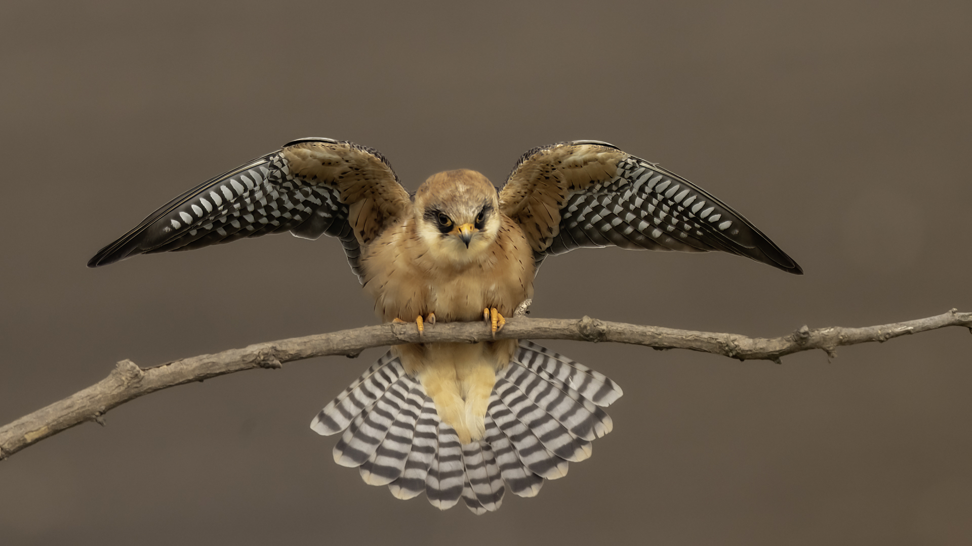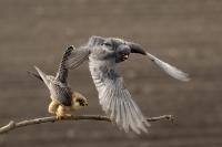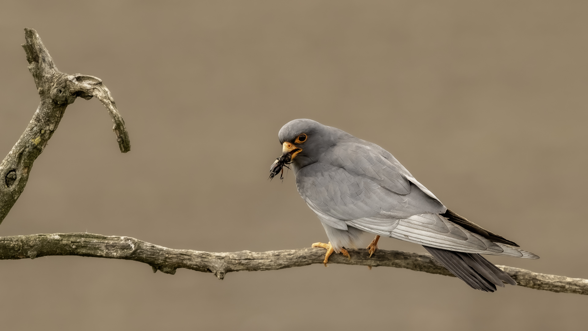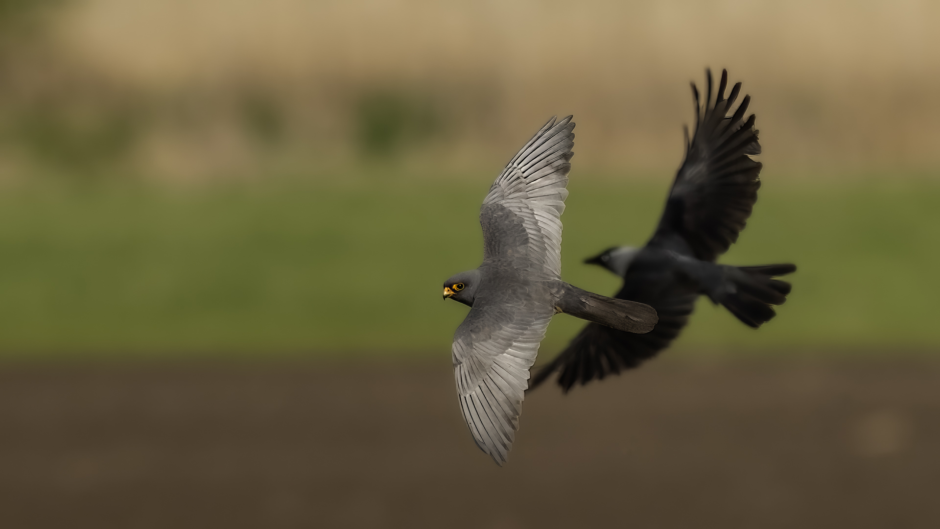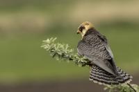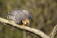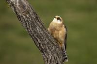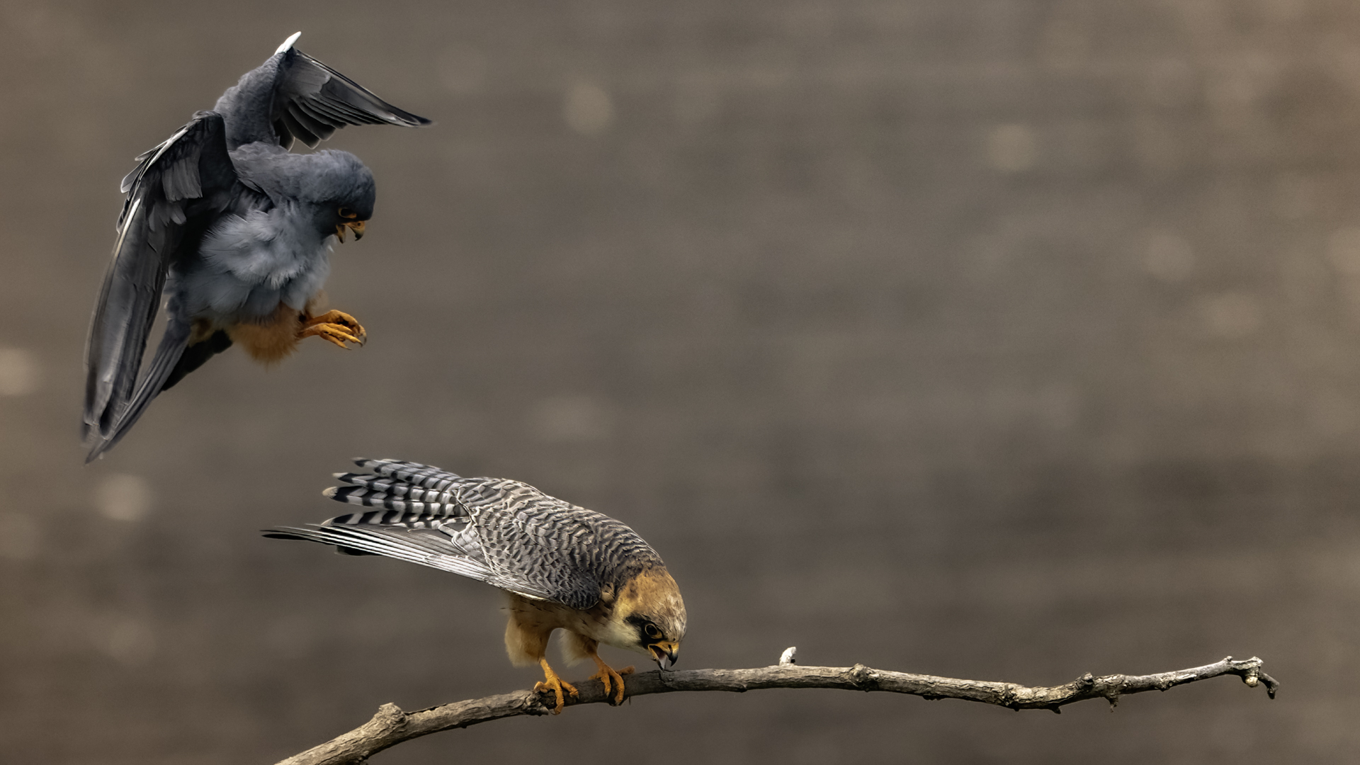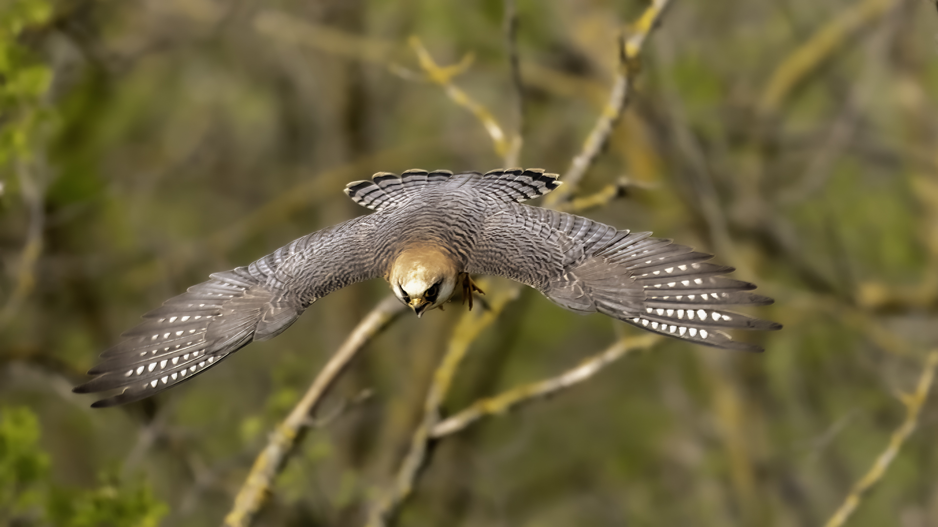 Kobczyk wreszcie trafia do mojej galerii!  Wreszcie, bo od lat był w moich fotograficznych planach, ale w Polsce trudno o dobre zdjęcia tego przepięknego sokoła. W naszym kraju nie gniazduje, a mamy jedynie przyjemność go obserwować podczas przelotów. Prezentowane zdjęcia zostały wykonane na Węgrzech. Trzeba oddać naszym węgierskim organizatorom, że stworzyli warunki do obserwacji i fotografowania kobczyków. Czatownie kobczykowe to usytuowane na wysokości kilku metrów pomieszczenia, gdzie w odległości kilku metrów od fotografujących znajdują się budki lęgowe kobczyków, pustułek i kawek. W odległości około 10-ciu metrów od jednej z czatowni jest też budka lęgowa pójdźki. To dość  niesamowite taka mała kolonia kobczyków, pustułek, kawek i pójdźki, a w środku nich zakamuflowani fotografowie. Spędziłem około 30 -stu godzin wśród kobczyków i można było obserwować ich zaloty, zachowania godowe no i bójki o budkę lęgową, pomiędzy nimi, a kawkami czy pustułkami. Kobczyki z nich są najmniejsze, ale bez walk się nie obyło. Próbowały swoich sił i możliwości na tyle determinująco, że po jednej z bójek z kawkami, myślałem, że samiec kobczyka nie wyjdzie z tego cało. Początek maja był okresem zalotów i kopulacji kobczyków. O zdjęcia tych ptasich zbliżeń nie było trudno, pod warunkiem, że ptaki nie były odwrócone tyłem do nas. Dodałem też nagranie ścieżki dźwiękowej kobczyków o które nie było trudno. Samice niemal ciągle wydają głosy, takie piszczące, powtarzające się. Samce podobnie, ale czasami wydają też głos przypominający głos kretogłowa. Samice cały czas organizowały samcom czas. Siedzący na patyku samiec, często był przeganiany przez samicę, aby zajął się polowaniem. Po zrzuceniu z gałązki udawał się na polowanie. Po jakimś czasie wracał z drobnym gryzoniem lub większym owadem. Samica natychmiast odbierała upolowaną zdobycz i rozpoczęła konsumpcję. Tu następowała chwila ciszy, samiec mógł odpocząć podczas jej posiłku no i ona sama nie wydawała dźwięków. Po zjedzeniu natychmiast siadała na ulubionej gałązce w dość charakterystyczny sposób pokazujący samcowi, że jest gotowa do kopulacji. Do tego oczywiście charakterystyczny piskliwy dźwięk no i samiec nie ma wyjścia, podlatuje do samicy i rozpoczyna się kopulacja. I tak można rzec przez większość dnia. O te statyczne zdjęcia ptaków siedzących na gałązkach, czy kopulujących nie było problemu. Te dynamiczne w locie to już było wyzwanie. Sokoły, jak to sokoły, potrafią bardzo dynamicznie się przemieszczać. To stanowiło pierwszą trudność zrobienia zdjęć ptaków w locie. Druga to szyba, a właściwie lustro dzielące nas od ptaków. Wprawdzie jakość szyby nie była najgorsza, ale spowalniała autofocusa no i zdjęcia wykonywane pod znacznym katem z reguły były do wyrzucenia. Z setek prób udało się jednak kilka zdjęć pokazujące piękną sylwetkę sokoła w locie. Takie musiały powstać-przecież za to je podziwiamy!