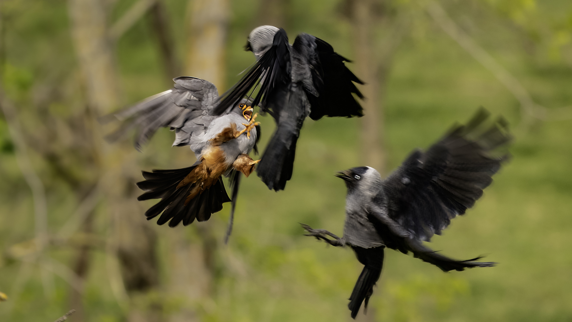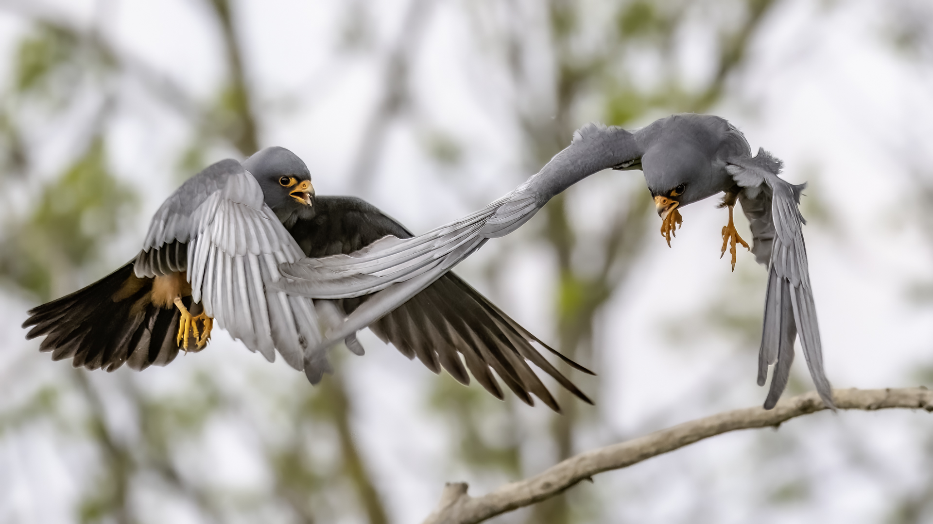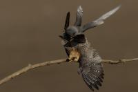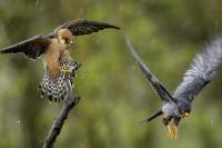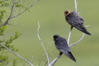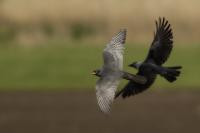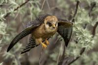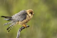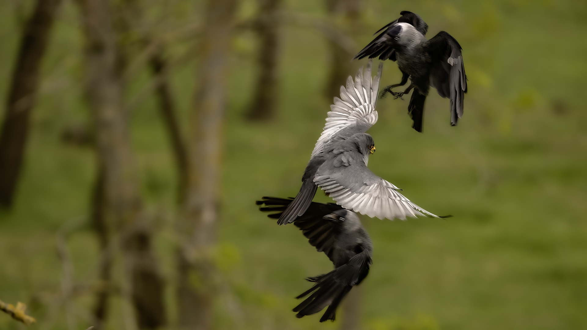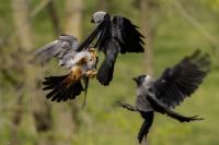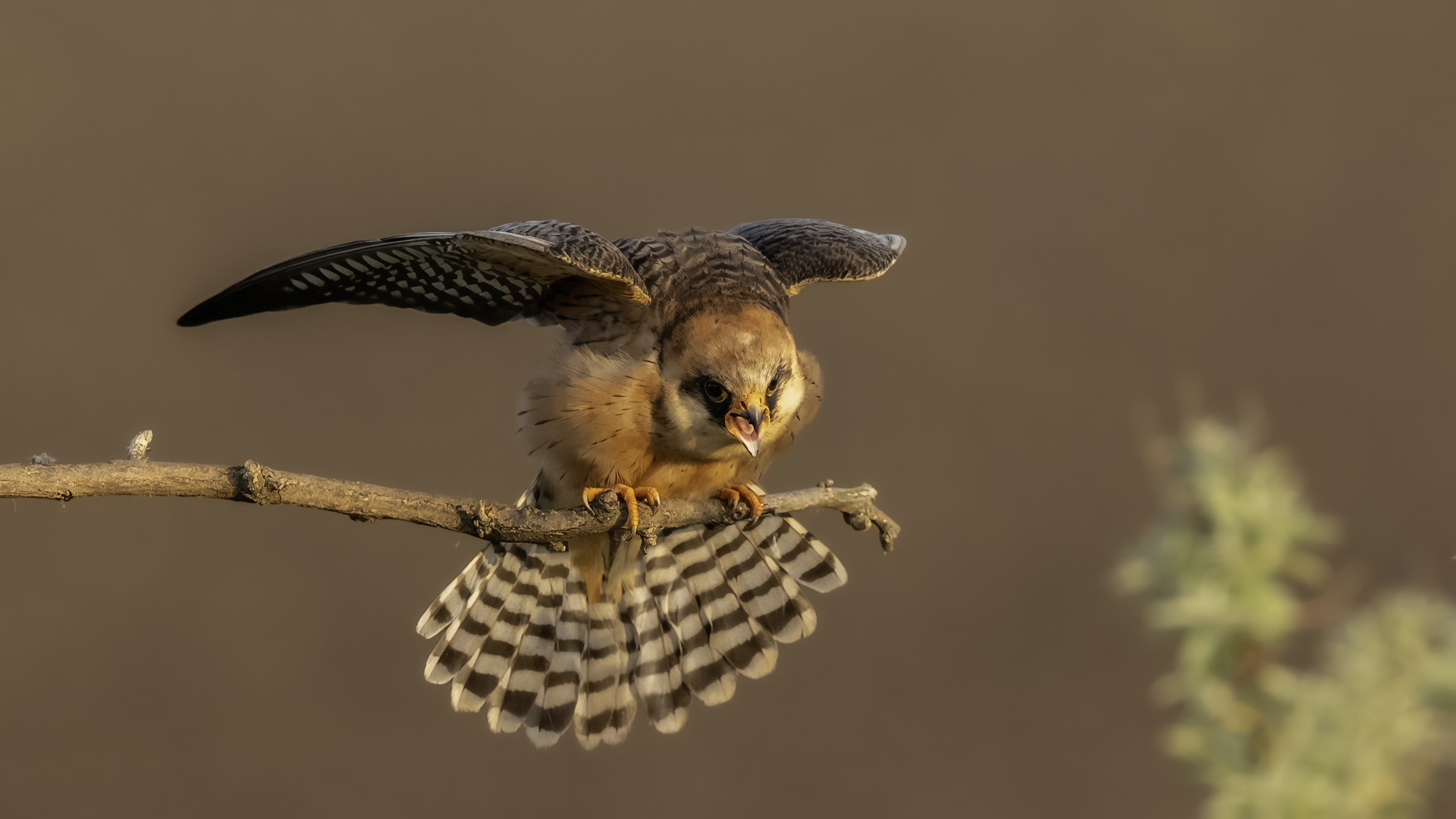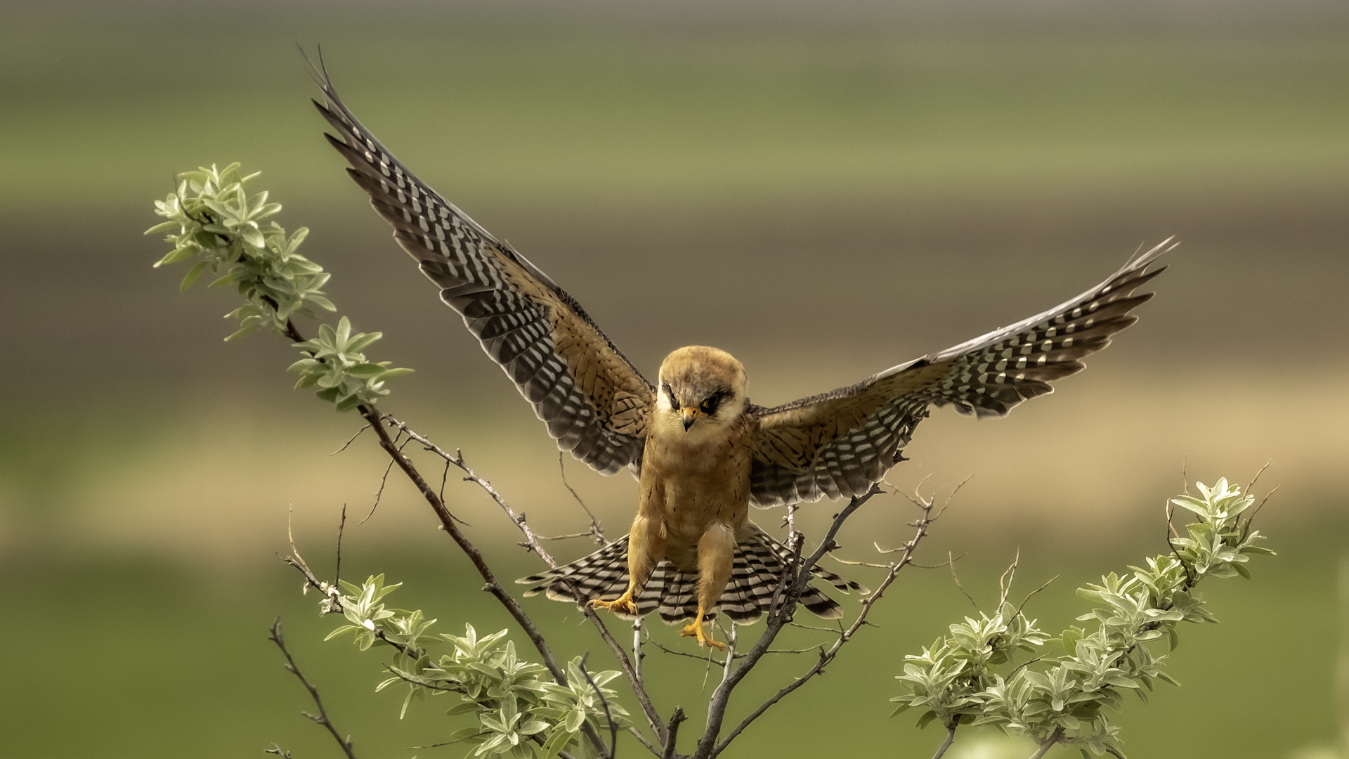 Kobczyk wreszcie trafia do mojej galerii!  Wreszcie, bo od lat był w moich fotograficznych planach, ale w Polsce trudno o dobre zdjęcia tego przepięknego sokoła. W naszym kraju nie gniazduje, a mamy jedynie przyjemność go obserwować podczas przelotów. Prezentowane zdjęcia zostały wykonane na Węgrzech. Trzeba oddać naszym węgierskim organizatorom, że stworzyli warunki do obserwacji i fotografowania kobczyków. Czatownie kobczykowe to usytuowane na wysokości kilku metrów pomieszczenia, gdzie w odległości kilku metrów od fotografujących znajdują się budki lęgowe kobczyków, pustułek i kawek. W odległości około 10-ciu metrów od jednej z czatowni jest też budka lęgowa pójdźki. To dość  niesamowite taka mała kolonia kobczyków, pustułek, kawek i pójdźki, a w środku nich zakamuflowani fotografowie. Spędziłem około 30 -stu godzin wśród kobczyków i można było obserwować ich zaloty, zachowania godowe no i bójki o budkę lęgową, pomiędzy nimi, a kawkami czy pustułkami. Kobczyki z nich są najmniejsze, ale bez walk się nie obyło. Próbowały swoich sił i możliwości na tyle determinująco, że po jednej z bójek z kawkami, myślałem, że samiec kobczyka nie wyjdzie z tego cało. Początek maja był okresem zalotów i kopulacji kobczyków. O zdjęcia tych ptasich zbliżeń nie było trudno, pod warunkiem, że ptaki nie były odwrócone tyłem do nas. Dodałem też nagranie ścieżki dźwiękowej kobczyków o które nie było trudno. Samice niemal ciągle wydają głosy, takie piszczące, powtarzające się. Samce podobnie, ale czasami wydają też głos przypominający głos kretogłowa. Samice cały czas organizowały samcom czas. Siedzący na patyku samiec, często był przeganiany przez samicę, aby zajął się polowaniem. Po zrzuceniu z gałązki udawał się na polowanie. Po jakimś czasie wracał z drobnym gryzoniem lub większym owadem. Samica natychmiast odbierała upolowaną zdobycz i rozpoczęła konsumpcję. Tu następowała chwila ciszy, samiec mógł odpocząć podczas jej posiłku no i ona sama nie wydawała dźwięków. Po zjedzeniu natychmiast siadała na ulubionej gałązce w dość charakterystyczny sposób pokazujący samcowi, że jest gotowa do kopulacji. Do tego oczywiście charakterystyczny piskliwy dźwięk no i samiec nie ma wyjścia, podlatuje do samicy i rozpoczyna się kopulacja. I tak można rzec przez większość dnia. O te statyczne zdjęcia ptaków siedzących na gałązkach, czy kopulujących nie było problemu. Te dynamiczne w locie to już było wyzwanie. Sokoły, jak to sokoły, potrafią bardzo dynamicznie się przemieszczać. To stanowiło pierwszą trudność zrobienia zdjęć ptaków w locie. Druga to szyba, a właściwie lustro dzielące nas od ptaków. Wprawdzie jakość szyby nie była najgorsza, ale spowalniała autofocusa no i zdjęcia wykonywane pod znacznym katem z reguły były do wyrzucenia. Z setek prób udało się jednak kilka zdjęć pokazujące piękną sylwetkę sokoła w locie. Takie musiały powstać-przecież za to je podziwiamy!