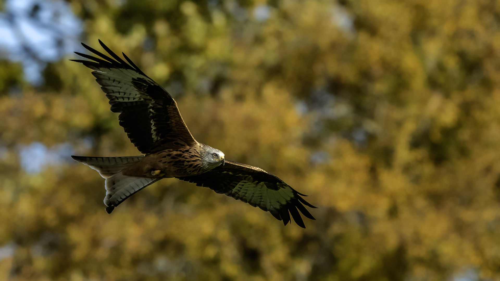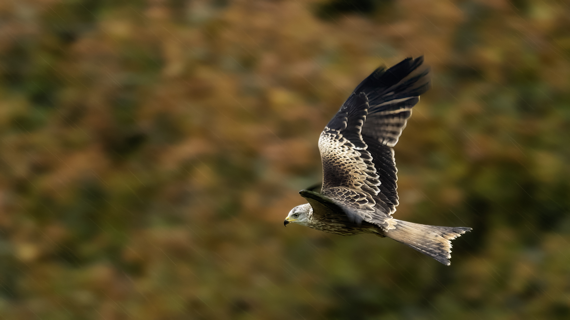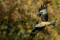 Zawsze uważałem kanię rudą za jednego z piękniejszych szponiastych ptaków należących do fauny Polski, a z tych regularnie występujących gatunków, chyba jednak najpiękniejszy. Niestety przy moich zasobach czasu wolnego skazany jestem na korzystanie z cudzych czatowni, aby móc podziwiać i fotografować te piękne ptaki. Dotychczasowe dwa spotkania, 6 lat temu i 3 lata temu były przypadkowe i zakończyły się dokumentacyjnymi zdjęciami na tle nieba. Taki gatunek nie może mieć jedno- gwiazdkowej, dokumentacyjnej galerii na mojej stronie! Na przestrzeni lat nie udało się znaleźć w Polsce czatowni, osoby która umożliwiłaby wreszcie wykonać dobre zdjęcia tych ptaków. Ale może i dobrze, bo wówczas nie odwiedziłbym pewnie Gigrin Farm (link) w Wielkiej Brytanii, a właściwie w Walii. Odwiedzenie tego miejsca polecam nie tylko fotografom, czy przyrodnikom, ale każdemu, bo takich ciekawych miejsc na świecie nie ma wiele. A dlaczego? Sądzę że niniejszy tekst to wyjaśni. Kanie ze swej natury są raczej płochliwe i trudne do sfotografowania- przynajmniej takie mamy polskie doświadczenia w tym zakresie. Na Gigrin Farm od wielu lat prowadzi się dokarmianie i rehabilitację chorych ptaków. Zapewniam, że wynika to troski o te ptaki, a nie jest to forma zarobkowania. Najtańszy wstęp do czatowni wynosi 7 funtów! I ta informacja, sądzę że wyjaśnia wszystko. Są to pieniądze przeznaczone na dokarmianie i opiekę nad tymi ptakami. Na razie brzmi to tuzinkowo, do czasu, gdy nie zobaczy się skali tego przedsięwzięcia. Dokarmianie rozpoczyna się zawsze o godzinie 14-stej. W pierwszy dzień poszedłem na nieco droższą, wysoką czatownię dwie godziny wcześniej. Wysoką, bo jest większe prawdopodobieństwo wykonania dynamicznych zdjęć z ciekawym, jesiennym tłem. Scena niczym z ptaków Hitchcocka. Ciemne, ciężkie chmury i na ich tle pojawiają się ptaki. Najpierw pojedyncze kanie, gawrony, myszołowy, czarnowrony, ale z każdą chwilą widać coraz więcej i coraz bliżej nadlatujących ptaków. Zataczają koła nad miejscem ich dokarmiania. Tuż przed godziną drugą można obserwować już setki kań! W jednym miejscu! Szybują w powietrznym tłoku, ale nie wpadają na siebie. Rzadko widać ich powietrzne zapasy i kolizje, jak to miało miejsce podczas obserwacji orłosępów. Po podaniu „do stołu” zaczynają się naloty ptaków. Z mojej czatowni, która bardziej przypomina balkon niż czatownię, czasami daje się odczuć powiew powietrza nadlatujących ptaków. Bliskość i ilość ptaków wprawiają w zdziwienie, osłupienie. Samo fotografowanie nie jest niczym ograniczone, żadnymi szybami, czy innymi stałymi elementami. Kanie tak się przyzwyczaiły do ludzi podczas karmienia, że nawet kilkudziesięciu obserwujących na raz to rzadkie widowisko, nie odstrasza ptaków. Na ten spektakl, na jedną godzinę przybywają całe rodziny, babcie z wnuczkami no i zawsze znajdzie się jakiś fotograf. Obserwacja niesamowita, ale ze zdjęciami już tak łatwo nie jest. Ilość ptaków i szybkość, z jaką nadlatują ptaki nie ułatwia fotografowania. Chciałoby się mieć zdjęcie z dość bliskiej odległości, ptaka w locie, na tle jesiennych kolorowych drzew. Przez pierwsze kilkanaście minut jest to bardzo trudne, bo w kadrze jest prawie zawsze kilka ptaków i zawsze część z nich poza kadrem. A spieszyć się trzeba, bo tak naprawdę pierwsza godzina jest najważniejsza, bo wówczas jest największa intensywność spotkań z kaniami. Najlepiej skoncentrować się na jednym ptaku, śledzić go i wykonywać co chwilę zdjęcia. Niestety przy wieczornym przeglądaniu zdjęć dopiero się daje zauważyć solidne numery identyfikacyjne przytwierdzone do skrzydeł niektórych ptaków, które zupełnie dyskredytują zdjęcie. Takich oznakowanych ptaków było chyba kilkanaście. Na kolejną godzinę lub dwie czasami pozostawało już tylko kilka ptaków. Na szczęście dla odmiany lądowały na ziemi i przeszukiwały trawę w poszukiwaniu resztek z posiłku. Powstają tym razem z dolnych czatowni statyczne zdjęcia kani. Zdjęć powstają setki, tysiące podczas trzech spotkań z ptakami i na szczęście jest z czego wybrać zdjęcia na pamiątkę tego niesamowitego spotkania z kaniami. Do galerii dodałem też ścieżkę dźwiękową z głosem kani. Przed posiłkiem, część ptaków przesiadywała na pobliskich drzewach i wydawała co chwilę swoje pochrapujące gwizdy. Wreszcie do galerii kani zawitały zdjęcia należycie oddające urok i piękno tych ptaków, galeria staje się 4-ro gwiazdkową, bardzo dobrą galerią na mojej stronie i trafia też do kategorii moich ulubionych galerii. Podziękowania dla wszystkich z Gigrin Farm, za to że stworzyli takie jedyne w swoim rodzaju na świecie miejsce, za miłą i przyjazną atmosferę i cieszę się, że dane było mi to zobaczyć, bo zapewniam Was, że warto…