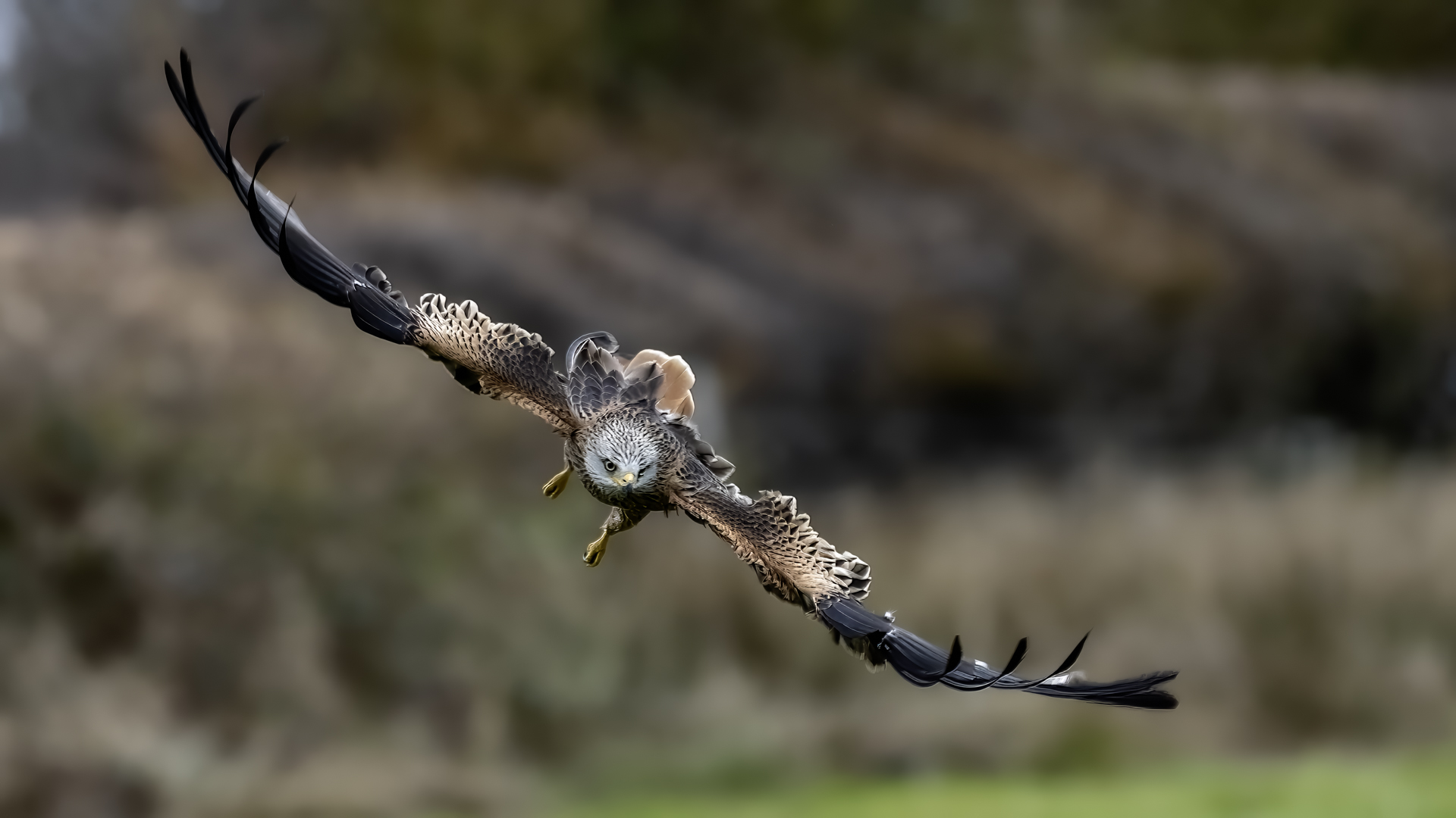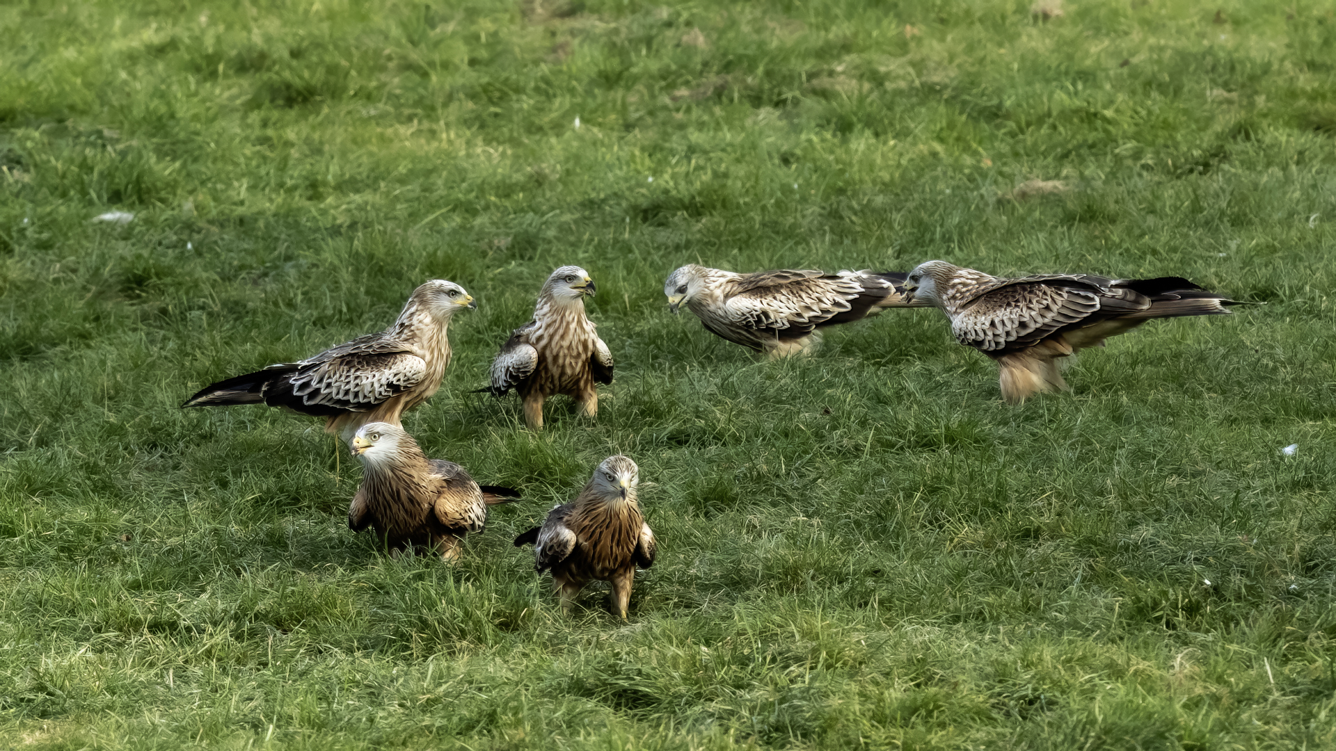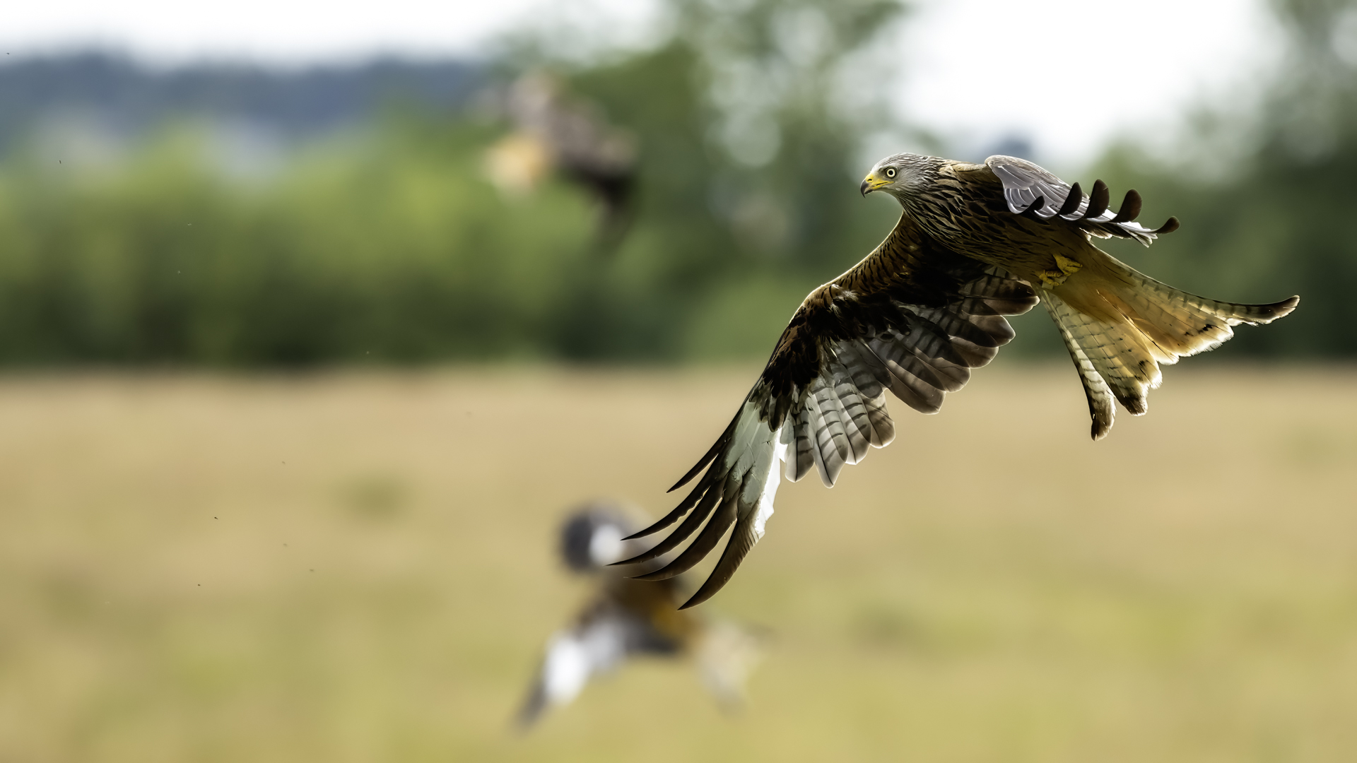 Kilkudniowy wyjazd do Wielkiej Brytanii był bez wątpienia zorganizowany z myślą o sokole wędrownym i płomykówce. Sesje fotografowania płomykówki zaplanowane były w godzinach od 20:00 do 2:00 w nocy, co pozostawiało sporo wolnego czasu w ciągu dnia – trzeba go było jakoś sensownie zagospodarować. Wybór padł na Gigrin Farm, oddaloną o ponad 200 kilometrów od czatowni, w której nocami czekaliśmy na sowy. Odwiedziłem to miejsce po raz pierwszy w listopadzie 2018 roku, a więc niemal siedem lat temu. Tego typu miejsc się nie zapomina – z przyjemnością więc tam wróciłem. Na przestrzeni lat dało się zauważyć kilka zmian. Pierwszą z nich były ceny za możliwość obserwacji i fotografowania kani podczas dokarmiania. Najtańszy bilet kosztował 11,5 funta – wzrost ceny nie był zaskakujący. Jednak za miejsce w najwyżej położonej i najlepiej usytuowanej czatowni trzeba było zapłacić już 45 funtów za zaledwie 1–2 godziny fotografowania. Tak znacząca podwyżka najpewniej wynika ze wzrostu popularności tego miejsca. Jesienią 2018 roku w czatowniach było zaledwie kilka osób. Tym razem – kilkadziesiąt. Być może wpływ miała na to pora roku. Letnie dokarmianie kań rozpoczyna się o godzinie 15:00 i w porównaniu z jesienią ptaków było mniej. Z fotograficznego punktu widzenia to akurat zaleta – w tłumie dynamicznie poruszających się sylwetek łatwo było się pogubić, zarówno mnie, jak i autofokusowi. Mimo wszystko udało się zrobić kilka interesujących zdjęć, które wzbogaciły moją galerię.