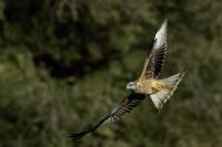 Z kania rudą historia wykonania pierwszego zdjęcia tego gatunku podobna jest do pierwszego sfotografowania rybołowa. Różnica jest jedynie w tym, że rybołów był najprawdopodobniej przelotem (jesień), a kania musiała mieć gdzieś w pobliżu swoje gniazdo (czerwiec). Oba ptaki mogą fascynować. Patrząc na zdjęcia kani rudej w Internecie, żal i szkoda, że ta moja galeria jest tak uboga. Nie dość, że jest to jedyne zdjęcie, to jego jakość pozostawia wiele do życzenia. Miejmy nadzieję, że z czasem doczeka się galerii na miarę mojej galerii myszołowa, czy bielika. Kania należy do dużych ptaków drapieżnych. Jej rozpiętość skrzydeł to około 1,5 metra, przy wadze nie przekraczającej 1,5 kilograma. Charakterystycznym dla rozpoznania kani w locie, jest wklęśnięta końcówka trójkątnego ogona. Mimo, że na pierwszy rzut oka w locie identyfikuje się błotniaka stawowego, częściej występującego, dopiero ogon podpowiada właściwą identyfikację. Kania jest znacznie większa od błotniaka, zwłaszcza porównując ich wagę.