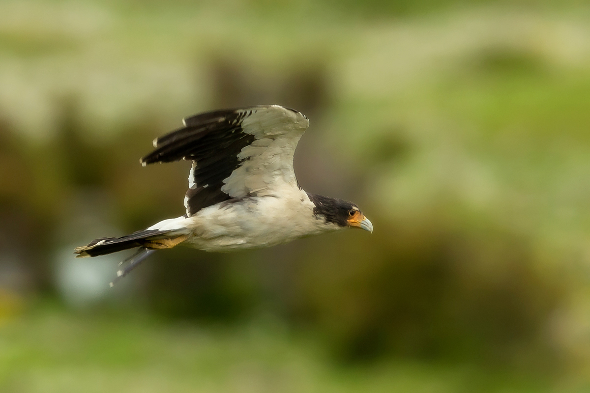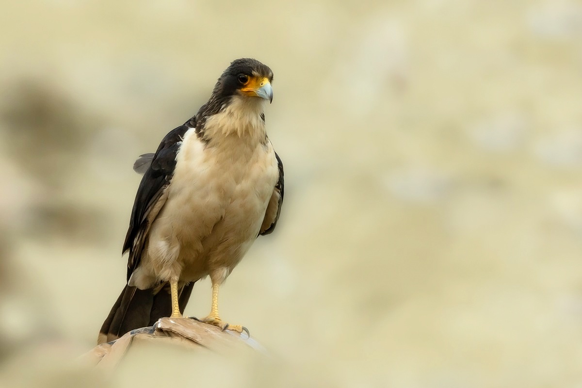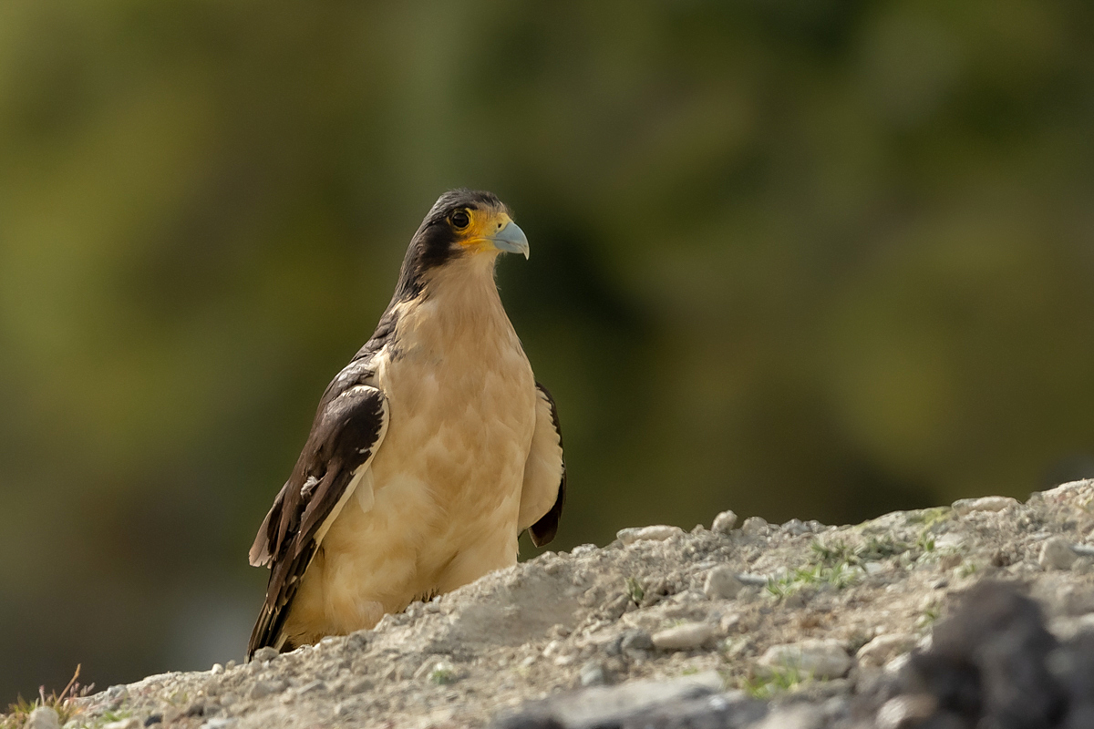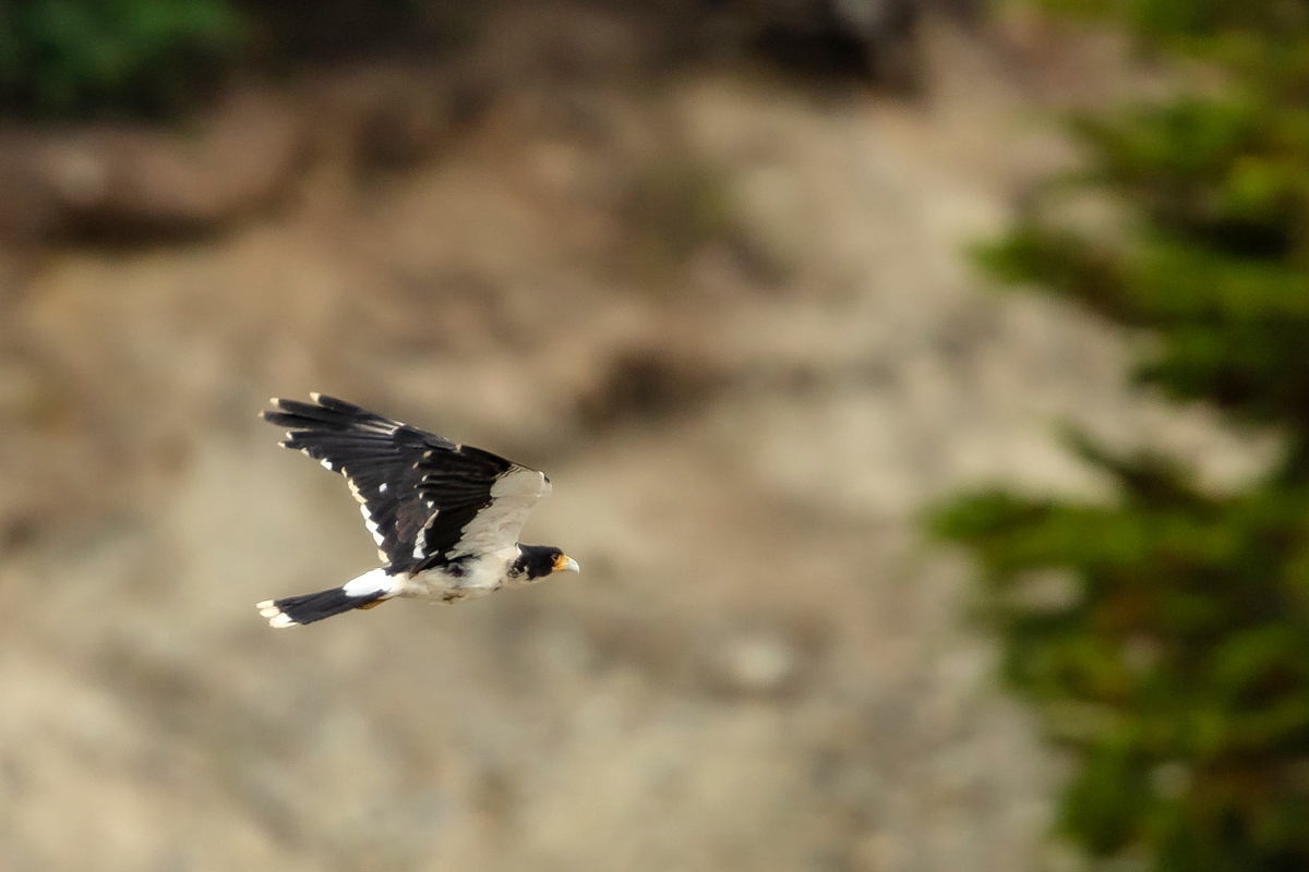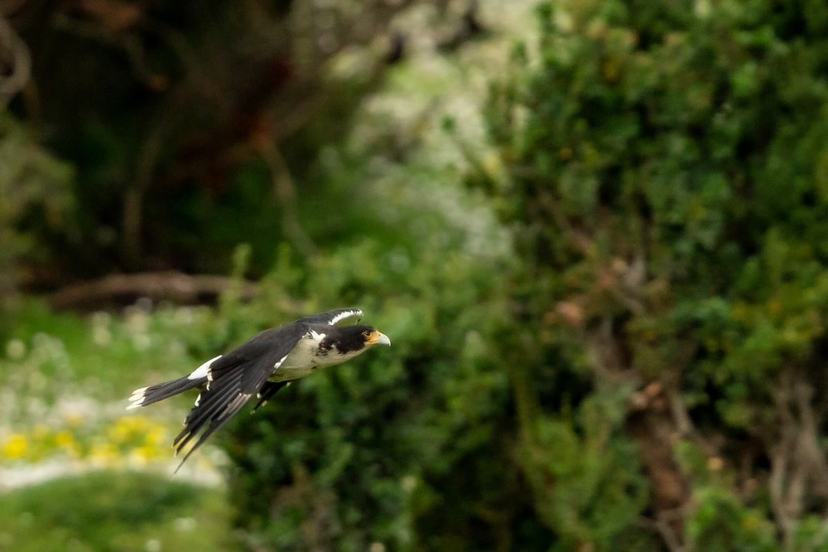 Dość niespotykany plener, jak na dotychczasowe fotografowanie. Kilkanaście minut jazdy taksówką za Ushuaia, by na obrzeżach składowiska śmieci zobaczyć, już nie dziesiątki, ale setki karakar w trzech gatunkach. Najbardziej popularna była karakara czarnobrzucha. Największa i najsilniejsza. Drugi co do liczebności gatunek, to trębacz brązowy. Najmniej liczna była karakara patagońska. Było jej najmniej i była najmniej aktywna. Z trzech wymienionych gatunków, tylko, jej głosu nie udało się mi nagrać. Karakary czarnobrzucheche, często wydawały z siebie odgłos, wychylając do tyłu głowę i szyję. Z nagraniem dźwięku nie było problemów. Na przepięknym, graniczącym ze składowiskiem wzgórzu, nie raz w kadrze było widać kilka ptaków na raz. Czekaliśmy za ich przelotem na i z składowiska. Tak powstały prezentowane zdjęcia w dwóch próbach. Druga próba fotografowania wspomagana była kupionymi kurzymi udkami, jak się okazało niepotrzebnie. Karakary nie czekały nawet minuty na nasze odejście na kilkanaście metrów, zaraz zaczęły rywalizacje o pożywienie. Było ich tak wiele, że trzeba było po prostu trochę czasu, cierpliwości do wykonania zdjęć. Takie skupisko karakar to niesamowity widok. W tle widać dość spore skupisko mewy południowej i co jakiś czas pojawia się wydrzyk wielki. Obecność pracujących w maszynach ludzi, nie specjalnie im przeszkadzała. Poniżej przedstawiam cechy charakterystyczne dla wymienionych gatunków: