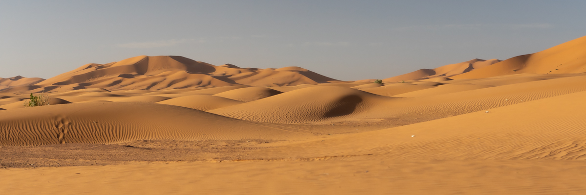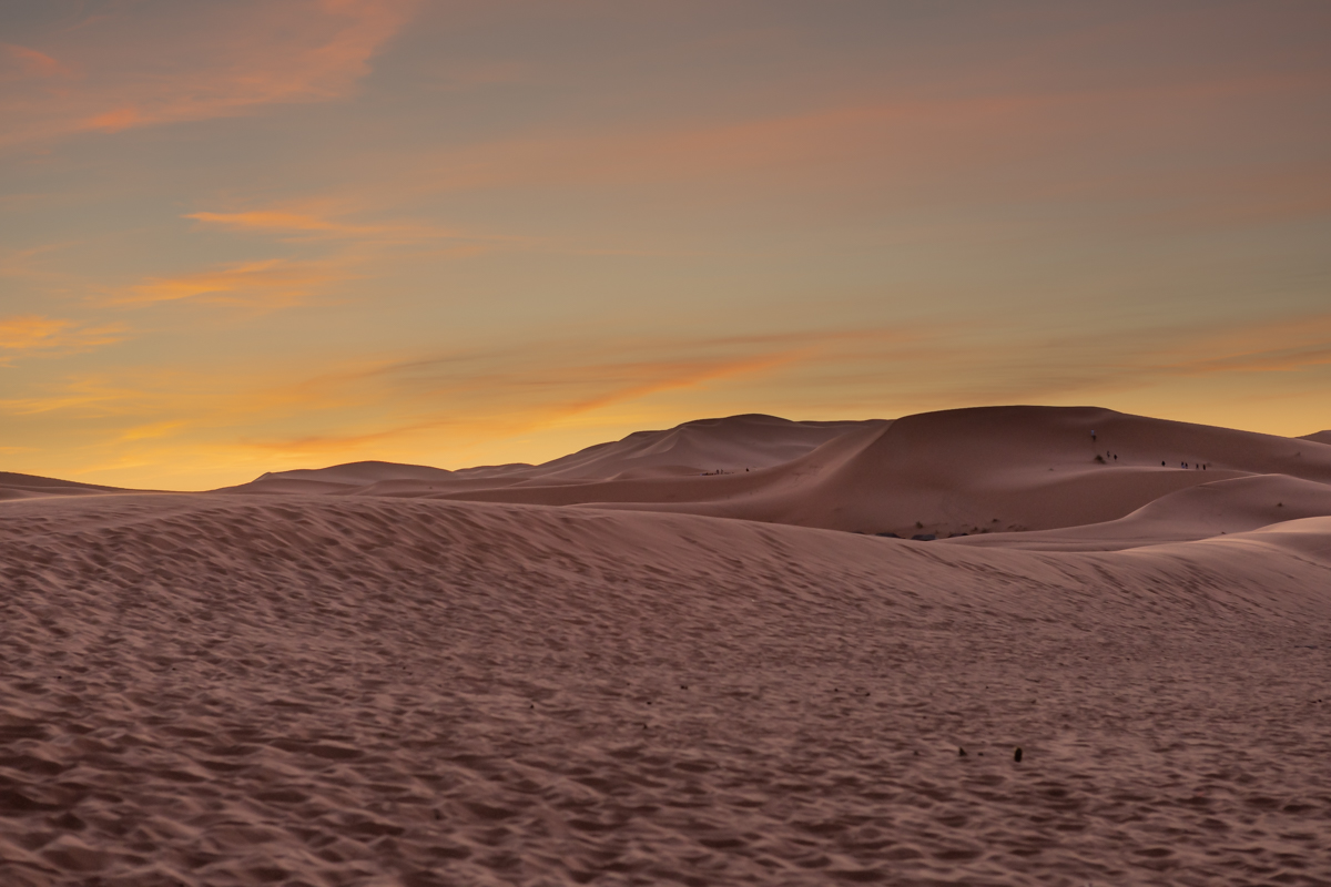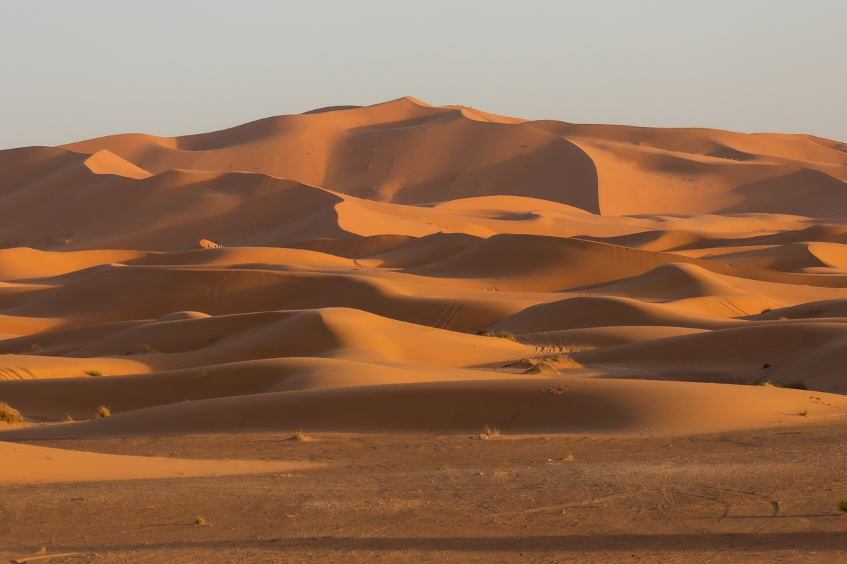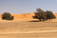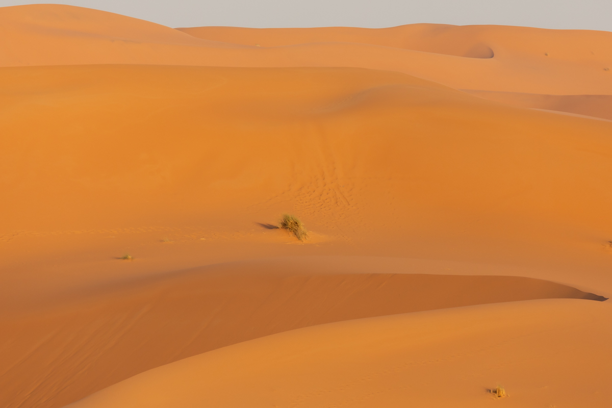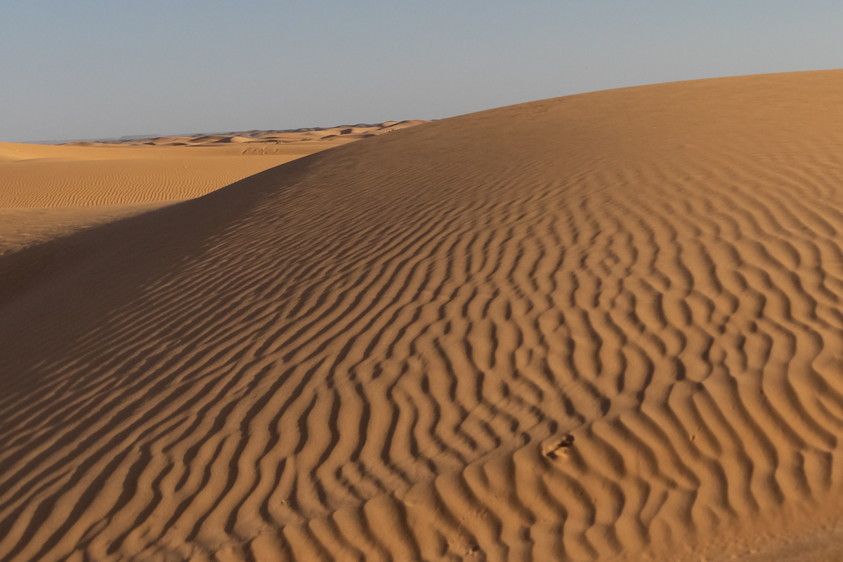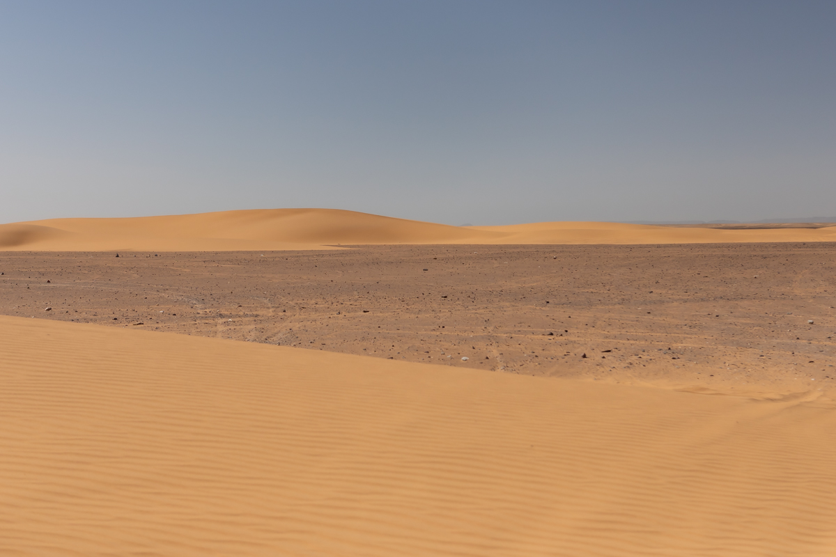 Sahara największa pustynia świata doczekała się wreszcie galerii na mojej stronie. Sahara jest tylko nieco tylko mniejsza od powierzchni Europy i niemal 29 razy większa od powierzchni Polski! Wbrew utartej opinii Sahara to nie tylko teren z piaszczystymi wydmami. Taki obraz przedstawia się nam zawsze pokazując zdjęcia z Sahary. Tymczasem tylko jej niewielka część jest taka piaszczysta jak pokazują to media, bez roślin z przesypywanym przez wiatr piaskiem. Pozostała powierzchnia to kamieniste lub żwirowe tereny ze skąpo porośniętą roślinnością. Rozumiem autorów zamieszczających takie zdjęcia, przedstawiające piaszczyste pustynne tereny, bo to bardzo inne, odmienne i piękne obrazy pustyni. Światło o wschodzie i o zachodzie słońca maluje przed mani przepiękne obrazy, których na żwirowych płaskich powierzchniach się nie zaobserwuje. Tak, więc trochę komercyjnie zbudowałem swoją galerię pokazującą tradycyjne piaszczyste kadry, przepełnione słońcem, ciepłymi kolorami, piaszczyste wydmy i załamujące się na nich światło. Niesamowity spektakl, który trzeba było uwiecznić. Póki co obrazuje to pierwsze 36 zdjęć w tej galerii. Ale, aby oddać to jaka jest różnorodna Sahara dodałem mniej ciekawych, kolejnych 24 zdjęć. Tu widać już prozę życia i nie ma nic z fascynacji kształtami, kolorami prócz przerażających, ogromnych przestrzeni wypalonych słońcem. Trzeba też dopowiedzieć, że widziałem skrawek tej największej pustyni świata, ale dobrze reprezentujący cały obraz Sahary. Sprawdziłem na mapie satelitarnej i te uwiecznione piękne piaskowe tereny z początku galerii to tak naprawdę duża wydma piaskowa, o szerokości około 5 kilometrów i długości około 20 kilometrów. Otoczona jest kamienistymi, żwirowymi terenami. Tam dotarliśmy tak naprawdę dla wróbla pustynnego, którego udało się obserwować, no i wykonać oczywiście zdjęcia do powstania galerii tego pięknego ptaka na mojej stronie.