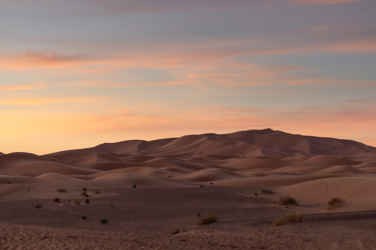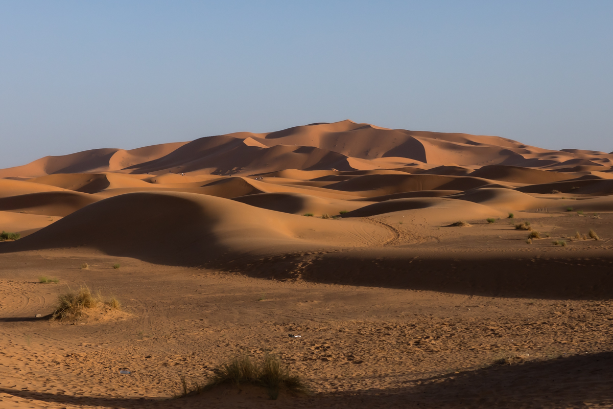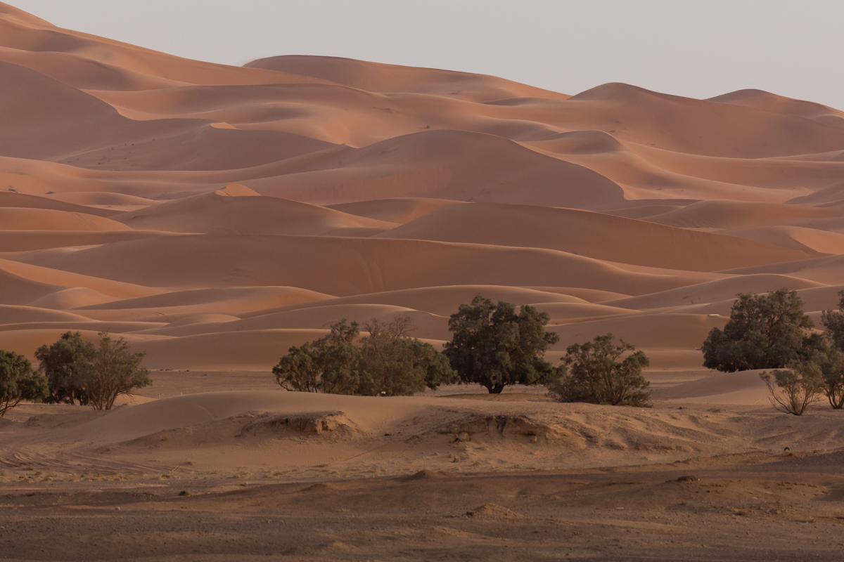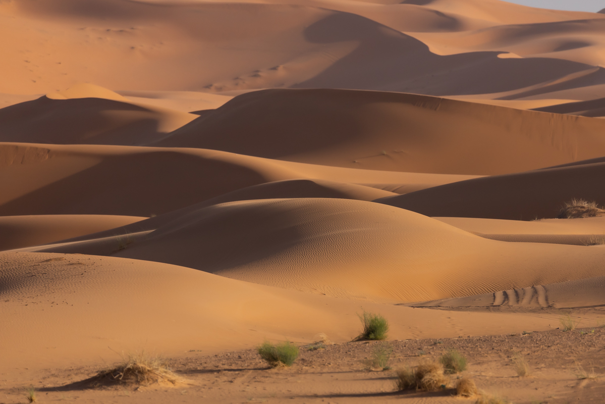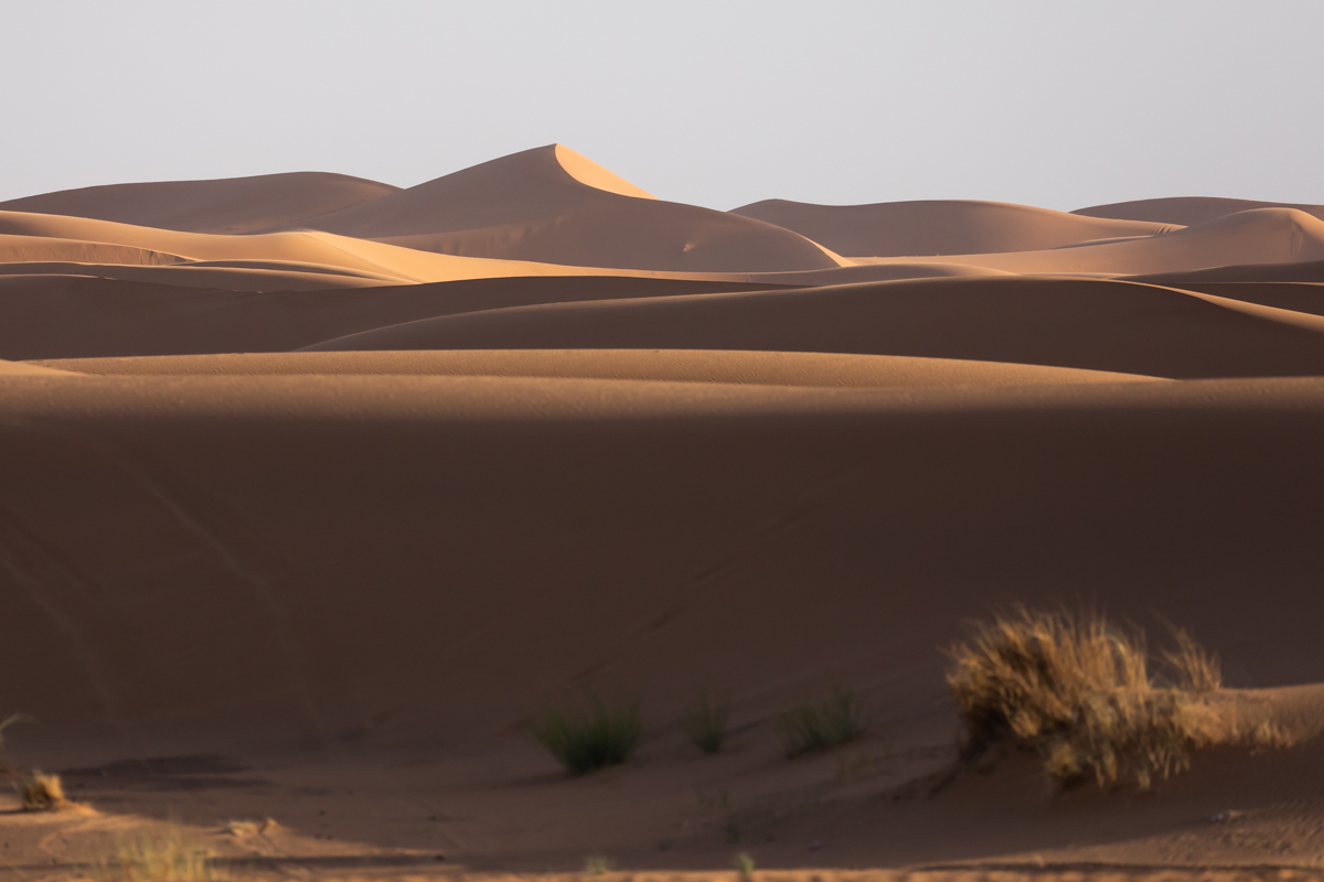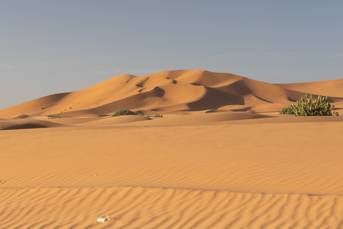 Sahara największa pustynia świata doczekała się wreszcie galerii na mojej stronie. Sahara jest tylko nieco tylko mniejsza od powierzchni Europy i niemal 29 razy większa od powierzchni Polski! Wbrew utartej opinii Sahara to nie tylko teren z piaszczystymi wydmami. Taki obraz przedstawia się nam zawsze pokazując zdjęcia z Sahary. Tymczasem tylko jej niewielka część jest taka piaszczysta jak pokazują to media, bez roślin z przesypywanym przez wiatr piaskiem. Pozostała powierzchnia to kamieniste lub żwirowe tereny ze skąpo porośniętą roślinnością. Rozumiem autorów zamieszczających takie zdjęcia, przedstawiające piaszczyste pustynne tereny, bo to bardzo inne, odmienne i piękne obrazy pustyni. Światło o wschodzie i o zachodzie słońca maluje przed mani przepiękne obrazy, których na żwirowych płaskich powierzchniach się nie zaobserwuje. Tak, więc trochę komercyjnie zbudowałem swoją galerię pokazującą tradycyjne piaszczyste kadry, przepełnione słońcem, ciepłymi kolorami, piaszczyste wydmy i załamujące się na nich światło. Niesamowity spektakl, który trzeba było uwiecznić. Póki co obrazuje to pierwsze 36 zdjęć w tej galerii. Ale, aby oddać to jaka jest różnorodna Sahara dodałem mniej ciekawych, kolejnych 24 zdjęć. Tu widać już prozę życia i nie ma nic z fascynacji kształtami, kolorami prócz przerażających, ogromnych przestrzeni wypalonych słońcem. Trzeba też dopowiedzieć, że widziałem skrawek tej największej pustyni świata, ale dobrze reprezentujący cały obraz Sahary. Sprawdziłem na mapie satelitarnej i te uwiecznione piękne piaskowe tereny z początku galerii to tak naprawdę duża wydma piaskowa, o szerokości około 5 kilometrów i długości około 20 kilometrów. Otoczona jest kamienistymi, żwirowymi terenami. Tam dotarliśmy tak naprawdę dla wróbla pustynnego, którego udało się obserwować, no i wykonać oczywiście zdjęcia do powstania galerii tego pięknego ptaka na mojej stronie.