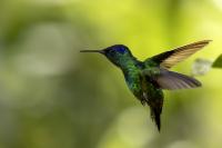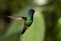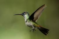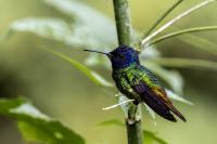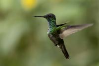 Według książki Milesa McMullana „The Guide to the Hummingbirds” na świecie żyje od 330 do 360 gatunków kolibrów i aż 129 gatunków z nich w Ekwadorze. Kolibry występują od Alaski w Ameryce Północnej po południe Ameryki Południowej. A więc na dwóch potężnych kontynentach, a na niewielkim w porównaniu z tym obszarem, powierzchni Ekwadoru jest tam ponad 30 procent gatunków kolibrów. Są rzeczywiście niemal wszędzie w Ekwadorze, a przynajmniej podczas całego naszego pobytu, dało się je codziennie zaobserwować. Przydrożne restauracje prawie zawsze mają poidełka kolibrowe. W oczekiwaniu na posiłek nigdy się nie nudziliśmy bo w tym czasie zawsze coś się działo przy karmnikach i powstawały zdjęcia. Kontakt z naturą jest tak bliski, że w jednym z takich miejsc zrobiliśmy sobie przerwę na obiad i jedząc zupę nieopodal poidełek kolibrowych, jeden z kolibrów usiadł mi na przedramieniu i obserwował co robię. Niesamowite spotkanie, niesamowity kontakt z przyrodą.  Jeszcze w innym miejscu stoję na wprost poidełka dla kolibrów, niemal w bezruchu próbując zdobyć dynamiczne zdjęcie kolibra, podczas gdy inny chciał sprawdzić czystość mojego ucha. Zapewniam, że to niemiłe uczucie słyszeć centymetr, dwa od ucha świst jego piór i mieć świadomość, że wsunie do ucha swój długi dziób. Trzeba się powstrzymać od odruchu, jaki towarzyszy w takiej sytuacji w przypadku komara, czy muchy, a więc machnąć energicznie ręka. To mogło by być śmiertelne dla kolibra. Wystarczy energicznie ruszyć głową i ptak odleci. Trzymając w takich miejscach w ręce kwiat, można liczyć, że koliber na niej usiądzie i sprawdzi, czy nie ma tam czasami smacznego nektaru. Nakręciliśmy takie krótkie filmy i wysłaliśmy je do Polski „z pozdrowieniami” z Ekwadoru. Czy może być piękniejsza „pocztówka” z pozdrowieniami z wakacji? Mimo bliskiego kontaktu z kolibrami fotografowanie do łatwych nie należy. Nie myślę  tu o zdjęciach pijących kolibrów z plastikowych pojemników lub siedzących na nich. Myślę o dynamicznych zdjęciach w locie tych niesamowitych podniebnych akrobatów. Samo fotografowanie warto, aby było poprzedzone krótką obserwacją gatunków tam występujących. Często się zdarza, że któryś z nich jest gatunkiem dominującym, bardzo terytorialnym i zachowuje się w charakterystyczny, przewidywalny sposób. Te gatunki zawsze łatwiej fotografować. Podlatują one czasami na kilka centymetrów od poidła, zawisają na sekundę, dwie, trzy w powietrzu, upewniają się, że jest bezpiecznie, po czym zaczynają swój słodki posiłek. Ten moment to sytuacja w której mogą powstać dynamiczne zdjęcia. Podobnie jak z kwiatami usytuowanymi w pobliżu dotychczasowych poideł. Ptaki zawisają przy nich i spijają sztucznie zostawiony tam słodką wodę. To te przewidywalne gatunki. Są jednak taki, które nagle wylatują z krzewów prosto do poidła, posilają się i tak szybko jak się pojawiły, tak szybko znikają. Z tymi człowiek prawie nie ma szans. Podobnie jak powietrzne kłótnie, potyczki kolibrów. Są tak szybkie, tak synchroniczna poruszanie się dwóch osobników, że można poprzestać tylko na obserwacji. Sfotografowanie takiej kłótni to czysty przypadek. Ostatecznie udało się sfotografować 41 gatunków kolibrów podczas całej wyprawy do Ekwadoru. Wszystkie mają zamieszczony niniejszy tekst, a jedynie gigancik i Górzak fioletowogłowy, mają tekst rozszerzony o indywidualne informacje. Zaznaczyłem to jako podwójne T-„TT”.