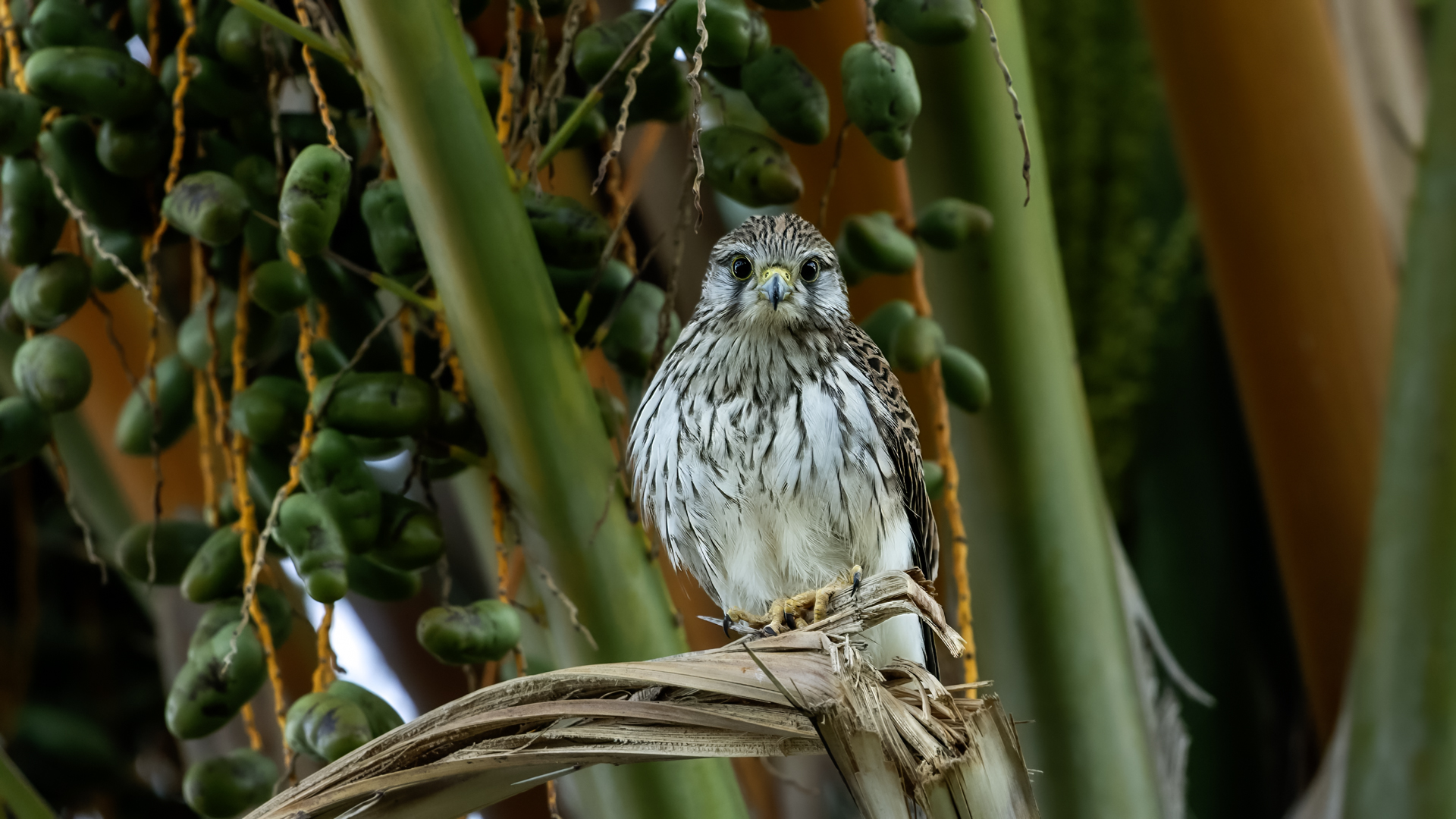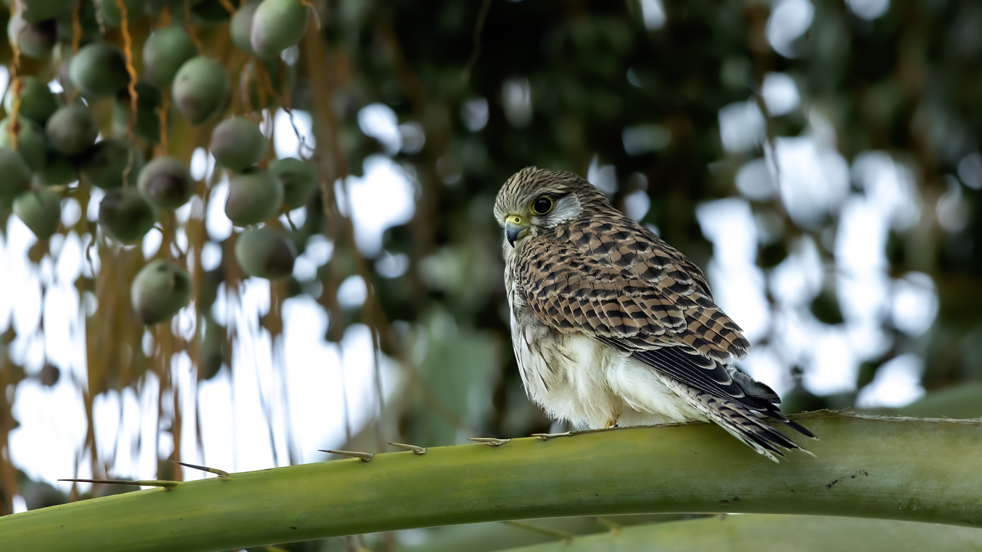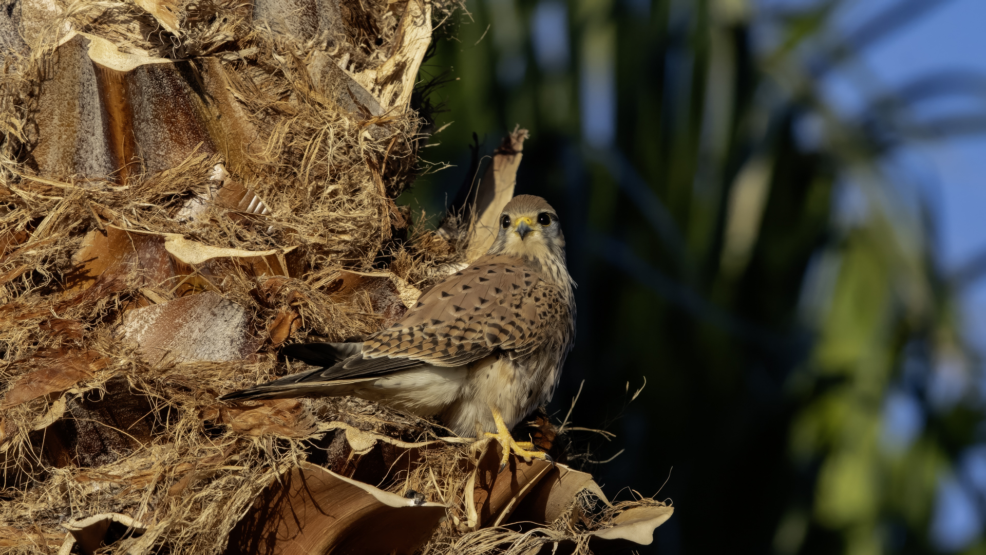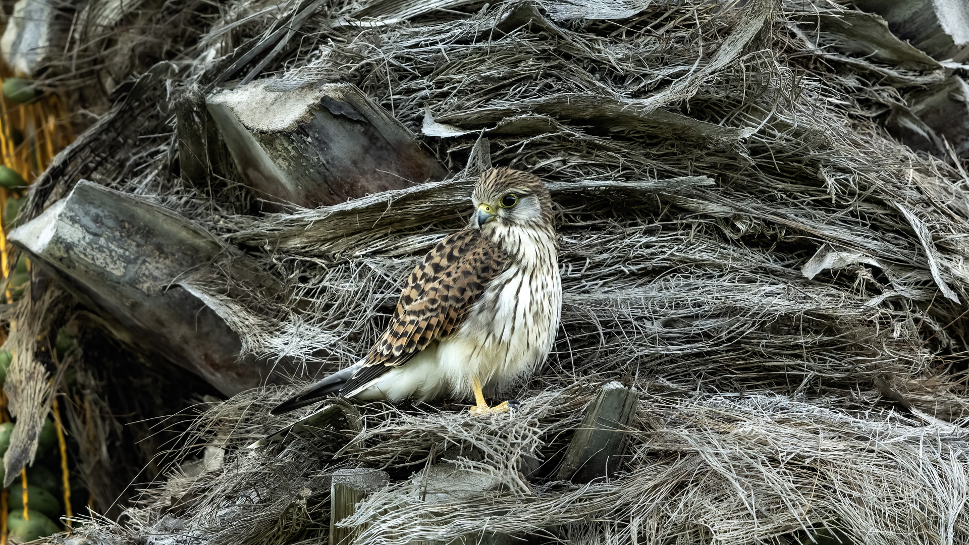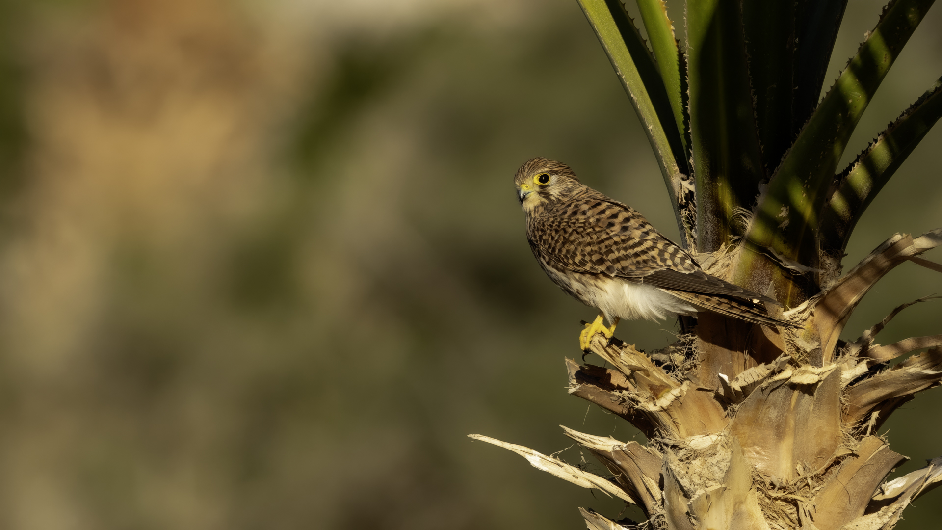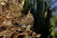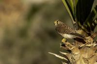 Niemałe zaskoczenie wynikające ze spotkania tego ptaka na Fuerteventurze. Niemałe z powodu odległości i miejsca z jakiego pustułka dała się sfotografować. W dość ruchliwym miejscu siedziała na palmie wypatrując owadów w trawie. Co jakiś czas lotem nurkującym spadała na trawnik, po czym szybko odlatywała. Można było ją fotografować podobnie jak naszą sóweczkę. Wracałem kilkakrotnie w to miejsce i pustułeczka zawsze była w okolicy kilkunastu palm. Zawsze można było ją tam znaleźć, doskonale wtopioną w tło pnia palmy.