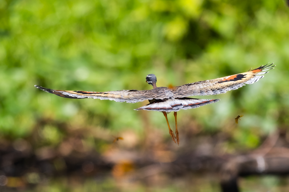Który fotograf nie marzy o zrobieniu zdjęcia słonecznicy i to oczywiście w locie, wyjątkowo od tyłu lecącego ptaka. Słonecznica występuje od południowego Meksyku, na południe, aż po północną część Boliwii w Ameryce Południowej. Próbowaliśmy ją znaleźć na Kostaryce, ale nie udało się. Ptak zamieszkuje lasy tropikalne i jest dość niewielki, bo wagą nie przekracza 300 gramów. To są dwie trudności aby w ogóle mieć jakiekolwiek zdjęcie słonecznicy, ale jeszcze nie najważniejsze w pokazaniu całego piękna i uroku tego ptaka. Żerujący ptak, jest dość niepozorny, w niczym nie tak wyjątkowy, aby przedkładać go nad inne bardziej spektakularne gatunki do fotografowania. Dopiero w locie słonecznica obserwowana od tyłu, oszałamia swym pierzastym, kolorowym ornamentem. Spotkanie ze słonecznicą trwało kilkanaście sekund, ale tym razem udało się. Płynęliśmy łodzią rzeką Napo w dorzeczu Amazonii. Nagle po prawej stronie na pniu zobaczyliśmy słonecznicę. Powstało pierwsze zdjęcie słonecznicy stojącej na zwalonym pniu drzewa. Powoli zbliżaliśmy się do niego, gdy ten nagle odleciał na odległość kilkudziesięciu metrów i skrył się w krzewach porastających brzeg. Łódź to dość niestabilne miejsce do wykonywania dynamicznych zdjęć bez statywu odlatującego ptaka. A jednak się udało, z całej serii która powstała w sekundę odlotu ptaka, kilka jest ostrych i mogła powstać wreszcie galeria słonecznicy, tak długo wyczekiwana przeze mnie. Nie jest ona galerią rozbudowaną, ale zawiera to jedno, bardzo trudne do wykonania zdjęcie – słonecznicy w locie ukazujące całe piękno i odmienność tego gatunku ptaka od innych ptaków.