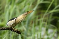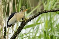Bączek, czyli najmniejszy przedstawiciel rodziny czaplowatych w Polsce. Masa jego ciała to około 150 gramów, a rozpiętość skrzydeł około 55 centymetrów. Jak do tego dodamy, że jest w Polsce bardzo rzadko występującym gatunkiem, i do tego skrytym, to stworzenie takiej galerii jaką Wam prezentuję, wydaje sie wręcz niemożliwe, przynajmniej dla mnie przy moich zasobach czasowych. A jednak udało się! A wszystko, jak to często bywa z moim fotografowaniem, dzięki odkryciu i udostępnieniu przez innych życzliwych miłośników przyrody takich niezwykłych miejsc. Jacek, serdecznie pozdrawiam i dziękuję za zaproszenie. Zaproszenie na niepozorną ławeczkę w Twojej bączkowej czatowni na długo zostanie mi w pamięci. Mam świadomość jak wielką trzeba mieć wiedzę, cierpliwość, doświadczenie i ile trzeba poświęcić czasu, aby stworzyć warunki do takiego fotografowania. Tym bardziej dziękuję, bo tu, jeśli chodzi o emocje, nie było „jak na grzybach”, a karty pamięci były pełne. Być tak blisko takich ptaków, to nie do opisania, a jedynie prezentowane zdjęcia mogą chyba we właściwy sposób to oddać. Do tego wyraźny dymorfizm płciowy tych ptaków wprowadza dodatkowe urozmaicenie do i tak już ciekawych ujęć inicjujących galerię bączka na mojej stronie. Powstałe zdjęcia stworzyły jedną z ciekawszych galerii na mojej witrynie. Nie ma co - galeria bączka, jako nowy gatunek i to z taką zawartością portfela startowego, trafia do nowości, gdzie chyba na długo pozostanie zarówno z racji pozytywnych wrażeń i emocji jakie towarzyszyły fotografowaniu, jak i ze względu na odbiór prezentacji zdjęć tego ptaka. Ale zobaczcie sami- zapraszam...