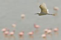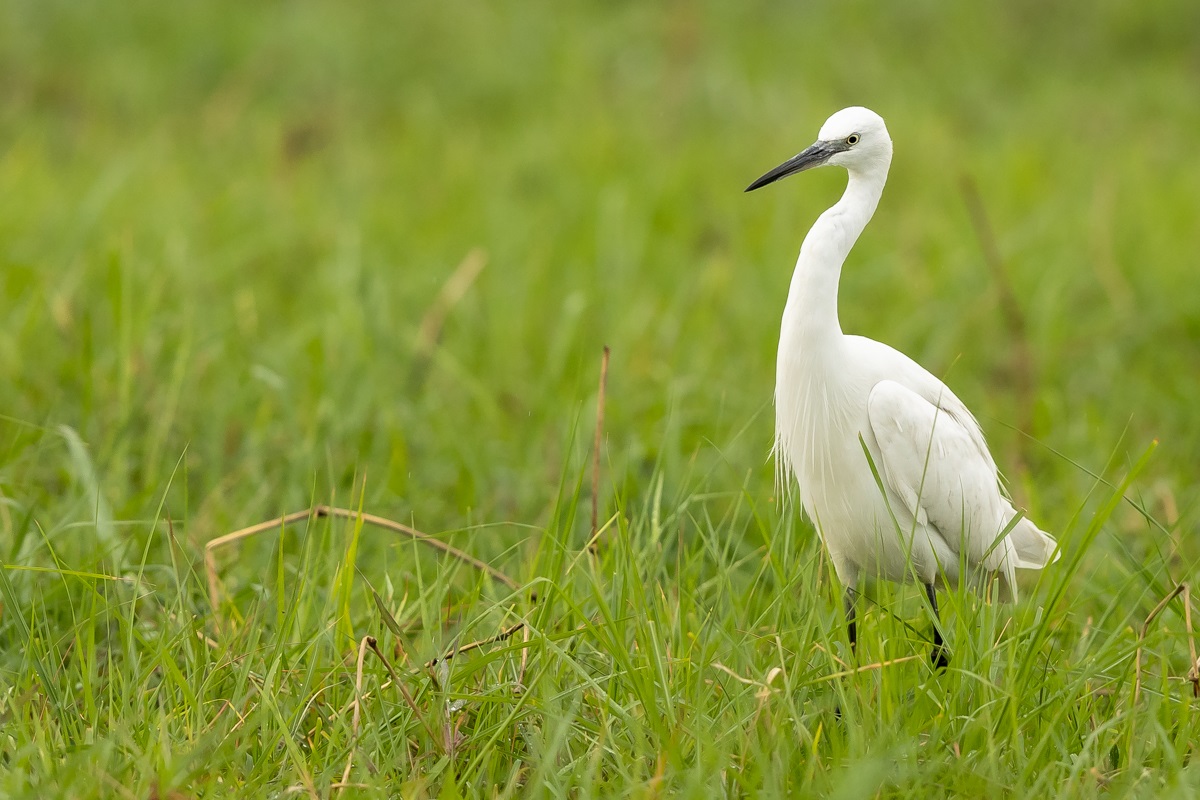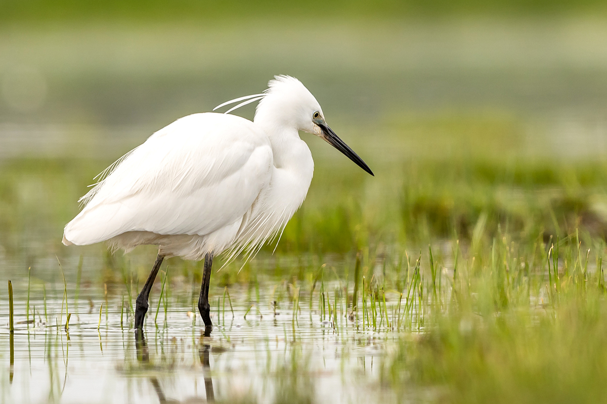 Podobnie jak tłumaczenia z angielskiego strepeta, nazwa czapli nadobnej to czapla mała. I rzeczywiście jest znacznie mniejsza od czapli białej, siwej, bo praktycznie raz mniejsza. Waga czapli nadobnej to około 0,5 kg przy rozpiętości skrzydeł około metra. Oglądając cudze galerie fotograficzne poszczególnych gatunków czapli (białej, nadobnej) zwraca się uwagę na różnice w wyglądzie. Zestawienie na jednym zdjęciu tych dwóch gatunków przedstawia jednoznacznie różnice pomiędzy nimi. Zdjęcia są wykonane w trochę nieatrakcyjnym, „przepalonym świetle” i z dość znacznej odległości, ale emocje jakie budzi ten gatunek u mnie oraz ze względu na rzadkość tego gatunku nie mogłem odmówić sobie zaprezentowanie Wam go. W Polsce czaple nadobne należą do rzadkości i są bardzo płochliwe. Prezentowane zdjęcia były wykonane w trakcie warsztatów fotograficznych z żołnami. Tak jak pisałem przy opisie tego gatunku, nie byłem ustawiony tak, jak można by było to zoptymalizować, ale rekompensata w postaci wykonanych zdjęć stadka czapli nadobnej, aż nadto to zrekompensowała. Fotografując żołny, z racji ich dynamicznego lotu, jest się skoncentrowanym na niewielkim fragmencie pleneru, resztę ogranicza maskująca czatownia. Gdyby nie zerkniecie przez prawie ramię i przestawienie zestawu fotografującego o 90 stopni nie powstały by prezentowane zdjęcia. Czaple dały się podziwiać niecałą godzinę. Podziwiać dlatego, że są w odbiorze estetycznym, przynajmniej dla mnie, przepiękne. Śnieżnobiały kolor, z „kosmykiem” godowych delikatnych piór, powolne, subtelne, skupione ruchy czapli stwarzają wrażenie pewnej doskonałej sterylności tego ptaka. Miejmy nadzieję, że kolejne zdjęcia w pełni oddadzą urok i piękno tej czapli, zwłaszcza, że jest to możliwe w naszym kraju. Do tego będzie poza samą czaplą potrzebne poranne światło i koniecznie zmniejszenie odległości podczas fotografowania. Czas pokaże, czy uda się właściwie wyeksponować ten gatunek…