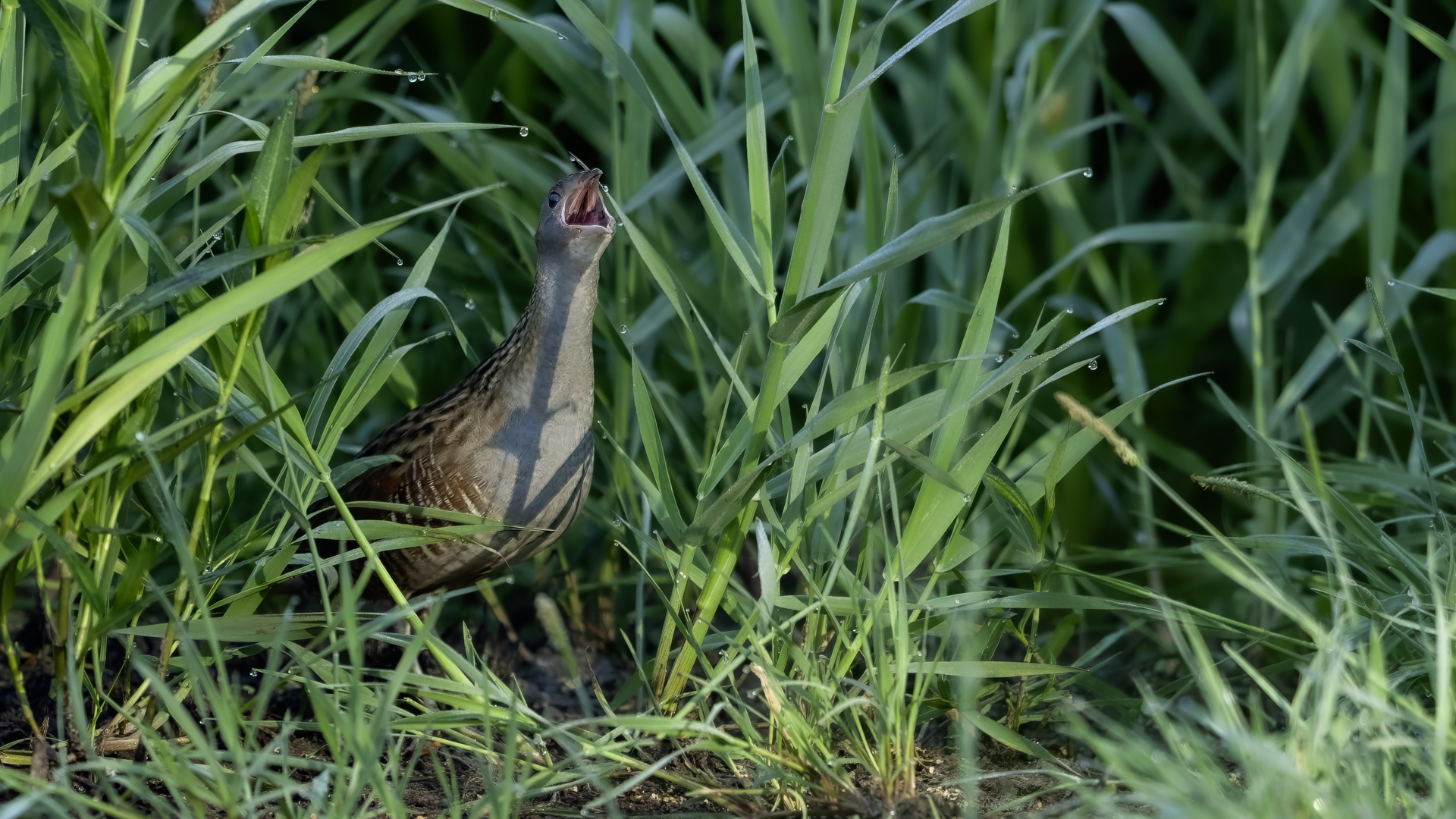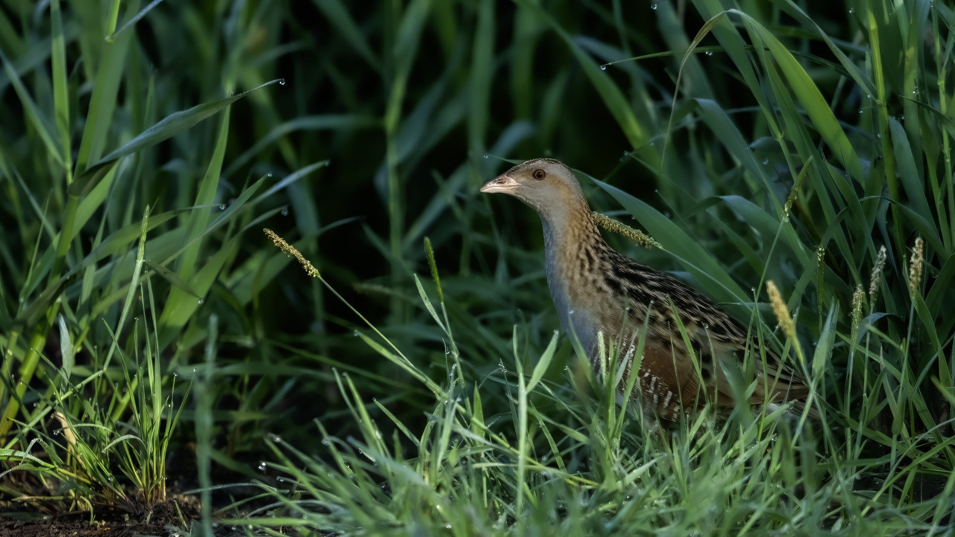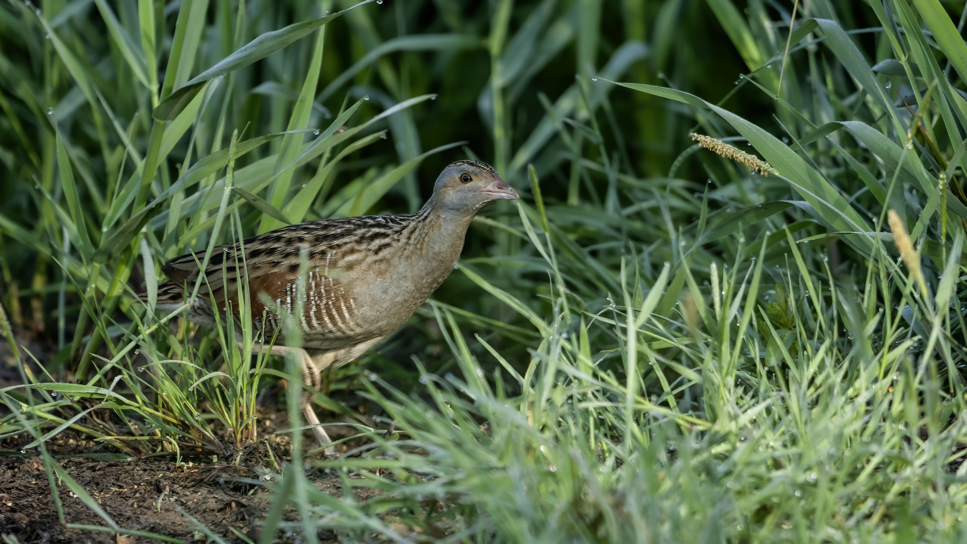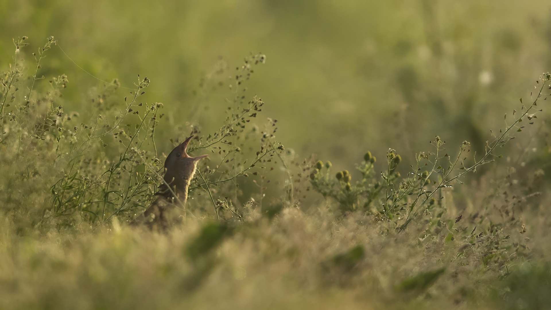 Od rana uganiałem się za słowikiem szarym i nic z tego nie wyszło. Potem za cierniówką i efekt był podobny, ale w oddali słychać było znajomy odgłos derkacza. Nie ma co, może się uda, bo to by było moje dopiero drugie spotkanie z tym pięknym, ale jakże skrytym ptakiem. Trochę cierpliwości i większe "trofeum" tego poranka niż się spodziewałem. Derkacz nawoływał dosłownie z kilku metrów nieopodal, więc z nagraniem dźwięku znów nie było problemu. Niestety nieopodal przebiegała droga i znów nagranie jest nieco zakłócone odgłosami cywilizacyjnymi. Ale wiadomo, zdjęcia mają priorytet i skupiłem się na obserwacji łąki. Derkacz kilkukrotnie przebiegał przez drogę, raz wzbił się w powietrze- powstało kilka ciekawych zdjęć, jakże odmiennych od dotychczasowych w galerii tego gatunku. Kilka zdjęć, ale zdjęć które radykalnie zmieniają dotychczasowy portfel zdjęciowy derkacza, no i własne nagranie dźwięku prezentowanego ptaka. Nie ma co, derkacz trafia do nowości...