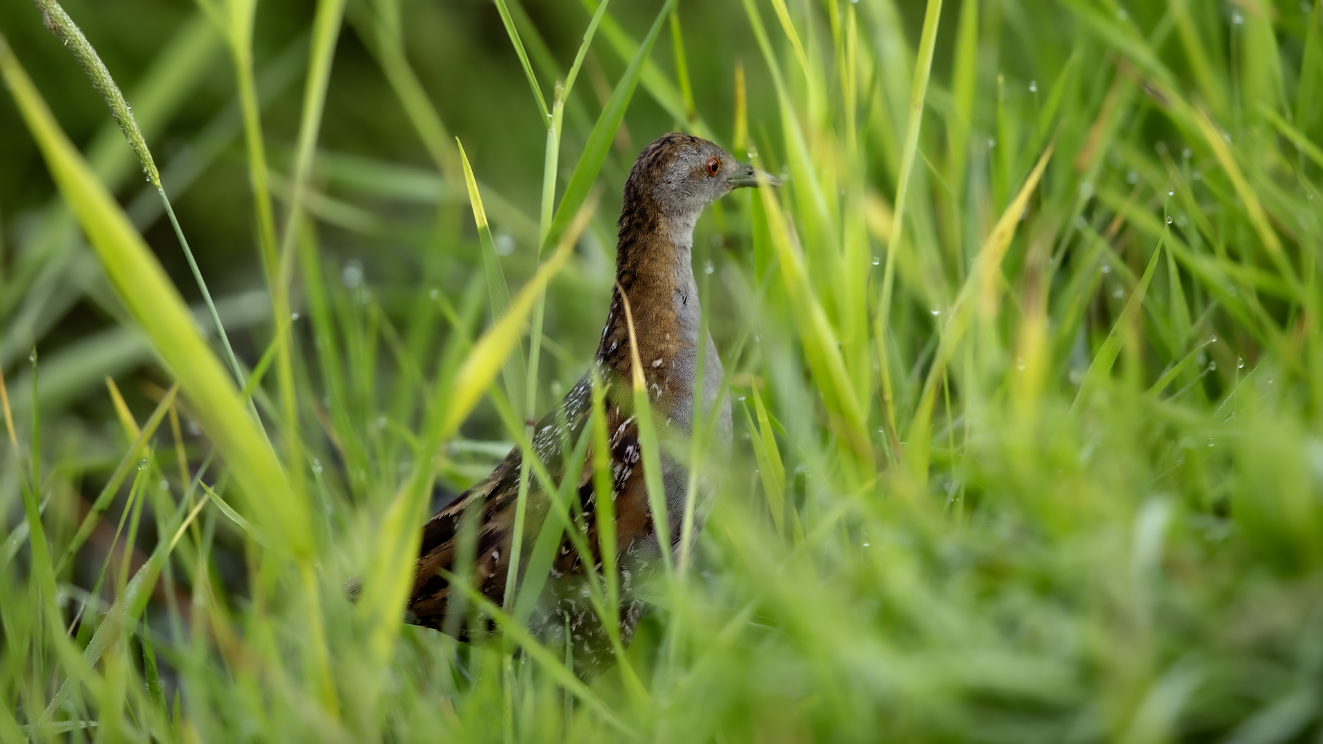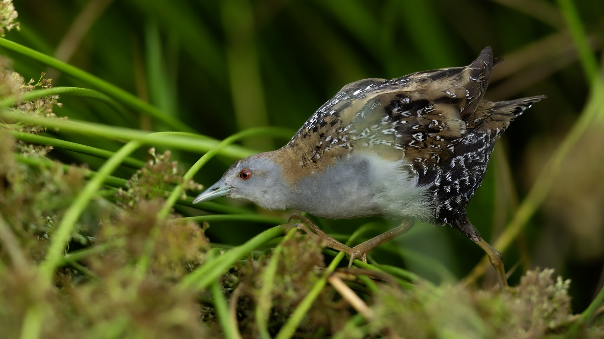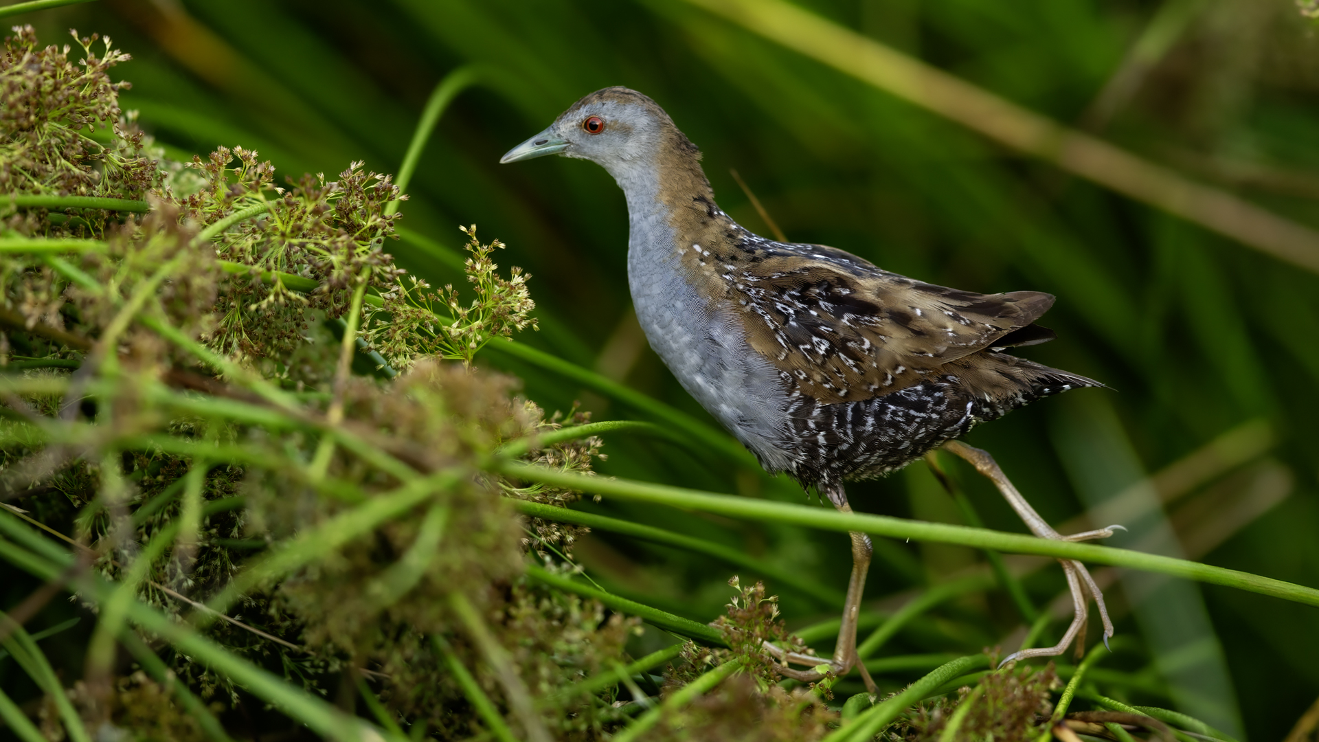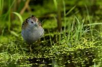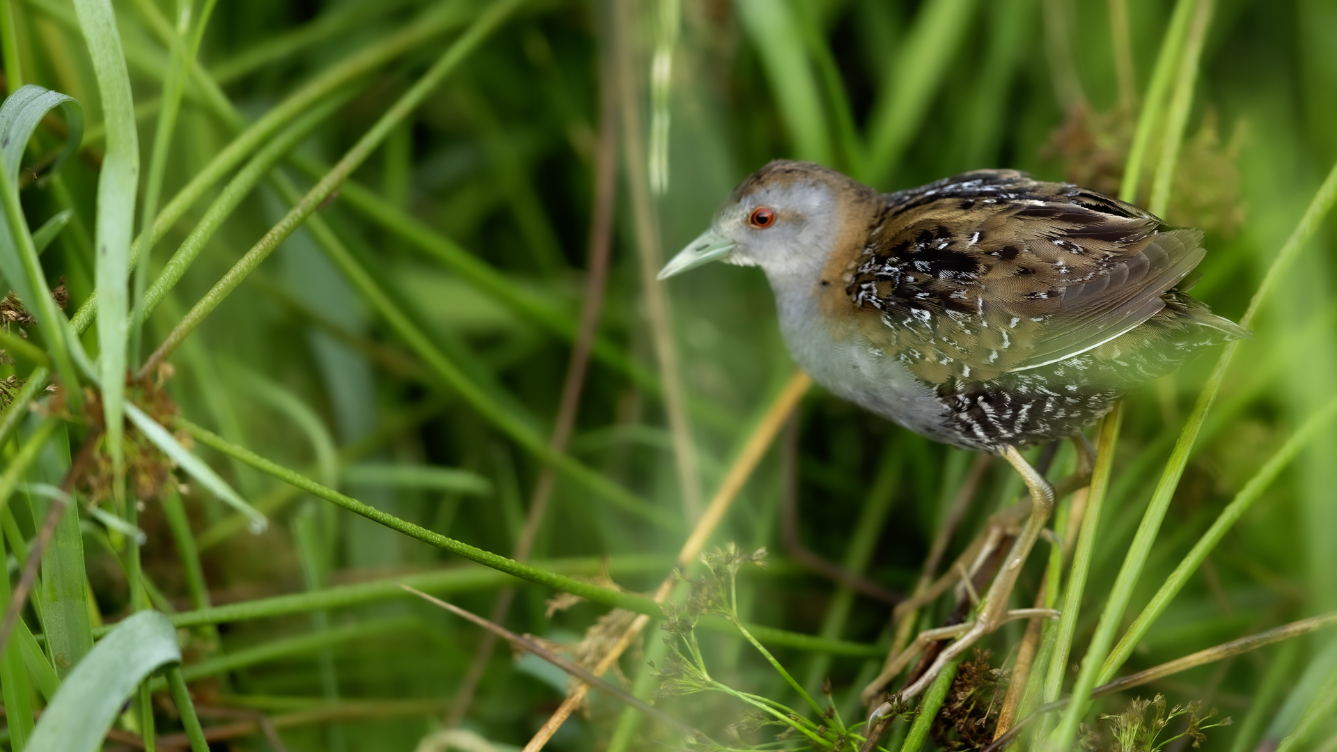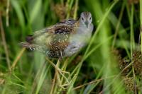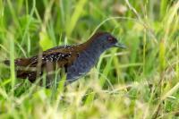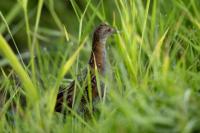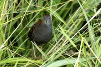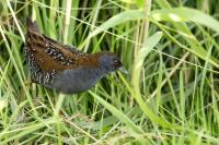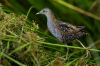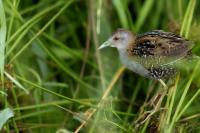 To dość nietypowe, że w moich zasobach pośród chruścieli występujących w Polsce nie znajdziecie zielonki, a już pojawiła się karliczka. Do zielonki przymierzałem się kilkukrotnie, ale nic z tego nie wyszło. Raz zielonka przemaszerowała praktycznie pod moim obiektywem, ale nie sposób było wykonać zdjęcie 400 mm obiektywem z odległości metra. Zupełnie nie zauważyła, że nieopodal, w odległości kilku metrów w pięknej scenerii trzcin, pełzają zielonkowe przysmaki. Zielonka mimo, że nie jest powszechnie występującym ptakiem w Polsce, to jednak jej populację szacuje się na ponad 1000 osobników. Potwierdzoną obecność karliczki w Polsce datuje się na kilkadziesiąt lat wstecz. Zaliczanie więc jej do fauny polski ma już chyba wymiar historyczny, czy przypadkowy. W ostatnich latach nikomu nie udało się jej zaobserwować, być może też z powodu jej rozmiarów i bardzo skrytego trybu życia. Żyje na podmokłych łąkach i masa jej ciała nie przekracza 55 gramów. Jej niewielkie rozmiary wprawiają w zdziwienie. Kiedy pierwszy raz ją zobaczyliśmy (Jacek, Cezary pozdrawiam) spojrzeliśmy na siebie ze zdziwieniem, z powodu jej filigranowej sylwetki. Przemykała wśród niewielkich kęp traw, czasami znikając za nimi. Prezentowane zdjęcia zrobione zostały w Holandii, gdzie jest wielką rzadkością. W miejscu możliwej obserwacji karliczki pojawiali się liczni holenderscy obserwatorzy ptaków, co jest potwierdzeniem sensacyjności jej pojawienia się w tym kraju. Ptaki (bo na prezentowanych zdjęciach jest i samiec i samica) pojawiały się co kilka godzin. Nie zawsze udało się zrobić satysfakcjonujące zdjęcia, bo bywało, że karliczka dosłownie przebiegała wśród roślinności, co trwało dosłownie sekundę, dwie. Trzeba niebywałego refleksu i szczęścia aby wówczas zrobić udane, ostre zdjęcie. Dopiero, gdy spokojnie żerowała i czasami zamierała w bezruchu, udało się wykonać satysfakcjonujące zdjęcia, zakładając, że trawy nie przesłoniły ptaka. Raz nawet przeleciała nad wodą 4-6 metrów, ale na kilka prób fotografowania, które trwały po kilka godzin, był to jeden taki przypadek i nie sposób było to przewidzieć i wykonać wówczas zdjęcie karliczki w locie. Rozpiętość jej skrzydeł wynosi około 35 centymetrów. Karliczki występują w kilku podgatunkach, w Europie, Azji, Australii, Afryce, Nowej Zelandii i na Madagaskarze. W Europie jednak to wielka rzadkość i tym bardziej cieszy fakt, że udało się ją sfotografować, i to w takiej ilości zdjęć oddających jej środowisko naturalne. Odzywała się bardzo rzadko i trudno było o nagranie sekwencji dźwiękowej ptaka. Niemniej jednak powstał zapis dźwięku, ale nie jestem pewien czy to właśnie odgłos karliczki. Z reguły powstają zdjęcia, a następnie zapis dźwięku, więc nie ma możliwości pomyłki zapisu ścieżki dźwiękowej. Tym razem było inaczej. Postał zapis, a nie widziałem ptaka podczas nagrywania. Na tej niewielkiej przestrzeni występowania karliczki nie było żadnych innych ptaków. Po prawej stronie i na wprost, w głębi, słychać było wodniki. W oddali po lewej stronie zaobserwowaliśmy kropiatkę, bataliona i krwawodzioby. Dźwięk nagrany był na przestrzeni kilkunastu metrów kwadratowych i małe jest prawdopodobieństwo aby występował tam inny ptak. Do mojej galerii trafia więc niezwykle rzadki i trudny do sfotografowania gatunek, i trudno też będzie pewnie przez lata o zmiany w tej galerii. Podczas tego wyjazdu powstały też zdjęcia inicjujące galerię szablodzioba, podróżniczka, czarnowrona, jerzyka i piżmówki.