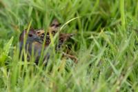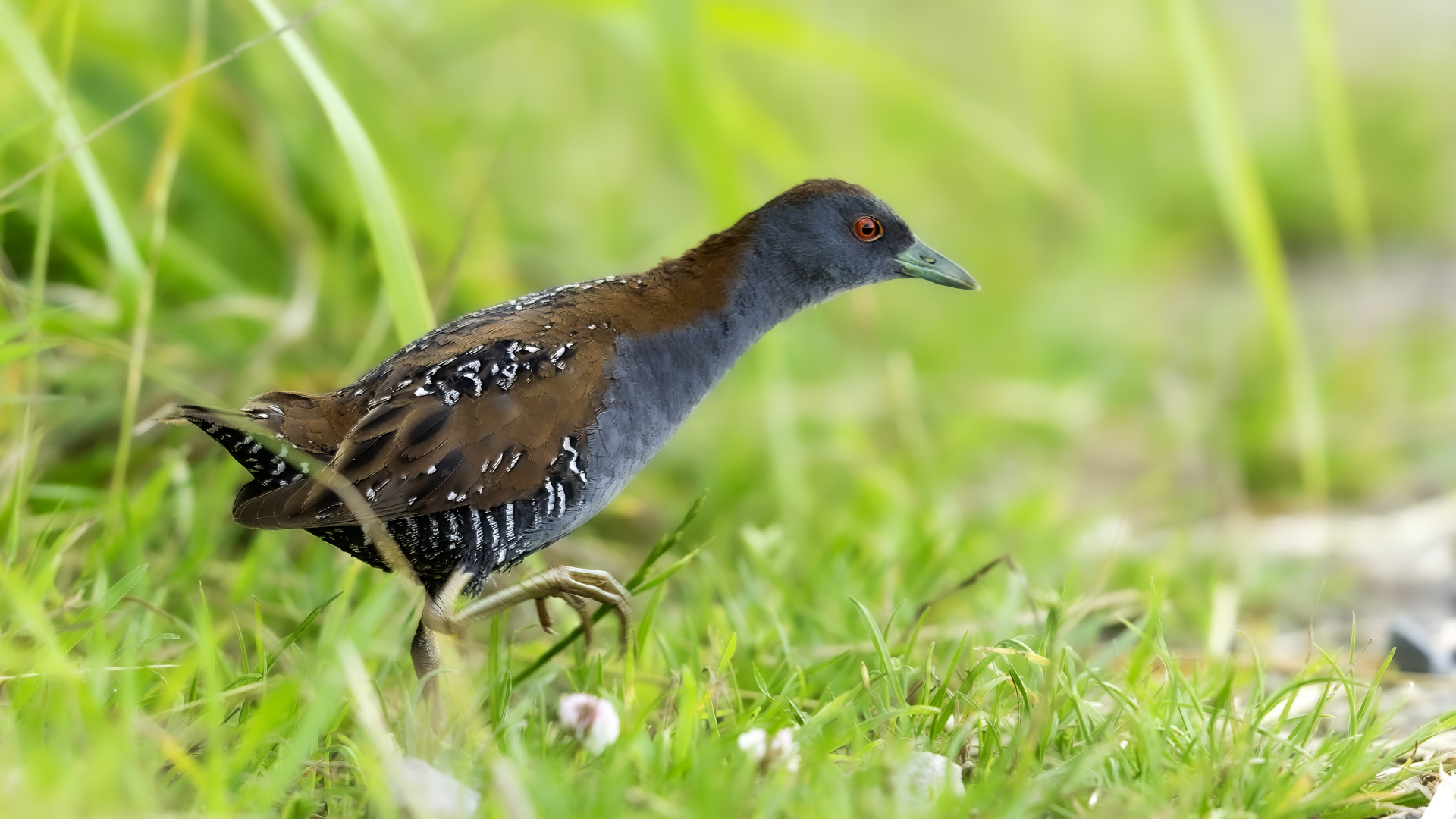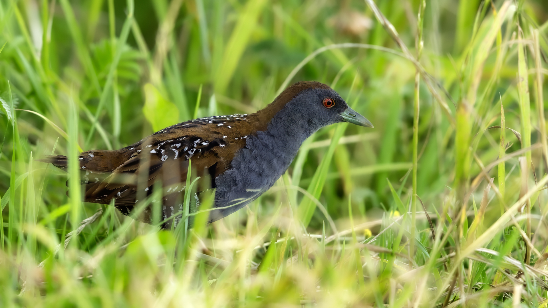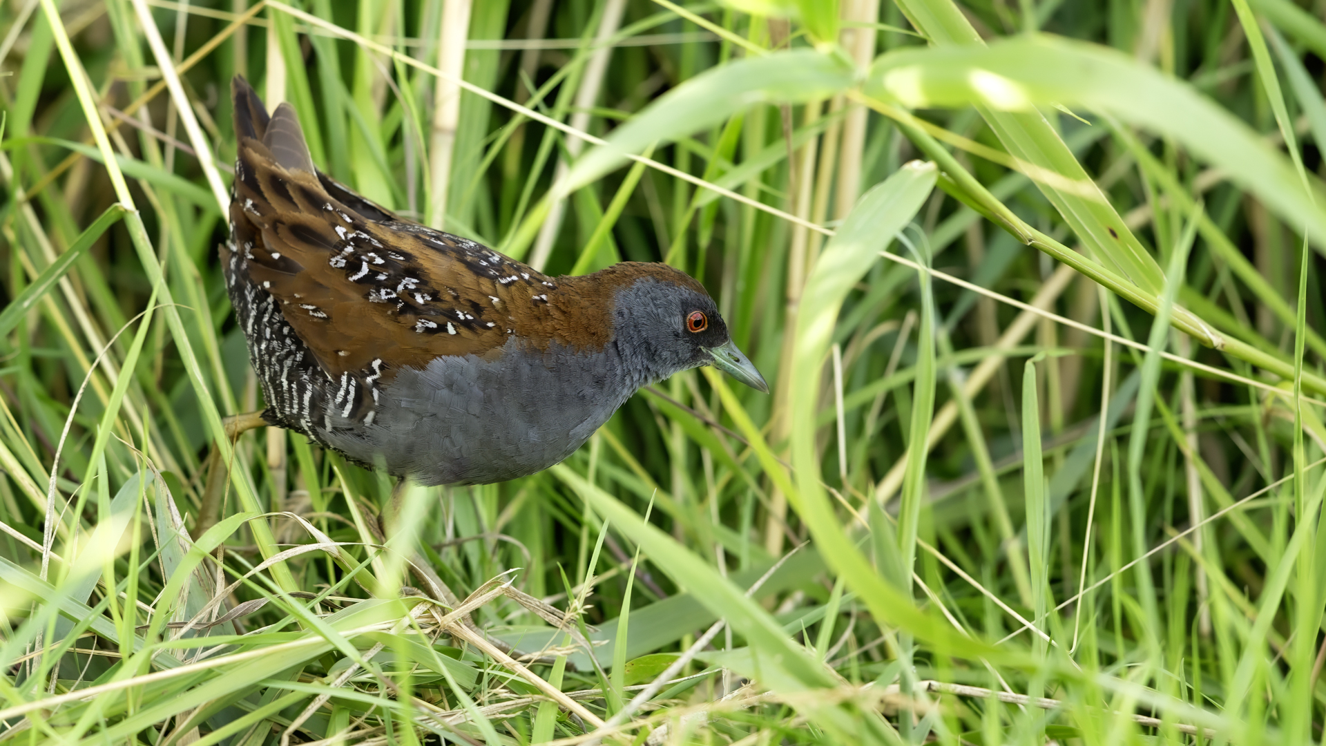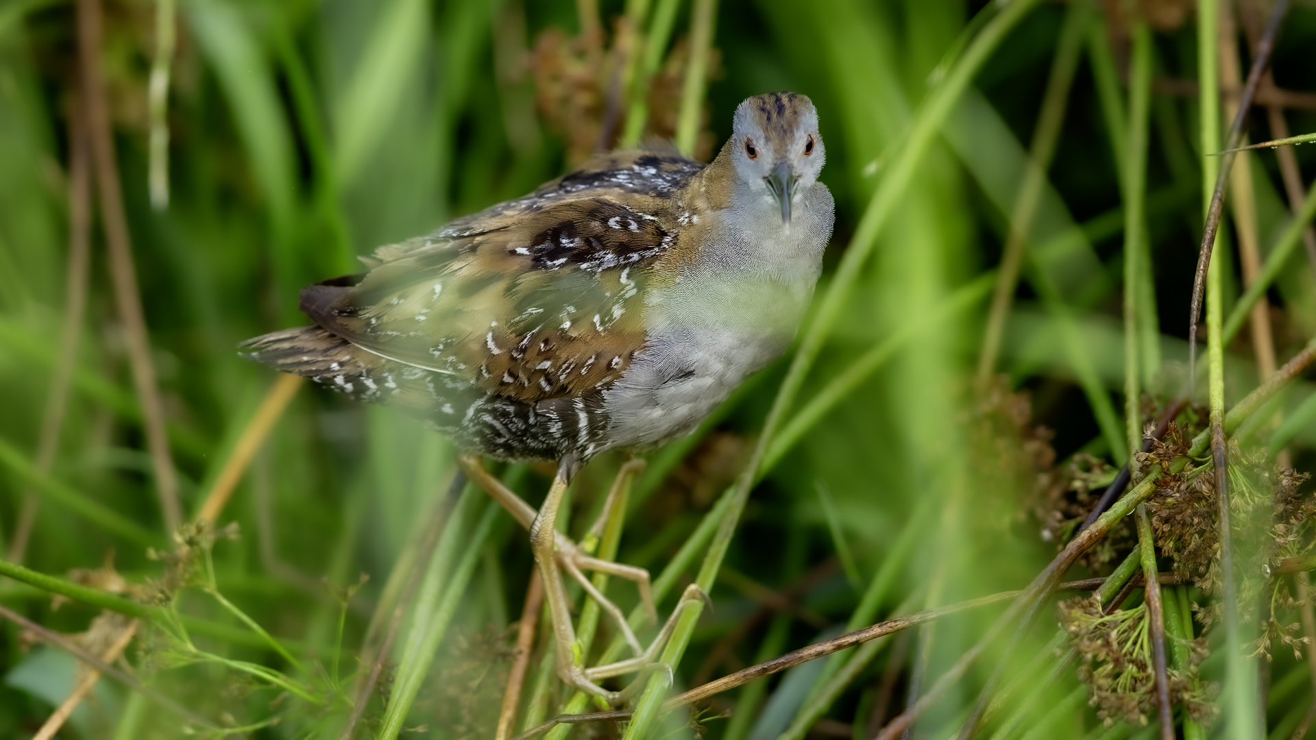 To dość nietypowe, że w moich zasobach pośród chruścieli występujących w Polsce nie znajdziecie zielonki, a już pojawiła się karliczka. Do zielonki przymierzałem się kilkukrotnie, ale nic z tego nie wyszło. Raz zielonka przemaszerowała praktycznie pod moim obiektywem, ale nie sposób było wykonać zdjęcie 400 mm obiektywem z odległości metra. Zupełnie nie zauważyła, że nieopodal, w odległości kilku metrów w pięknej scenerii trzcin, pełzają zielonkowe przysmaki. Zielonka mimo, że nie jest powszechnie występującym ptakiem w Polsce, to jednak jej populację szacuje się na ponad 1000 osobników. Potwierdzoną obecność karliczki w Polsce datuje się na kilkadziesiąt lat wstecz. Zaliczanie więc jej do fauny polski ma już chyba wymiar historyczny, czy przypadkowy. W ostatnich latach nikomu nie udało się jej zaobserwować, być może też z powodu jej rozmiarów i bardzo skrytego trybu życia. Żyje na podmokłych łąkach i masa jej ciała nie przekracza 55 gramów. Jej niewielkie rozmiary wprawiają w zdziwienie. Kiedy pierwszy raz ją zobaczyliśmy (Jacek, Cezary pozdrawiam) spojrzeliśmy na siebie ze zdziwieniem, z powodu jej filigranowej sylwetki. Przemykała wśród niewielkich kęp traw, czasami znikając za nimi. Prezentowane zdjęcia zrobione zostały w Holandii, gdzie jest wielką rzadkością. W miejscu możliwej obserwacji karliczki pojawiali się liczni holenderscy obserwatorzy ptaków, co jest potwierdzeniem sensacyjności jej pojawienia się w tym kraju. Ptaki (bo na prezentowanych zdjęciach jest i samiec i samica) pojawiały się co kilka godzin. Nie zawsze udało się zrobić satysfakcjonujące zdjęcia, bo bywało, że karliczka dosłownie przebiegała wśród roślinności, co trwało dosłownie sekundę, dwie. Trzeba niebywałego refleksu i szczęścia aby wówczas zrobić udane, ostre zdjęcie. Dopiero, gdy spokojnie żerowała i czasami zamierała w bezruchu, udało się wykonać satysfakcjonujące zdjęcia, zakładając, że trawy nie przesłoniły ptaka. Raz nawet przeleciała nad wodą 4-6 metrów, ale na kilka prób fotografowania, które trwały po kilka godzin, był to jeden taki przypadek i nie sposób było to przewidzieć i wykonać wówczas zdjęcie karliczki w locie. Rozpiętość jej skrzydeł wynosi około 35 centymetrów. Karliczki występują w kilku podgatunkach, w Europie, Azji, Australii, Afryce, Nowej Zelandii i na Madagaskarze. W Europie jednak to wielka rzadkość i tym bardziej cieszy fakt, że udało się ją sfotografować, i to w takiej ilości zdjęć oddających jej środowisko naturalne. Odzywała się bardzo rzadko i trudno było o nagranie sekwencji dźwiękowej ptaka. Niemniej jednak powstał zapis dźwięku, ale nie jestem pewien czy to właśnie odgłos karliczki. Z reguły powstają zdjęcia, a następnie zapis dźwięku, więc nie ma możliwości pomyłki zapisu ścieżki dźwiękowej. Tym razem było inaczej. Postał zapis, a nie widziałem ptaka podczas nagrywania. Na tej niewielkiej przestrzeni występowania karliczki nie było żadnych innych ptaków. Po prawej stronie i na wprost, w głębi, słychać było wodniki. W oddali po lewej stronie zaobserwowaliśmy kropiatkę, bataliona i krwawodzioby. Dźwięk nagrany był na przestrzeni kilkunastu metrów kwadratowych i małe jest prawdopodobieństwo aby występował tam inny ptak. Do mojej galerii trafia więc niezwykle rzadki i trudny do sfotografowania gatunek, i trudno też będzie pewnie przez lata o zmiany w tej galerii. Podczas tego wyjazdu powstały też zdjęcia inicjujące galerię szablodzioba, podróżniczka, czarnowrona, jerzyka i piżmówki.