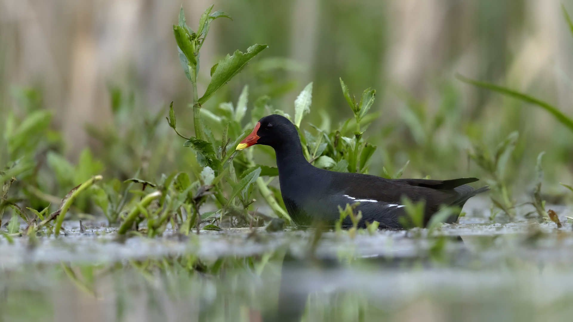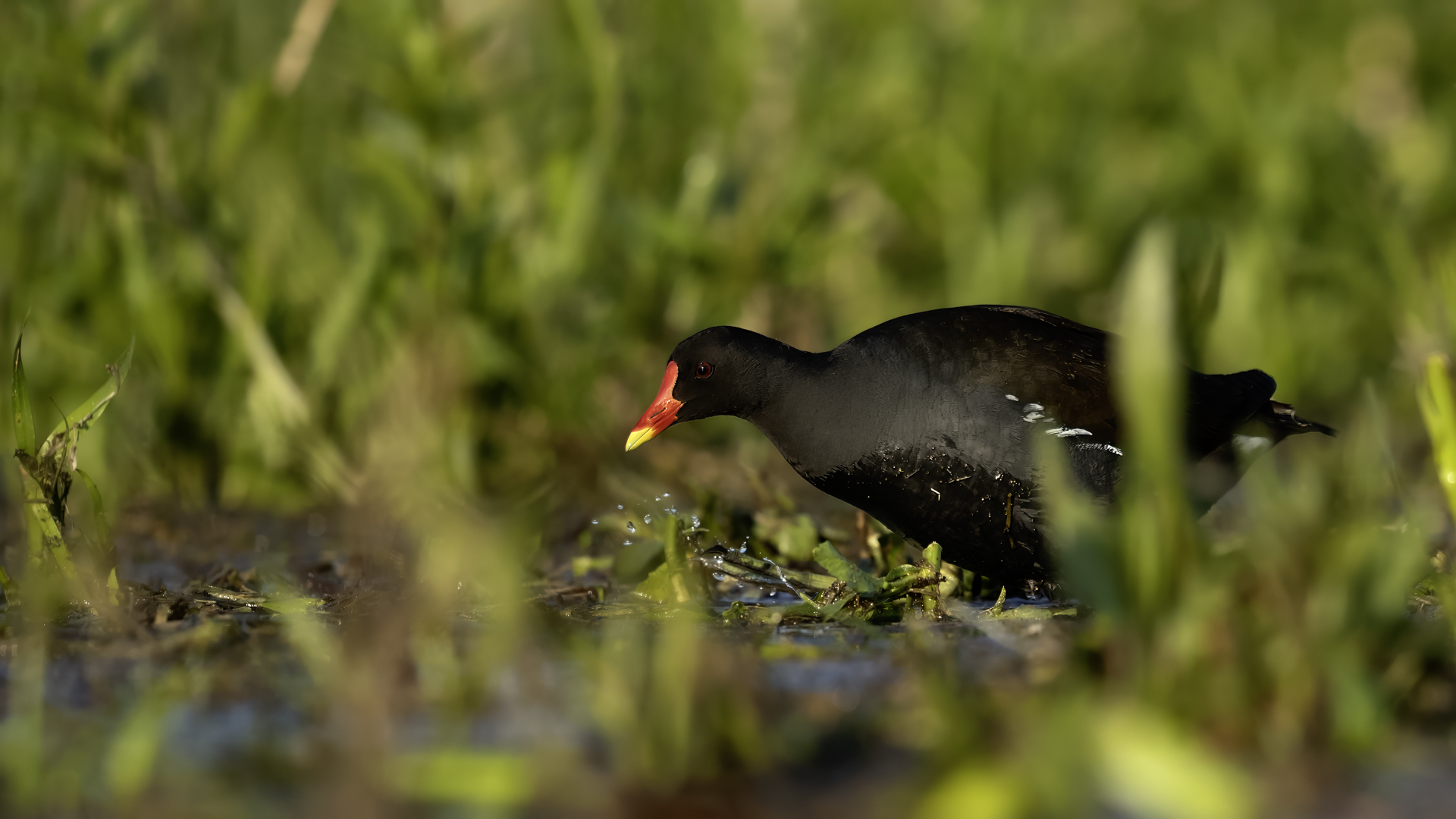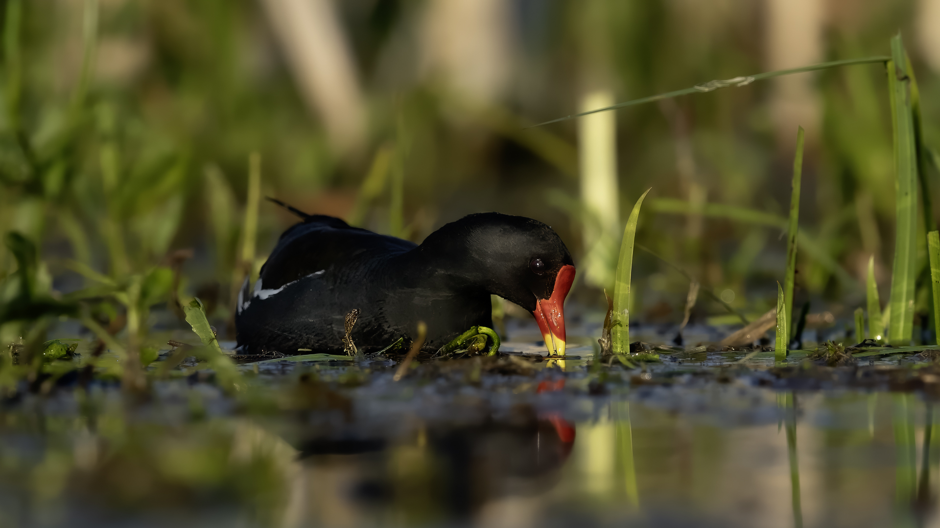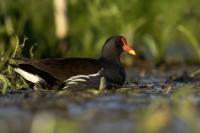 Wykonałem kilka lepszych niż dotąd zdjęć kokoszki w dość dziwnym miejscu w Grecji. Niedaleko od morza była sadzawka o brunatnym kolorze wody. Zapachu wody lepiej nie opisywać. I w tym ścieku pływało kilka żółwi, wiele małych rybek, a popołudniami pojawiała się kokosza rodzina. Dwa dorosłe osobniki i cztery młode. Odległość od ptaków - 4 do 7 metrów. Ptaki były przyzwyczajone do turystów i nie były płochliwe. Szkoda, że nie było warunków aby fotografować z innej perspektywy, z niższego poziomu byłyby ciekawsze ujęcia. Niemniej jednak powstały zdjęcia na tyle ciekawsze od dotychczasowych, że nastąpiła przebudowa galerii.