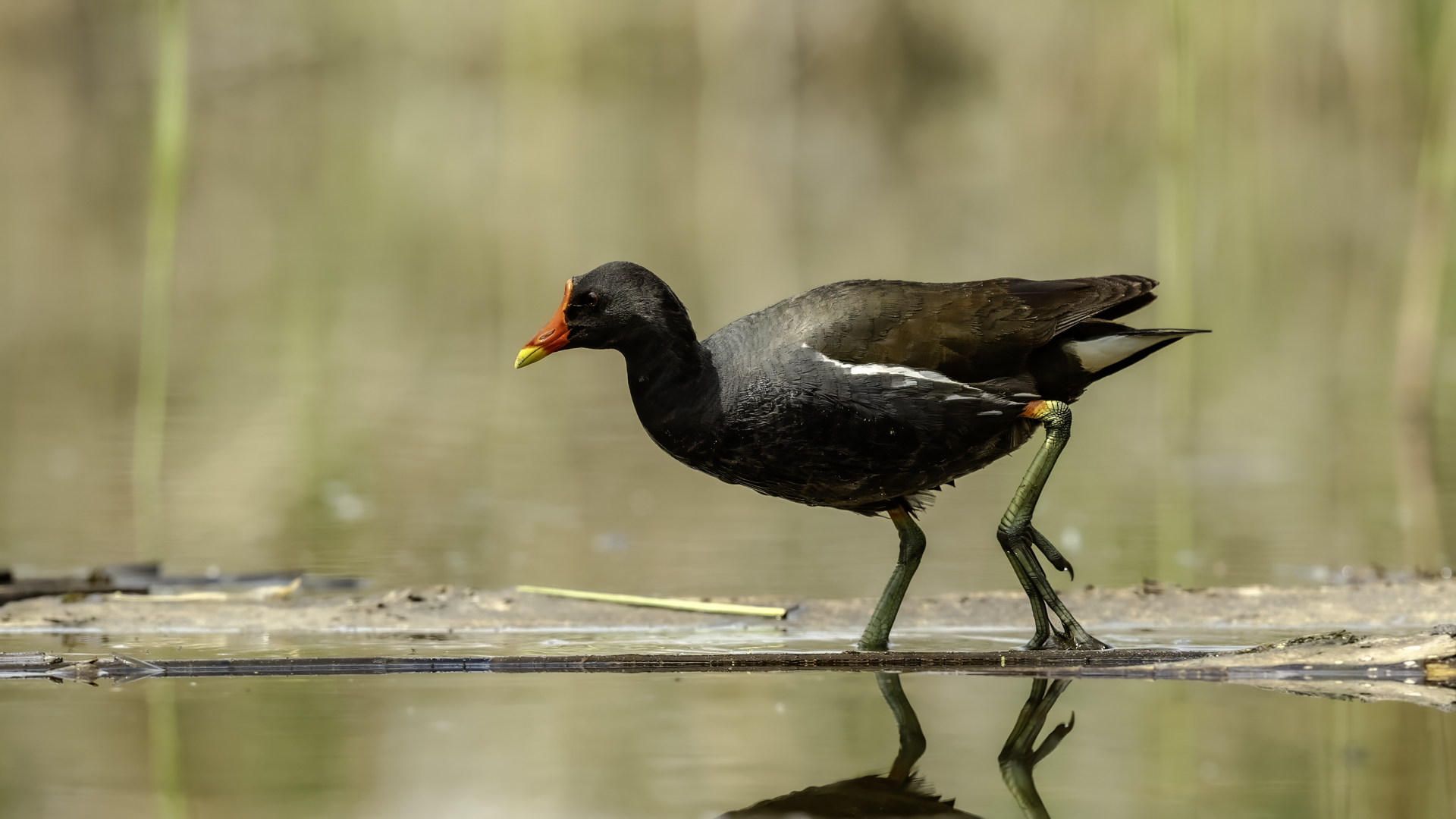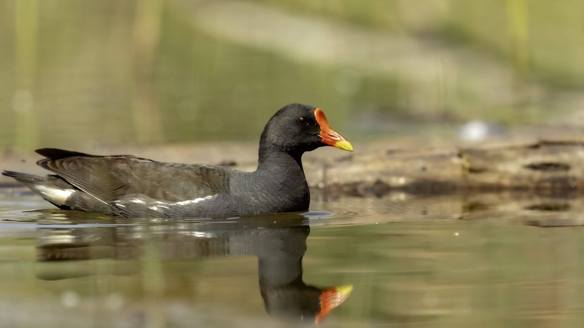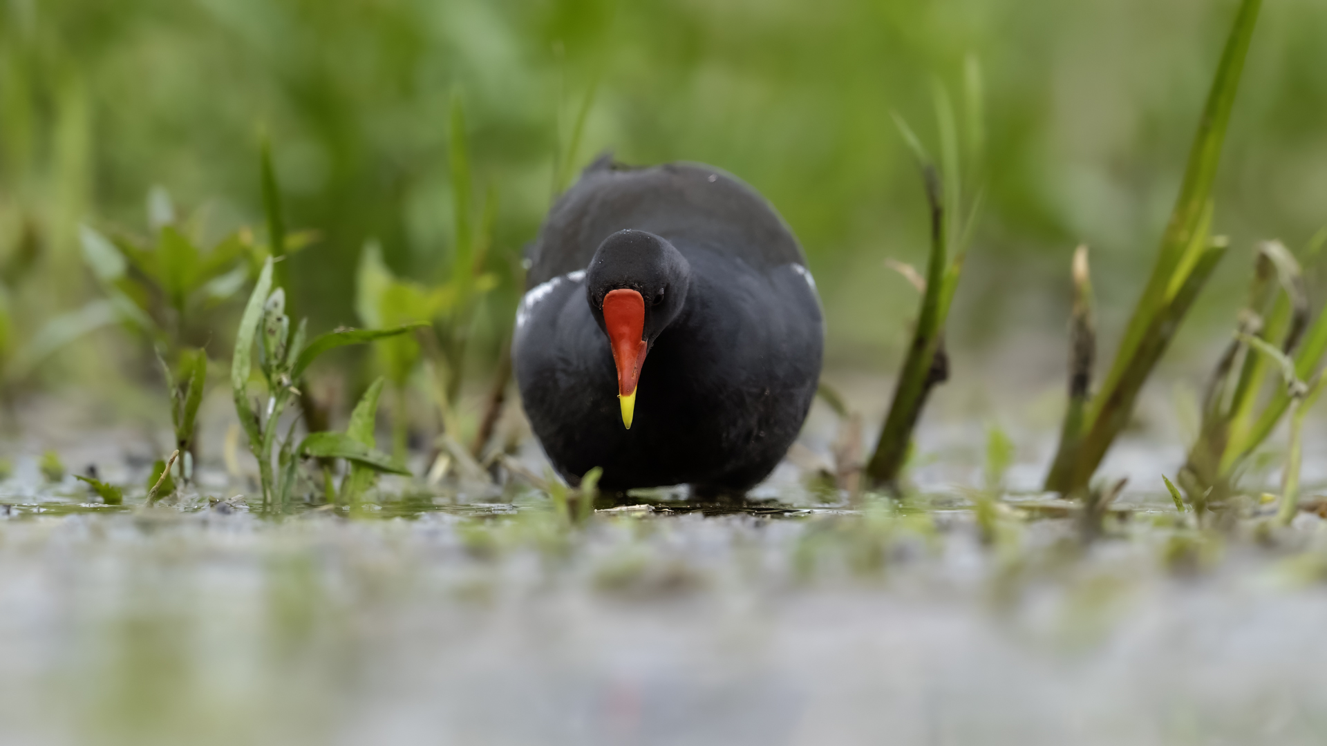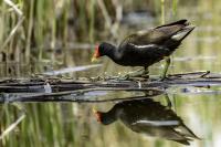 Wykonałem kilka lepszych niż dotąd zdjęć kokoszki w dość dziwnym miejscu w Grecji. Niedaleko od morza była sadzawka o brunatnym kolorze wody. Zapachu wody lepiej nie opisywać. I w tym ścieku pływało kilka żółwi, wiele małych rybek, a popołudniami pojawiała się kokosza rodzina. Dwa dorosłe osobniki i cztery młode. Odległość od ptaków - 4 do 7 metrów. Ptaki były przyzwyczajone do turystów i nie były płochliwe. Szkoda, że nie było warunków aby fotografować z innej perspektywy, z niższego poziomu byłyby ciekawsze ujęcia. Niemniej jednak powstały zdjęcia na tyle ciekawsze od dotychczasowych, że nastąpiła przebudowa galerii.