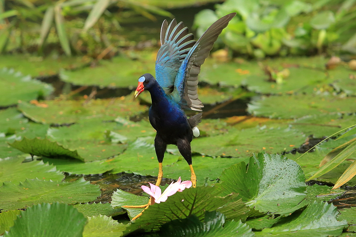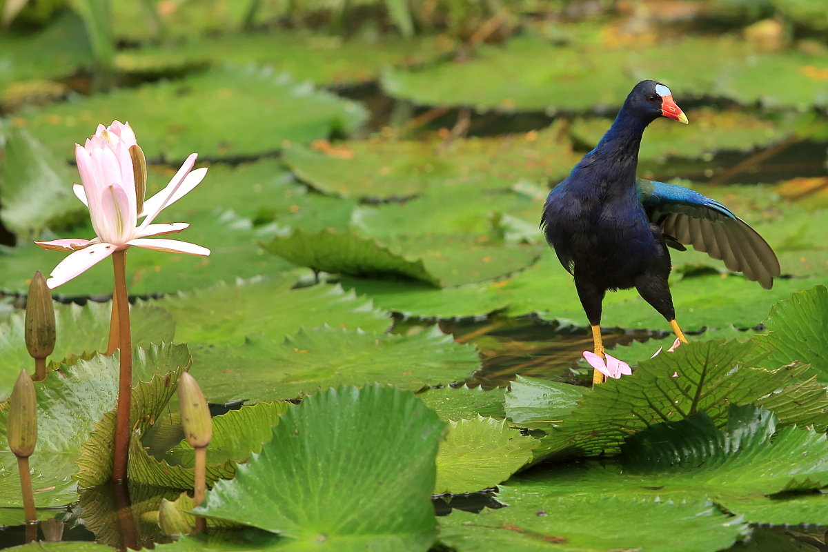1.Perkoz grubodzioby(T). 2.Sępnik różowogłowy(T). 3.Kubanik większy. 4.Kleszczojad gładkodzioby. 5.Kamusznik.6.Wojak obrożny.7.Czapla trójbarwna. 8.Czapla zielona.9.Rybołów(T). 10.Sułtanka amerykańska. 11.Szczudłak białobrewy(G). 12.Gołębiak białoskrzydły(G). 13.Gołębiak karoliński. 14.Lasówka nadwodna. 15.Ibis biały. 16.Płaskonos.17.Piaskowiec. 18.Błotowiec.19.Siewnica.