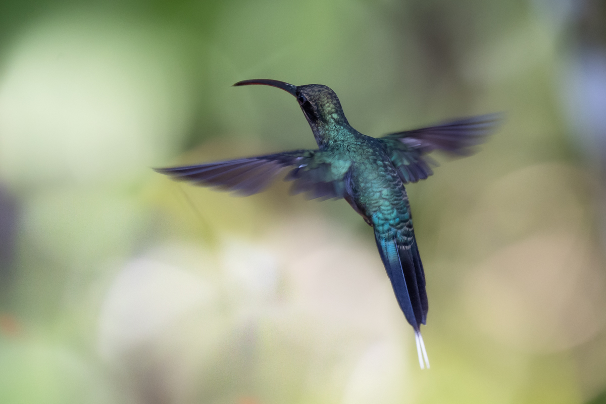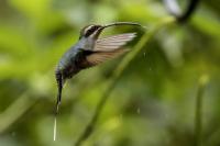 Mimo że udało się uwiecznić wiele gatunków kolibrów, będzie jeden tekst zamieszczony dla wszystkich 22 gatunków sfotografowanych na Kostaryce. Tym razem i czasu było więcej, i światło było lepsze, była więc okazja do wykonania wielu dynamicznych zdjęć. Ciekawe, że jeżdżąc po Kostaryce po przebyciu kilkudziesięciu kilometrów występowały zupełnie inne gatunki kolibrów. Kostaryka to niewielki kraj (kilkanaście procent powierzchni Polski) i na tak niewielkim obszarze występuje taka różnorodność gatunkowa kolibrów. Wszędzie, gdzie występowały kolibry, w przydrożnych barach, hotelach, zawieszane były poidełka, które przyciągały ich dziesiątki. To, że kolibry były na wyciągnięcie ręki wcale nie oznacza, że łatwo było wykonać prezentowane zdjęcia, zwłaszcza te dynamiczne. Przemieszczają się z taką szybkością, że nie ma chwili do zastanowienia, ani długiego czasu dla autofocusa. Na szczęście zachowują się w dość przewidywalny sposób, przynajmniej większość z nich. Po posileniu się przy poidle odlatują na 20-30 cm i zawisają w powietrzu na sekundę - dwie, aby sprawdzić co dzieje się w ich otoczeniu. Tak powstała większość prezentowanych zdjęć. Same kolibry często rywalizują między sobą i dochodzi do przepychanek pomiędzy nimi. Te powietrzne walki w locie są praktycznie nie do sfotografowania. Wszystko trwa ułamki sekund na przestrzeni kilkudziesięciu nieraz metrów, co przy ich filigranowej budowie czyni niemożliwym wykonanie satysfakcjonujących zdjęć. Kolibry zupełnie nie bały się ludzi, i zdarzało się, że podczas fotografowania siadały na moim ramieniu. Jak to bywa w fotografii przyrodniczej, różna była efektywność zdjęciowa spotkań z kolibrami. Powstały galerie, gdzie z powodu nadmiaru zdjęć trudno było podjąć  decyzję, które zamieścić w galerii, i powstały też takie, które mają bardzo skromną zawartość. Sama identyfikacja gatunków do prostych nie należy. W zależności od światła ten sam osobnik raz ma np. ciemnozielone ubarwienie, podczas gdy po chwili, przy zmianie warunków oświetleniowych, jest już pięknie wybarwionym ptakiem o połyskującym lśniącym upierzeniu. Łącznie udało się sfotografować 22 z liczby 50 gatunków, które występują na Kostaryce.
